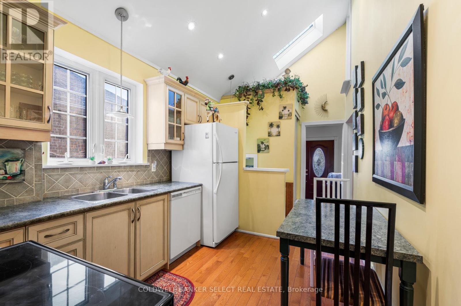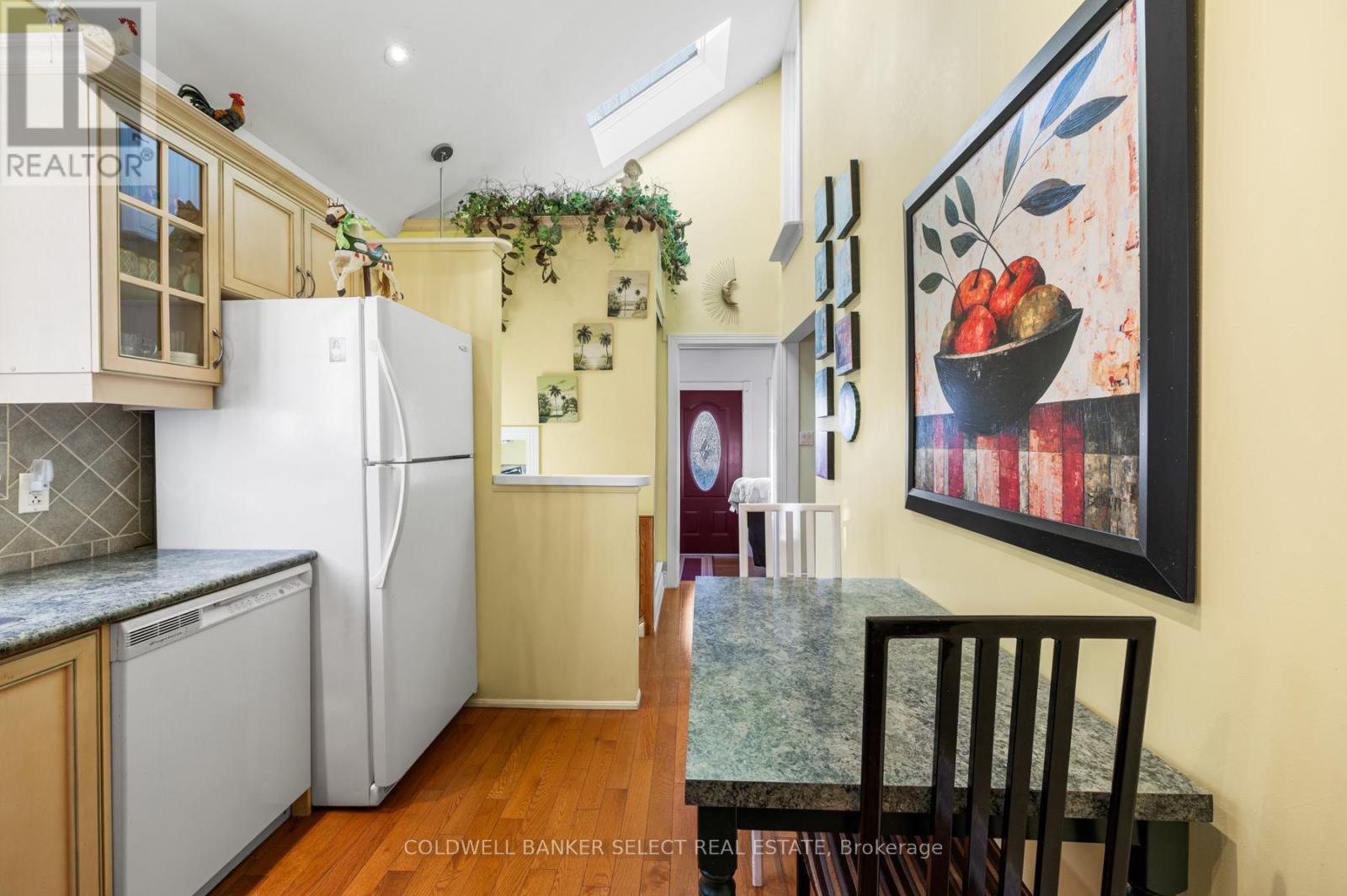 You won't find another home this unique in Etobicoke under $900K. Meticulously maintained and cherished by the same owners for around 35 years, this property is a rare opportunity for the most discerning buyers. The standout feature is the spectacular kitchen, showcasing an impressive 14-foot vaulted ceiling and skylight galore - a true architectural surprise you'd never expect from this charming bungalow. The front of the home feels like a stylish New York apartment, featuring exposed brick, warm wood beams above and a large west-facing bay window perfect for catching the summer sunsets near the fireplace. At the rear, the atmosphere shifts to a cottage-like retreat. You'll enjoy lush backyard views (with eastern early morning sunlight) and direct access outdoors, ideal for summer BBQs, late-night hangouts, or movie nights under the stars. This area can also function as a versatile office, an oversized closet for the adjacent bedroom, or a private media nook - offering a perfectly balanced separation of spaces throughout the home. The basement remains unfinished and is ready for your custom vision. Outside, enjoy a beautifully landscaped garden and the convenience of a detached 1-car garage. Let's not forget the location, ~550 m to Prince of Wales Outdoor Rink, ~ 1 kilometer away from Rotary Peace Park as well as Cliff Lumsdon Park which has lawn bowling, an outdoor pool, tennis courts, and a baseball diamond! Let's not forget Colonel Samuel Smith Park with countless trails, water views and great future memories with the family! Don't delay, have a look today! (41776880)