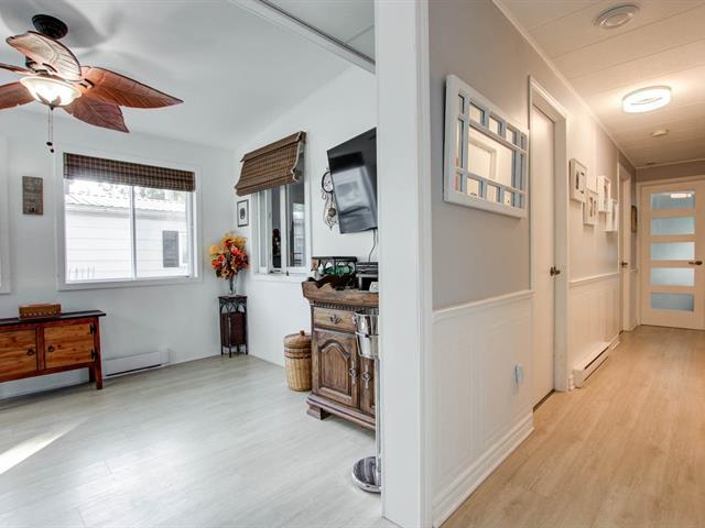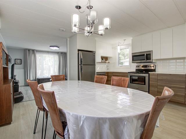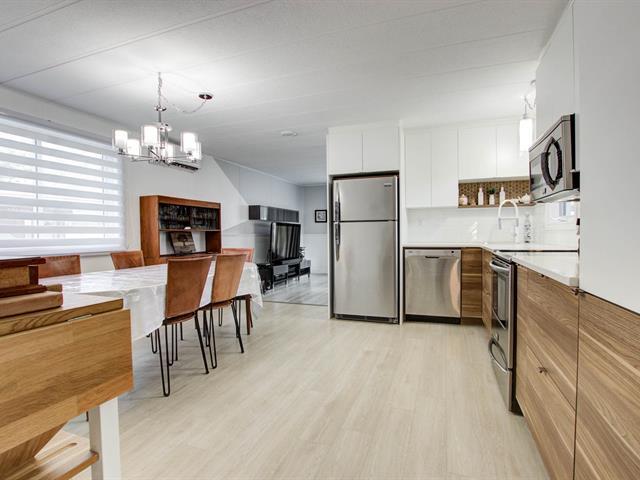 Rareté absolue! Grande modulaire clé en main sur la rue la plus recherchée, avec vaste annexe 10' x 37', totalisant près de 1 300 pi² et offrant 4 chambres, sans voisin arrière. Maison impeccable, entretenue avec soin. Superbe cuisine refaite en 2021 avec comptoirs de quartz. Terrain clôturé (285$/mois), stationnements, terrasses avant et arrière et trottoir jusqu'à la cour sont sur béton estampé (20000$). Luminosité exceptionnelle, beaucoup de rangement. À proximité des services, transport, gare, REM, piste cyclable, hôpital, centre commerciaux. Occupation idéale sept. 2026, flexible. (57039674)