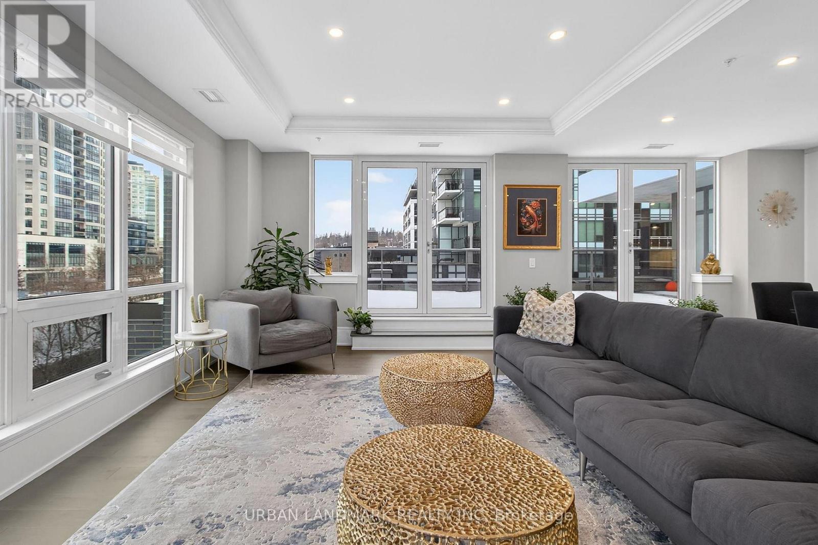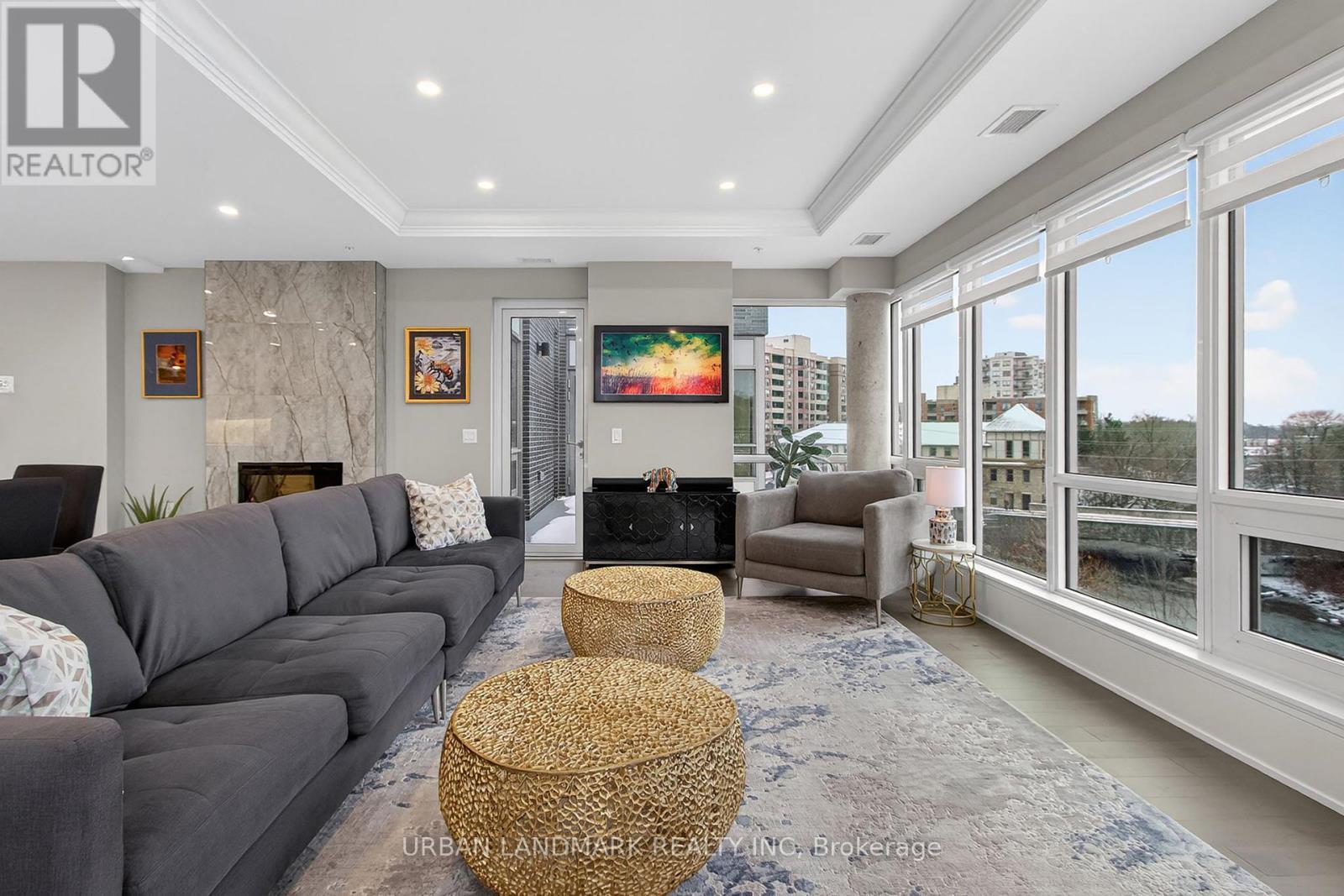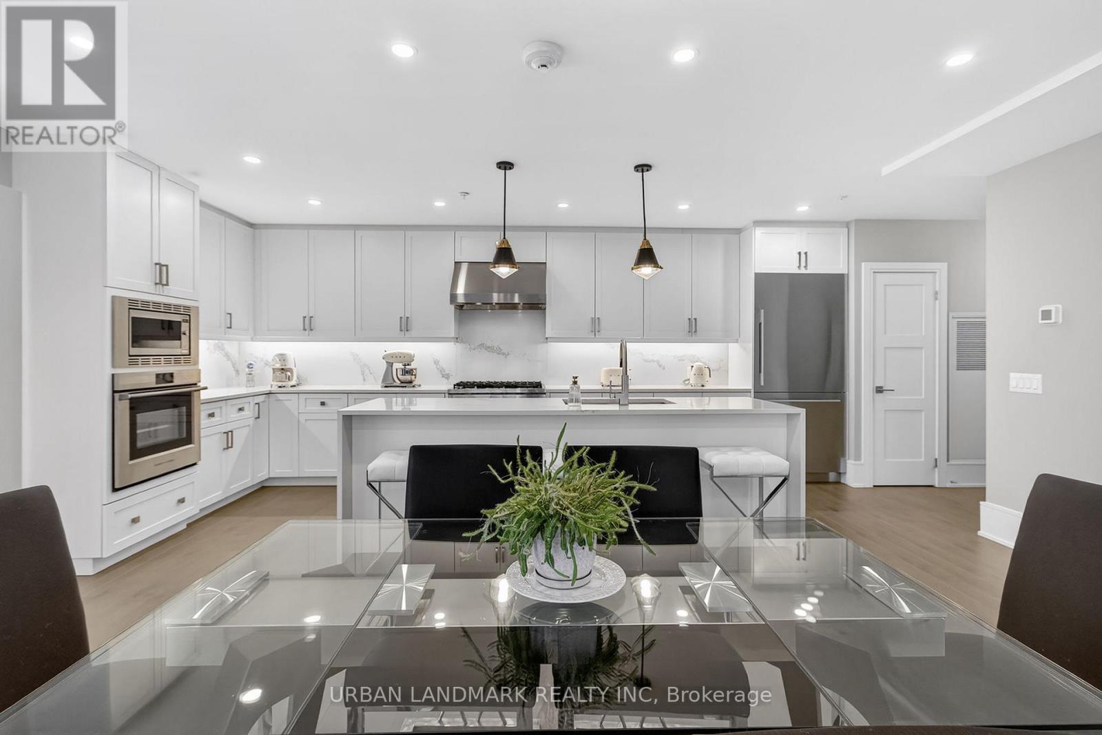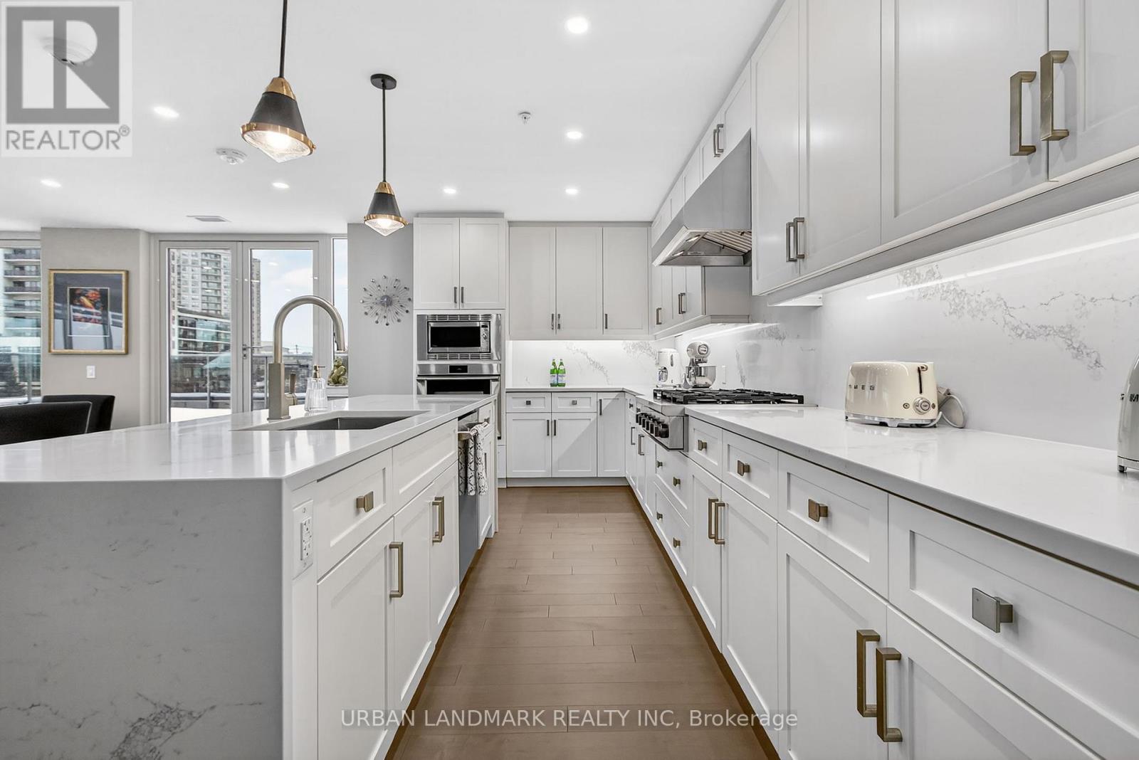 The most coveted River Residence in the entire development is now available for sale. This premier suite offers 3,138 square feet of refined living, including 1,090 square feet of terraces with 110 feet of uninterrupted river and city views. The expansive west-facing windows frame breathtaking sunsets every evening, turning the sky into a daily masterpiece of color and light. The entry sets the tone immediately. Coffered ceilings define an impressive foyer and introduce the level of craftsmanship carried throughout the home. The living room is expansive and bright, framed by oversized windows and anchored by a Dimplex Electric fireplace-an elevated space designed for both quiet evenings and sophisticated entertaining.The kitchen is a true gourmet workspace, equipped with Fisher & Paykel stainless steel appliances, a 6-burner gas rangetop, wall-mount oven, fridge, built in microwave, washer and dryer, quartz countertops, shaker cabinetry, and a waterfall island. Every detail supports both function and style.The primary ensuite delivers a spa-grade experience: a deep soaker tub, double sinks, premium fixtures, and a mosaic shower floor. Additional upgrades include a Samsung stacked washer/dryer, Panasonic microwave, recessed lighting in principal rooms, brushed-nickel hardware, and 5-inch-wide maple grey flooring.Two expansive terraces extend your living space outdoors, providing a private front-row view of the river-ideal for morning coffee, evening cocktails, or larger-scale entertaining.Practical advantages include three parking spaces, two heated storage lockers, and full access to Metalworks' exclusive amenities, including the private speakeasy. Location advantages: 10-minute walk or 3-minute drive to the GO Station 15 minutes to Highway 401 5-minute drive to the University of Guelph 1 hour to Pearson Airport. (41777163)