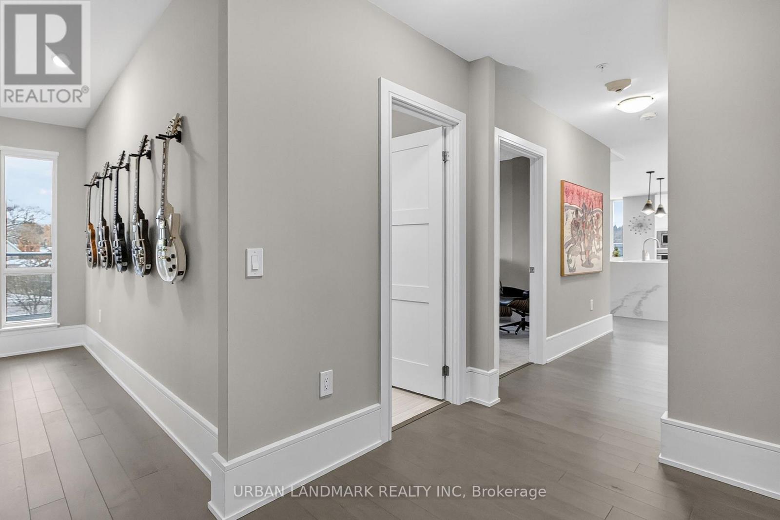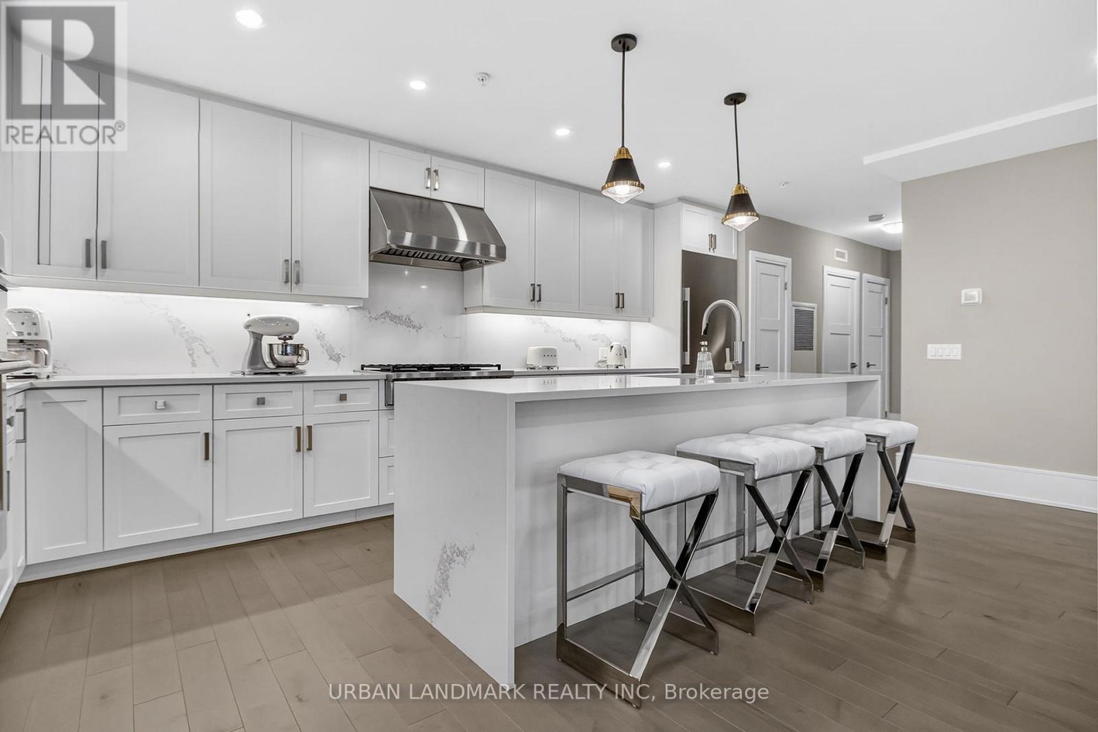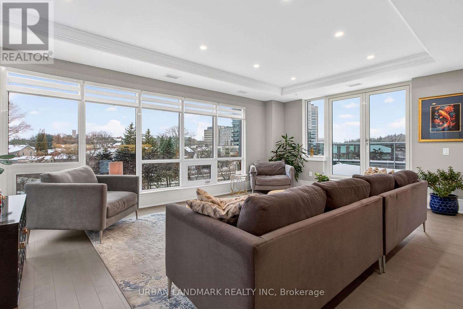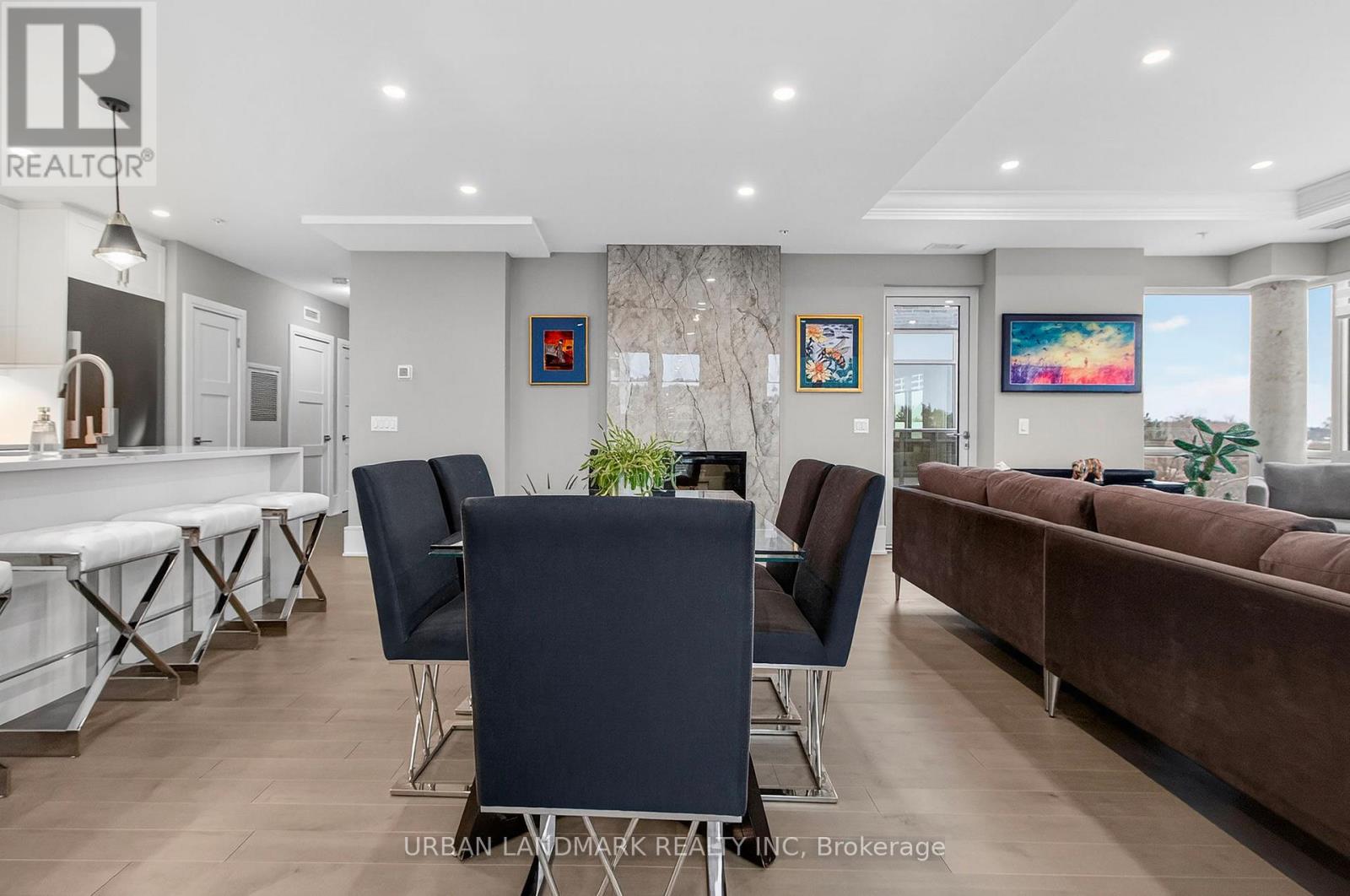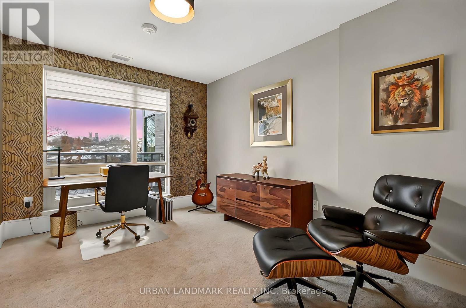 The most coveted River Residence in the entire development is now available for sale. This premier suite offers 3,138 square feet of refined living, including 1,090 square feet of terraces with 110 feet of uninterrupted river and city views. The expansive west-facing windows frame breathtaking sunsets every evening, turning the sky into a daily masterpiece of color and light. The entry sets the tone immediately. Coffered ceilings define an impressive foyer and introduce the level of craftsmanship carried throughout the home. The living room is expansive and bright, framed by oversized windows and anchored by a Dimplex Electric fireplace-an elevated space designed for both quiet evenings and sophisticated entertaining.The kitchen is a true gourmet workspace, equipped with Fisher & Paykel stainless steel appliances, a 6-burner gas rangetop, wall-mount oven, fridge, built in microwave, washer and dryer, quartz countertops, shaker cabinetry, and a waterfall island. Every detail supports both function and style.The primary ensuite delivers a spa-grade experience: a deep soaker tub, double sinks, premium fixtures, and a mosaic shower floor. Additional upgrades include a Samsung stacked washer/dryer, Panasonic microwave, recessed lighting in principal rooms, brushed-nickel hardware, and 5-inch-wide maple grey flooring.Two expansive terraces extend your living space outdoors, providing a private front-row view of the river-ideal for morning coffee, evening cocktails, or larger-scale entertaining.Practical advantages include three parking spaces, two heated storage lockers, and full access to Metalworks' exclusive amenities, including the private speakeasy. Location advantages: 10-minute walk or 3-minute drive to the GO Station 15 minutes to Highway 401 5-minute drive to the University of Guelph 1 hour to Pearson Airport. (41777163)