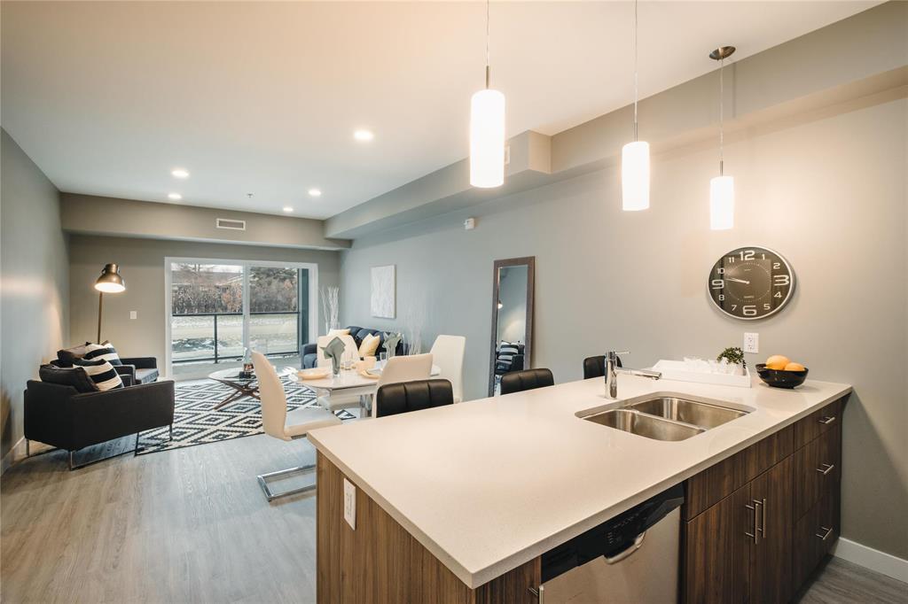 3H//Winnipeg/**TO-BE-BUILT. Completion projected for Fall 2027. Visit our Phase 3 Show Suites for more info: Thursdays 4-7pm, Sundays 1-4pm. Closed Sundays of long weekends. Photos are of a previous show suite with the same layout** Welcome to Bloom & Timber! Located on the 2nd floor facing west, this open concept 1 bedroom floor plan is complimented by 9' ceilings & large patio doors & windows that fill the space with natural light. Quality finishes and features include quartz counter tops, ceramic tile backsplash, kitchen peninsula with space for bar stools, & SS appliances included. LVP flooring is carried throughout the unit, which has a good sized primary bedroom, 4pc bath, laundry room with washer & dryer included, & a balcony. Price includes GST, 1 outdoor parking stall & 1 storage locker. Experience a lifestyle of convenience with the building's amenities - Gym, Business Centre, Common Room, Owner's Lounge, 2 Flex Rooms, 2 Guest Suites. Close to shopping, medical facilities & Lake Winnipeg! (231699595)