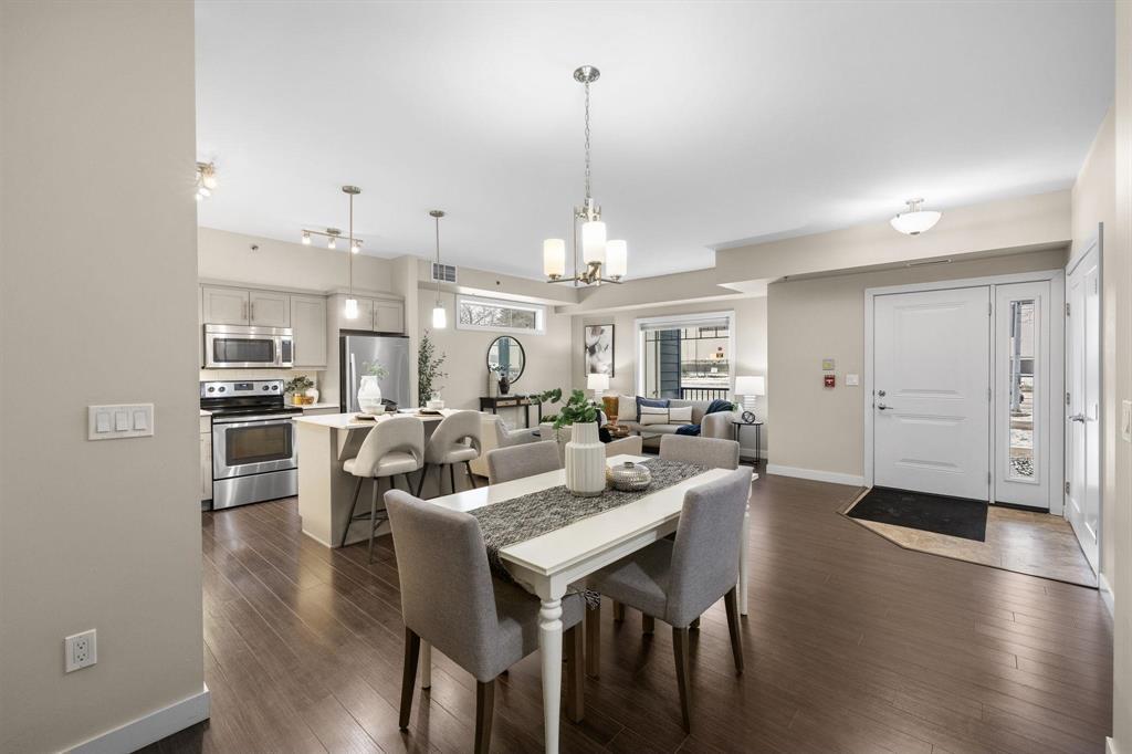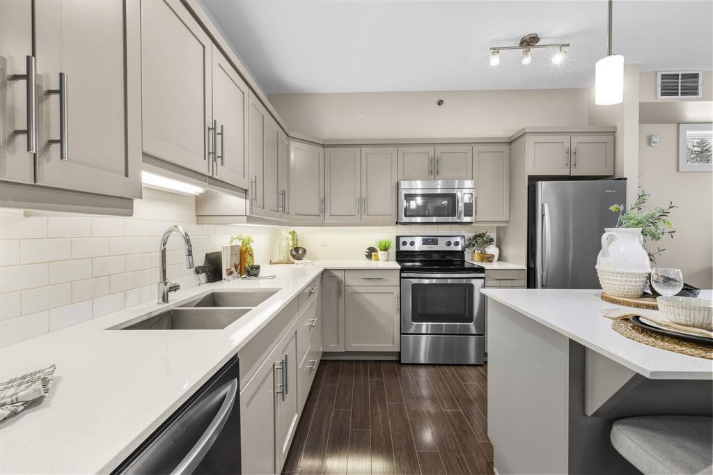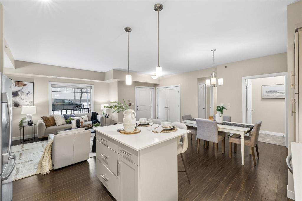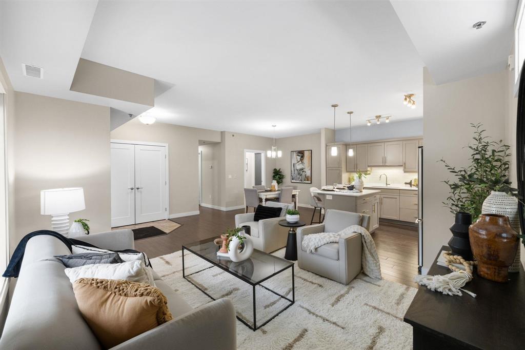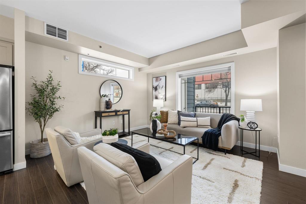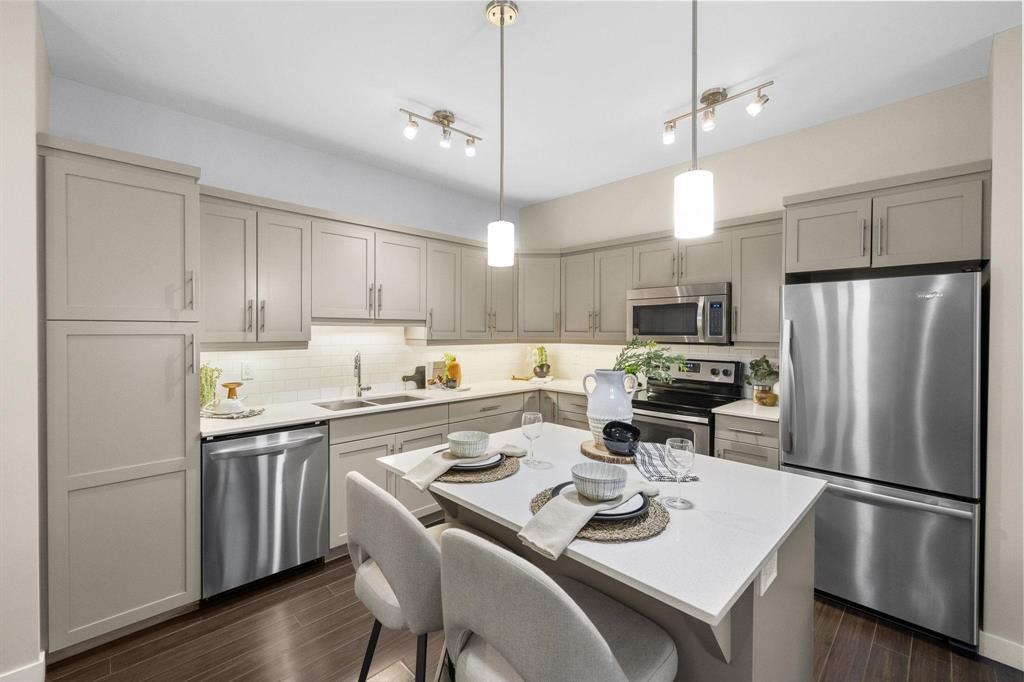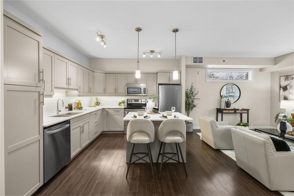 3L//Winnipeg/SS Mon Dec 8 OPEN HOUSE SUN DEC 14, 1-3pm Offers pre'd Dec 15Welcome to The Station! Main floor unit offers an open concept floor plan with a bright living room, the dining room can comfortably sit 4-6 and a fabulous kitchen with plenty of cabinets, island, tile backsplash, quartz counters with double sink and stainless steel appliances. This unit offers 2 beds and 2 full baths inclusive of a large primary bedroom, WICC and beautiful ensuite with walk in shower, large vanity, Kohler fixtures and quartz counters. The remaining bedroom is great in size with a double closet and large window. Main floor bath comes with low maintenance tub surround, large vanity with quartz and an extra wide, wheelchair accessible entrance. You'll enjoy a dedicated space and convenience of in-suite laundry with a newer washer and dryer and a wide entrance for easy access. This unit offers the convenience and privacy of your own entrance, a cozy patio area and storage. Underground parking stall is located next to the back door entrance. You'll have access to a great size party room with a full size kitchen and a patio area. There's plenty of visitor parking and a quiet park area tucked between buildings. Measurements/- (231699681)