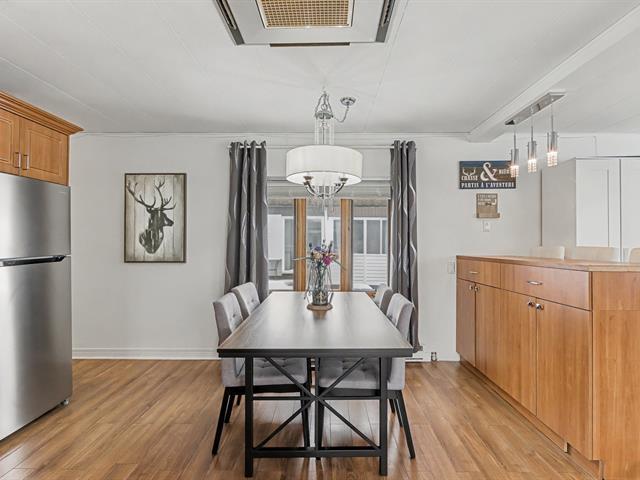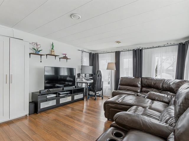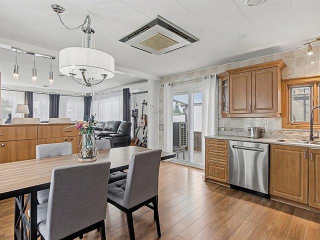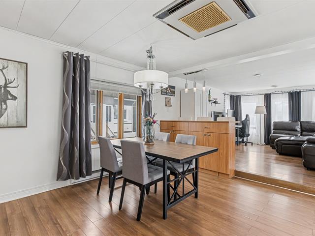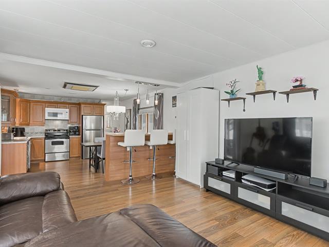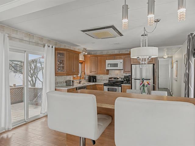 Maison mobile 14' x 64', 2 chambres de bonne dimensions, bien entretenue avec nombreuses rénovations : salle de bain refaite, nouveaux planchers, aucune fenêtre d'origine. Vide sanitaire giclé avec 5'' d'uréthane, travaux majeurs à l'entretoit pour une isolation et une ventilation optimales. Laveuse-sécheuse au passage. Murs en gypse partiels, sorties extérieures ajoutées (hotte, ventilateur SDB, sécheuse). Belle grande cour aménagée clôturée, deux stationnements tandem, la rue la plus en demande car du côté sans voisin arrière. Terrain loué 243$/mois. Près des autoroutes, transports en commun, REM, hôpitaux, centres commerciaux etc. À voir! (49743491)