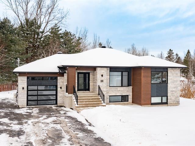 Magnifique propriété contemporaine sise sur un très beau terrain de plus de 44000 pi2 dans le secteur convoité de Bellefeuille et près de tout les services. SUPERBE bachelor 3 et demi au sous-sol procurant un revenu d'appoint de 1204$/mois. Finition soignée et décoration nouvelle tendance partout dans la propriété. Armoires thermoplastique à la cuisine, thermopompe murale performante, douche 36x60 multijets etc. Superbe garage avec porte vitrée, mezzanine et plancher en époxy. Terrain complètement aménagé avec asphaltage complet en façade et espace vert avec dalle de béton et terrasse à l'arrière. Possibilité garage détaché! IMPECCABLE! (53199761)