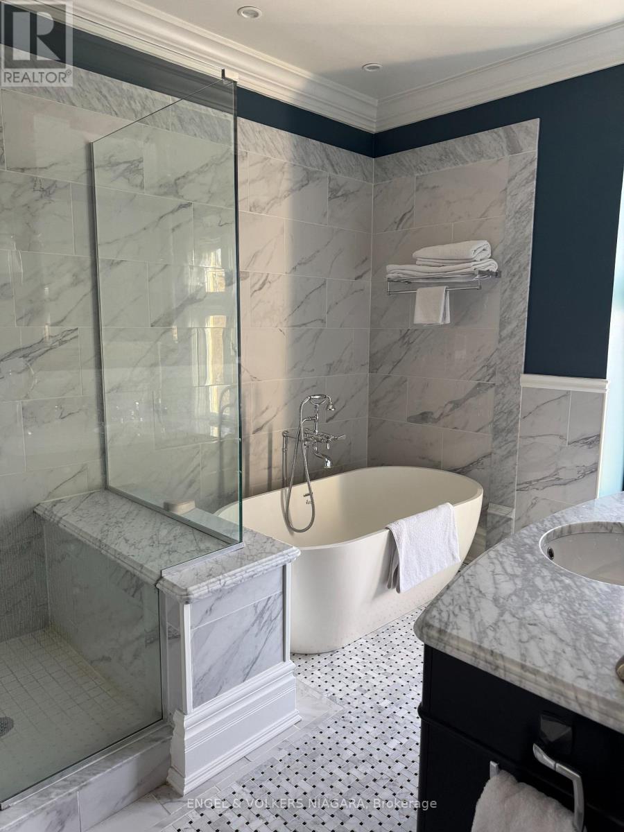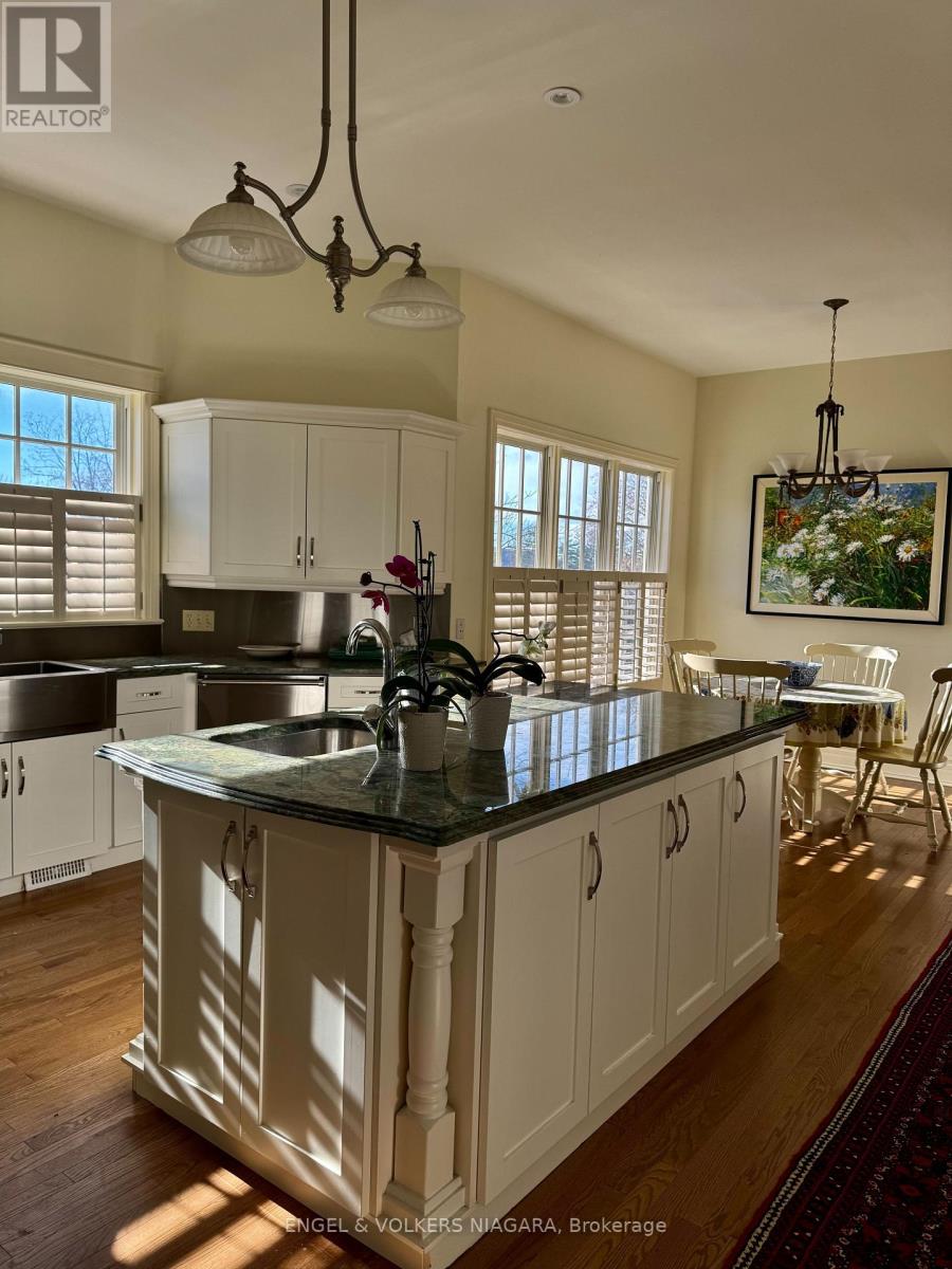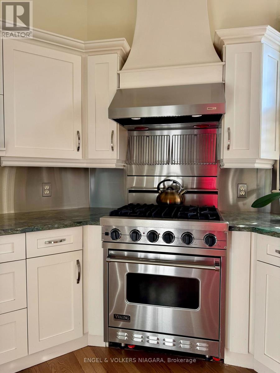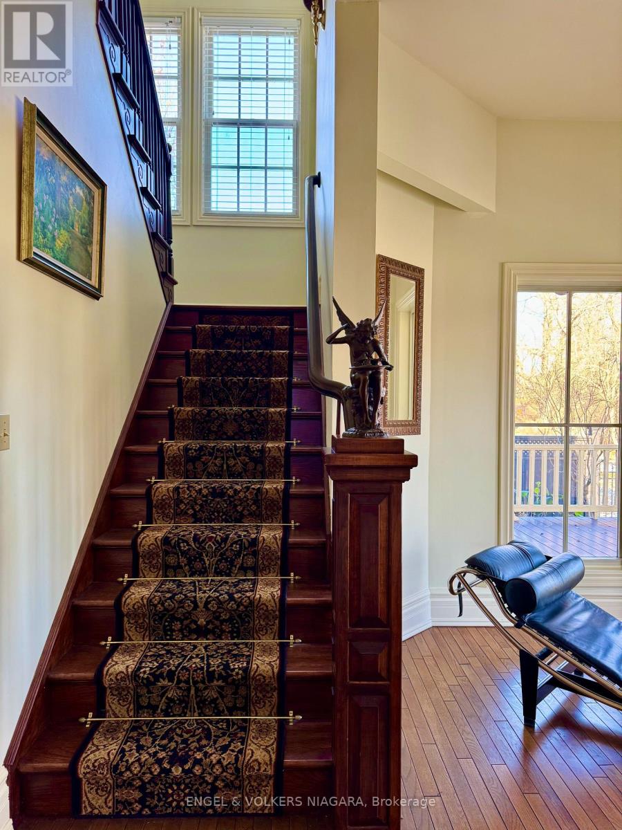 Located on the beautiful Niagara River Parkway, this Victorian-style home offers quality finishes and thoughtful details throughout. Character mouldings, 9-foot ceilings, three gas fireplaces, and double French doors with transom windows create a warm and inviting atmosphere. The main floor features spacious principal rooms ideal for everyday living and entertaining, along with a well-designed kitchen and breakfast nook. The primary suite includes a spa-like bathroom, walk-in closet, gas fireplace, and French doors leading to a deck with views of the water fountain. Two additional bedrooms-one with a balcony and one with a walk-in closet four-piece bath, and a comfortable loft complete the second floor. The partially finished lower level provides a rec room with a gas fireplace, an office, a laundry room, and plenty of storage. Outside, a front porch offers views of the landscaped gardens, and the property includes a detached triple garage with an upper studio loft. The yard is fully fenced for added privacy.Just a short drive to downtown Niagara-on-the-Lake and close to the QEW and U.S. border, this home offers both charm and convenience. (41780244)