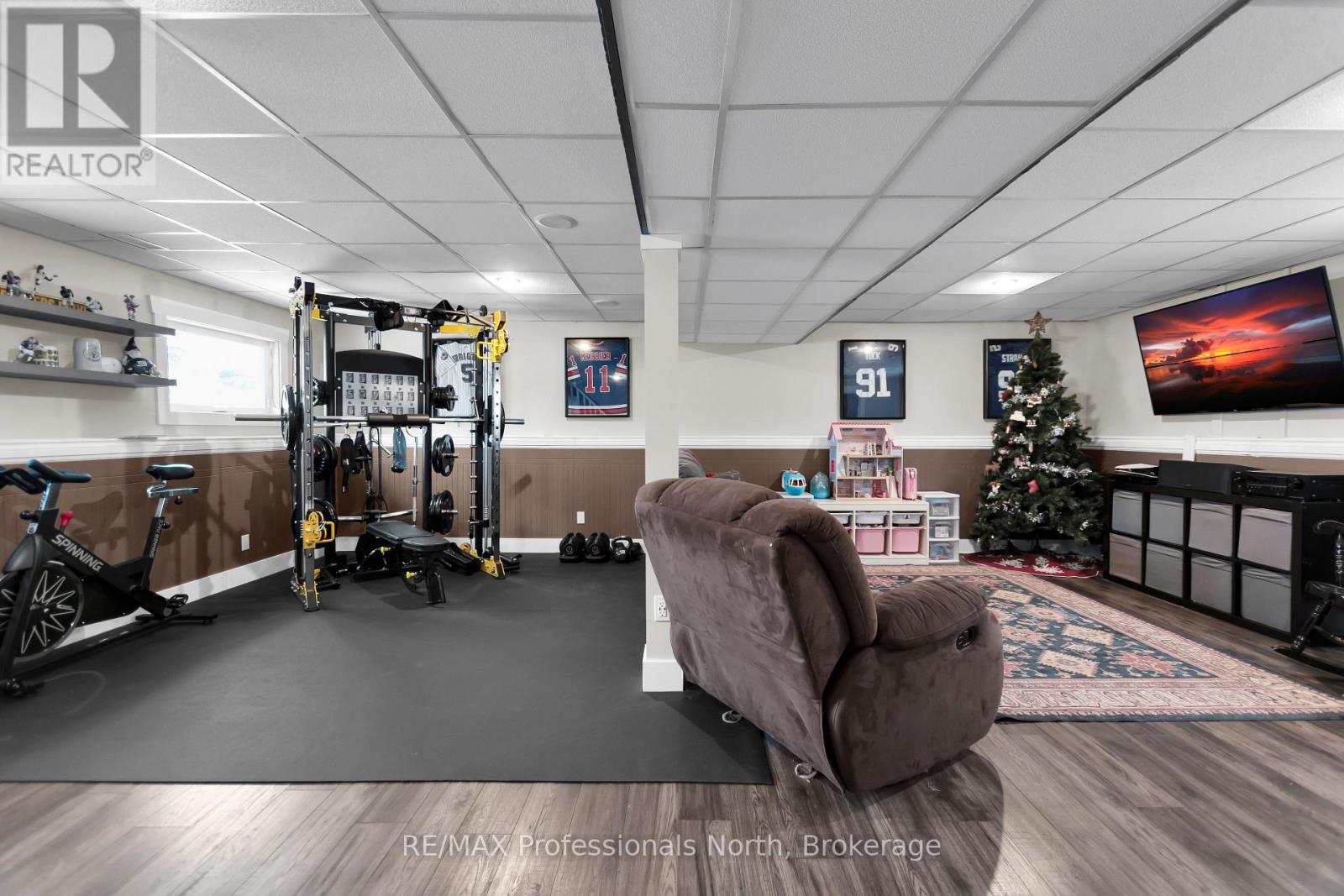 Welcome to this beautifully updated 4-bedroom, 2-bath raised bungalow nestled in one of Huntsville's most sought-after, family-friendly neighbourhoods. Set on municipal services and framed by mature trees, this home blends modern upgrades with everyday comfort and convenience.The bright and inviting main level features newer flooring and a tastefully renovated kitchen offering ample cabinetry and generous prep space-perfect for cooking, hosting, and gathering. The cozy living room provides a welcoming place to unwind, complete with a charming fireplace and custom built-in shelving for added storage and style. Three comfortable bedrooms and a full 4-piece bath complete the main floor. The fully finished lower level extends your living space with an open-concept family room, a handy half bath, a spacious 4th bedroom, and a dedicated laundry/storage room - an ideal setup for guests, teens, or a home office.Step outside to a private, fully fenced backyard featuring a deck and a durable metal gazebo, creating an inviting outdoor retreat for dining, entertaining, or simply relaxing in the fresh Muskoka air. Conveniently located near downtown Huntsville, local parks, and schools, this home offers the perfect blend of tranquility and accessibility. A wonderful opportunity to settle into a desirable neighbourhood-just move in and enjoy! (41781274)