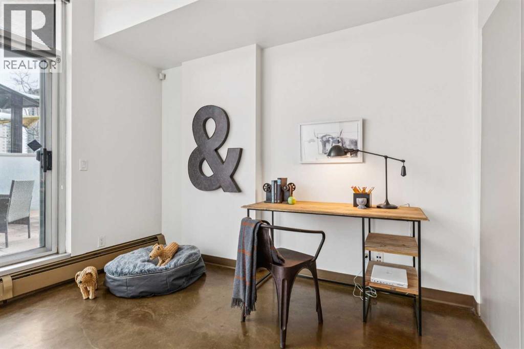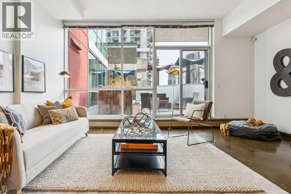 Welcome to one of the most unique and character-rich condos in the Colours building—an Airbnb-friendly, 2-bedroom, 2-bathroom terrace-level home with one of the largest private outdoor spaces the building has to offer. This is urban living with personality, flexibility, and serious lifestyle appeal in the heart of Calgary’s vibrant 1st Street District.Loft-inspired and effortlessly cool, the open-concept interior is grounded by striking polished concrete floors and expansive windows that flood the space with natural light. The modern kitchen is both stylish and functional, featuring stainless steel appliances, granite countertops, and seamless flow into the main living area—perfect for entertaining or everyday living.The true showstopper is the oversized terrace, which functions as your own private outdoor living and dining room. Complete with a beautiful raised planter, this space is ideal for hosting friends, gardening, relaxing in the sun, or unwinding after a long day—an exceptional feature rarely found in condo living.The bright primary bedroom offers sliding glass doors, built-in closet organizers, and a private ensuite with a deep soaker tub. The second bedroom is cleverly designed behind sliding glass doors, making it ideal as a guest room, office, or flex space. You’ll also appreciate the oversized in-suite storage room with ensuite laundry—providing exceptional functionality rarely seen in comparable units.A titled parking stall is included, and with short-term rental potential, this property offers outstanding flexibility for both end-users and investors alike.Just steps from cafés, restaurants, nightlife, and the downtown core, this home isn’t just a place to live—it’s a lifestyle. Whether you’re looking to settle in or generate income, this is your opportunity to own a slice of one of Calgary’s most exciting urban communities. (31445659)