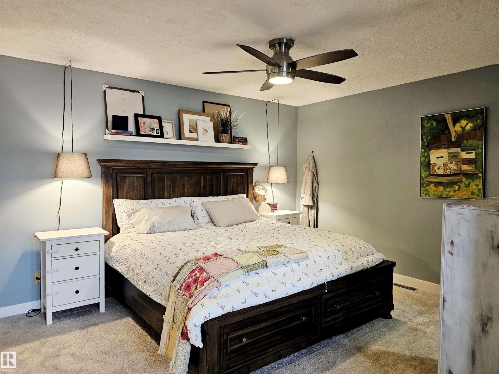 Gorgeously updated and quietly enchanting, this 4 bed/3 bath home rests on a park-like 7,324+ sq ft west-facing lot at the heart of a serene Greenview cul-de-sac. Across 2,650+ sq ft of beautifully refreshed living space, warm longboard flooring (2022) and soft neutral tones create an inviting sense of calm. Sunlight pours through the front living room into the formal dining area and kitchen (2022), where upgraded appliances and quartz counters frame a sun-swept breakfast nook. From here, step into the glowy sunroom just off a newer patio (2024), w/ the kind of private yard that makes evenings linger. Down the hall, a 4 pc bath and generous 2nd and 3rd bedrooms await. Upstairs, the oversized primary retreat feels almost storybook with its California Closet walk-in, private study, and luxurious 5 pc ensuite. A finished basement adds a timeless brick wood-burning fireplace, great room, 4th bedroom, gym, & 3 pc bath. Extras incl. tankless hot water (2024), NEW furnace & heat pump (2025), and EV-ready garage. (33640205)