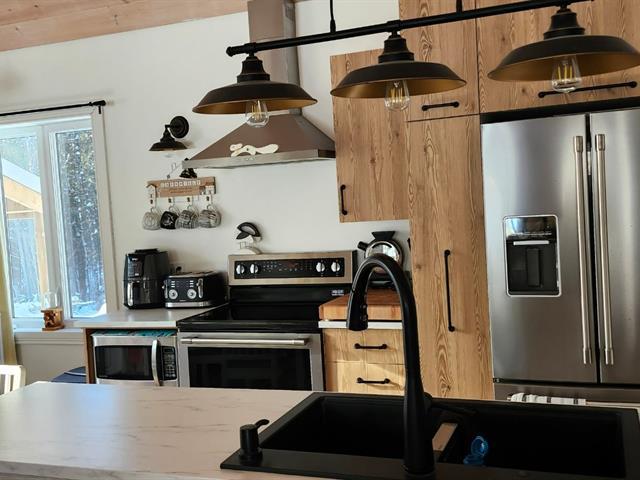 Très jolie propriété, agréable, éclairée, offrant un bel espace de vie en communion avec la nature. Secteur humide à l'arrière limitant la construction. Grand solarium 12 x 24 constituant une pièce d'été, idéale pour cuisinier aimant recevoir. Grande salle de bain avec bain et douche. Mezzanine utilisée comme bureau mais qui pourrait aussi devenir une chambre. Construction 2020. Grand garage 20 x 20 avec deux extensions pour remisage (7 X 14 et 7 X 16). Toit de tôle. Secteur calme et homogène. Bon esprit de voisinage et d'entraide. (40208037)