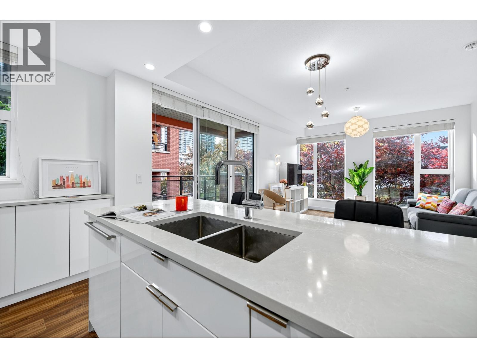 Welcome to Park & Metro by Marcon! This bright and spacious southwest-facing corner home offers 980 sq.ft. of modern comfort, with 2 bedrooms, 2 bathrooms, and a functional workspace. With high ceilings and a smart layout, the residence feels open and inviting. Expansive windows maximize natural light while showcasing quiet Yukon Street and the Marine Gateway skyline. The gourmet kitchen features premium cabinetry, a large pantry, Bosch integrated appliances, quartz countertops, wide-plank flooring, and A/C. Comes with parking (EV charger) and a large storage locker. Steps to Winona Park, T&T, restaurants, Cineplex, banks, Canada Line and bus. Easy access to Downtown, YVR, Oakridge and Richmond. School catchment: Sexsmith Elementary & Churchill Secondary. Open House: SAT. Dec 13 2-5PM (32245975)