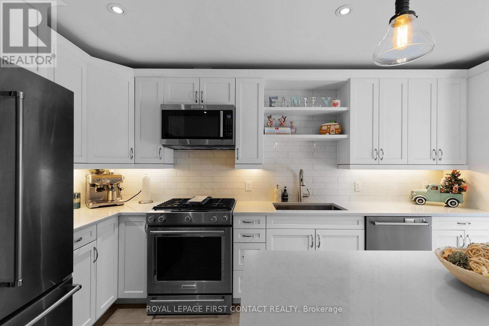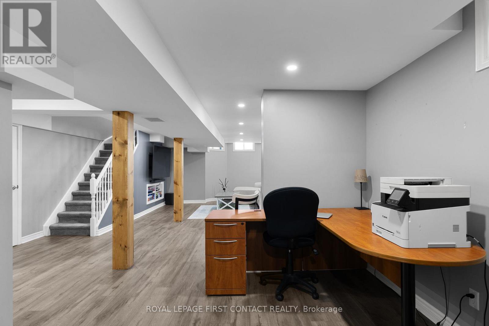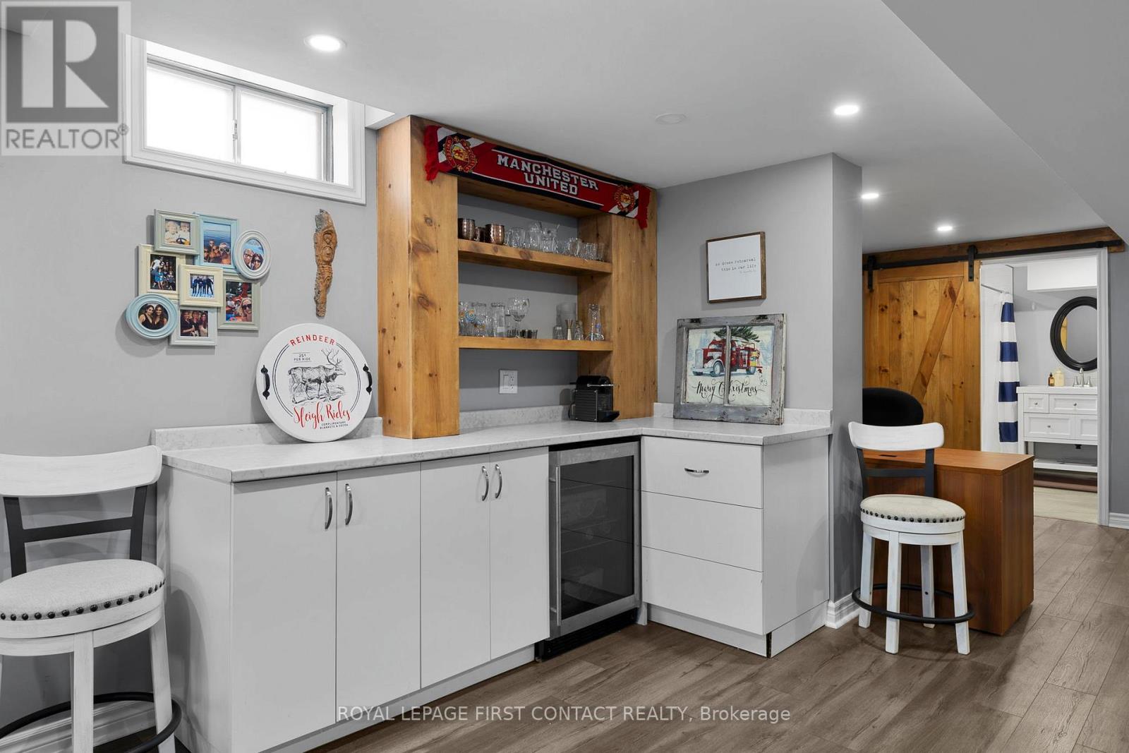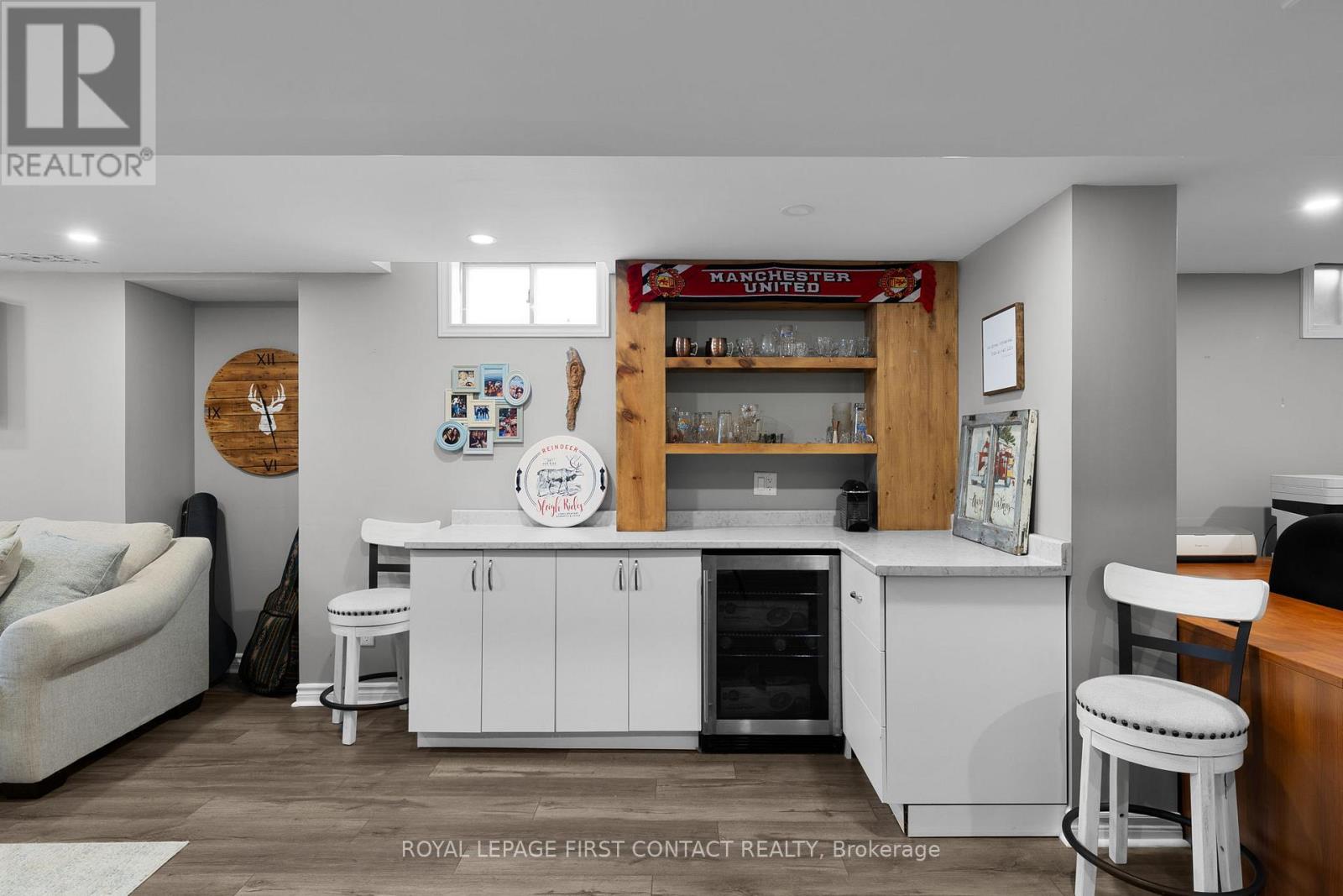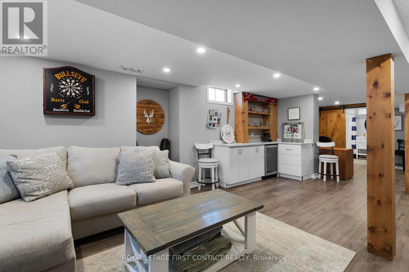 Experience the ultimate lifestyle in this family-friendly neighbourhood in Alcona. The streetscape offers an idyllic setting for a classic Christmas movie-timeless and peaceful, with sidewalks that invite a quiet, snowy walk & a palpable sense of community spirit. The kind of place where you expect carolers to appear at any moment, where children build snow forts & congregate for street hockey. The area offers convenient access to services & recreational opportunities including dining, shopping, schools, a public beach, boat launch, & library. Additional recreation & entertainment is available at nearby Friday Harbour Resort & the Innisfil Rec. Centre. It's a short drive to Barrie's South end for access to the South GO Station, big box stores, & even more shopping & dining options. The captivating home offers a classic layout suitable to the style of the neighbourhood, with separate living room, dining room & family room with gas fireplace on the main floor, as well as a mud-room with side entrance & garage access, & a laundry-room with access to the back yard. The stunning kitchen features a large island, quartz counters & high-end stainless steel appliances. A sliding door provides lots of light & access to the rear yard. Upstairs, you'll find three bedrooms plus an office or den. The generously sized primary bedroom includes a walk-in closet & a luxurious 3-piece ensuite. The partially finished basement adds a recreation room & bar area with bar fridge, an exercise room, & an additional, modern, 3-piece bath. The rear yard is fully fenced with lilac trees, a large deck & pergola, perfect for children, pets & entertaining. An oversized garage adds to the convenience of the home offering additional storage and lots of room for "toys". Don't miss the apple tree in the front yard! The driveway has been widened, providing room for friends and family to park comfortably while they visit. Don't wait to call this address home. One owner is a licensed Realtor (41785268)