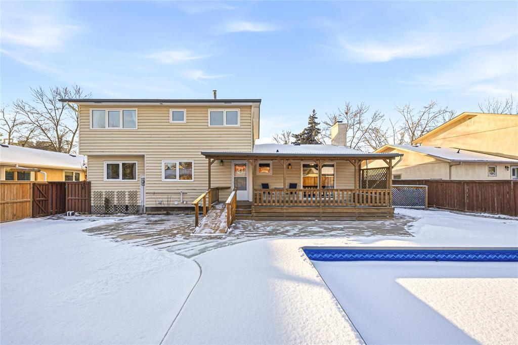1F//Winnipeg/Offers December 16th 1:00 pm. Open house Sat Dec 13 & Sun Dec 14 1:00-3:00. Original owners. Bring your vision to this spacious 2033 sq ft 4 bedroom home in a very desirable neighbourhood just steps from Smithdale Park. L-shaped living room/dining room. Oak eat-in kitchen. Main floor family room with patio doors to a covered deck. Very generous room sizes. High efficient furnace 2024. Electrical upgrade 2025. Hook-ups for main floor laundry. Fenced backyard with a beautiful in-ground pool. (New liner, skimmer, lines, diving board and cement around pool 2025) Lots of space for children to play and pets to run. This well loved home is ready for its new chapter. Don t miss out! (231702536)