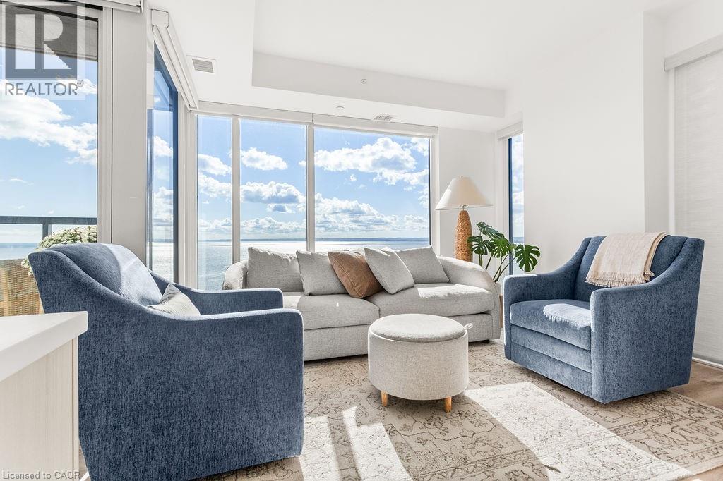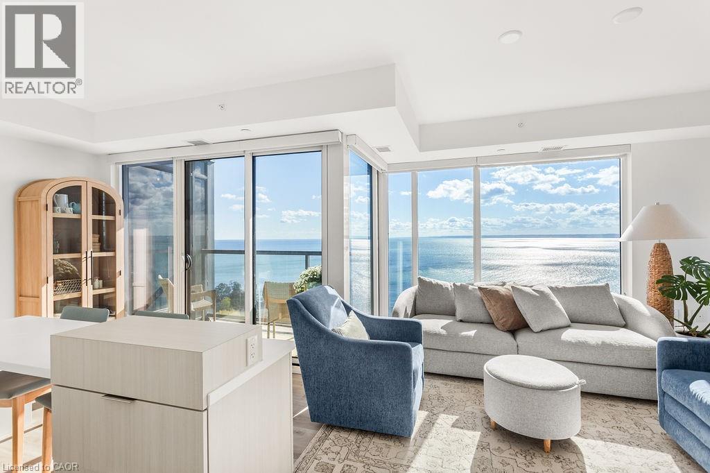 Experience luxury lakeside living at its finest in this stunning 2-bedroom, 2-bath suite at the iconic Nautique Lakefront Residences in the heart of downtown Burlington. Floor-to-ceiling windows fill the space with natural light and frame spectacular panoramic views of the lake and vibrant cityscape. The open-concept layout features a designer kitchen with integrated appliances, quartz countertops, and modern cabinetry that seamlessly blend style and function. The spacious island doubles as a dining space, perfect for entertaining or casual meals. The primary bedroom offers ample closet space with custom built-ins and a spa-inspired ensuite, while the second bedroom is ideal for guests or a home office. Enjoy the convenience of in-suite laundry and automatic custom blinds. Step outside to your private balcony and take in the ever-changing waterfront views. Enjoy world-class amenities including a state-of-the-art fitness centre, resort-style outdoor pool with cabanas, hot tub, yoga studio, fire pits, barbecue terrace, and elegant resident lounge/party room with dining area and kitchen. Concierge service, executive meeting rooms, bike storage, secure underground parking, and a private storage locker complete this exclusive lifestyle package. Located steps to the lake, restaurants, boutiques, and the waterfront trail, this is downtown Burlington living at its most sophisticated. (69967692)