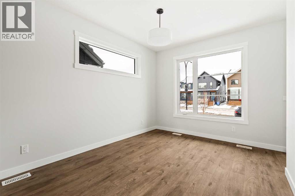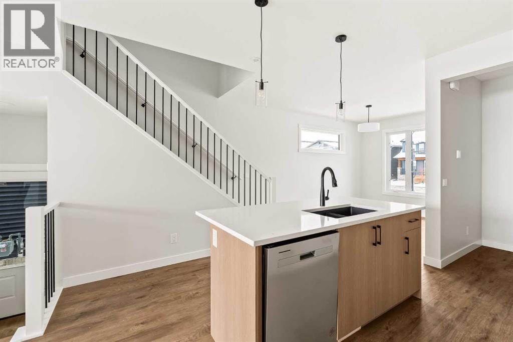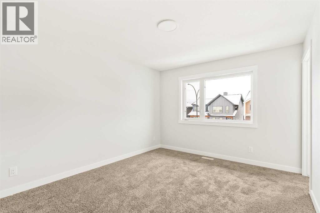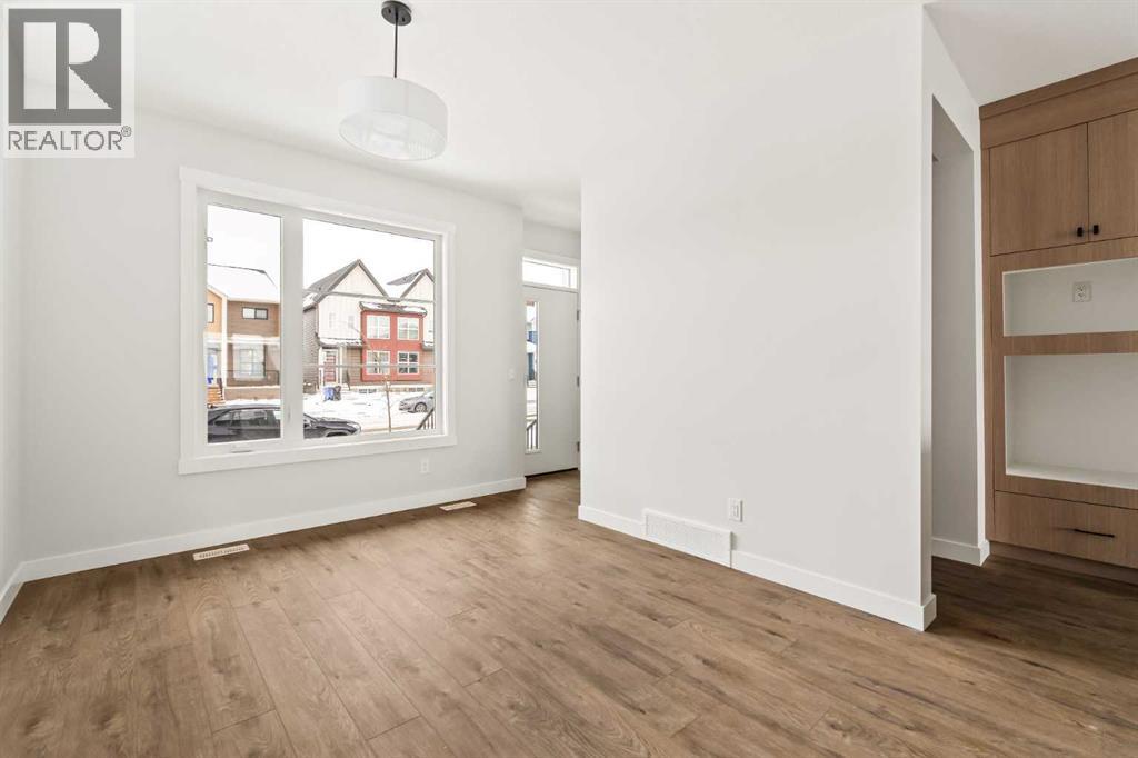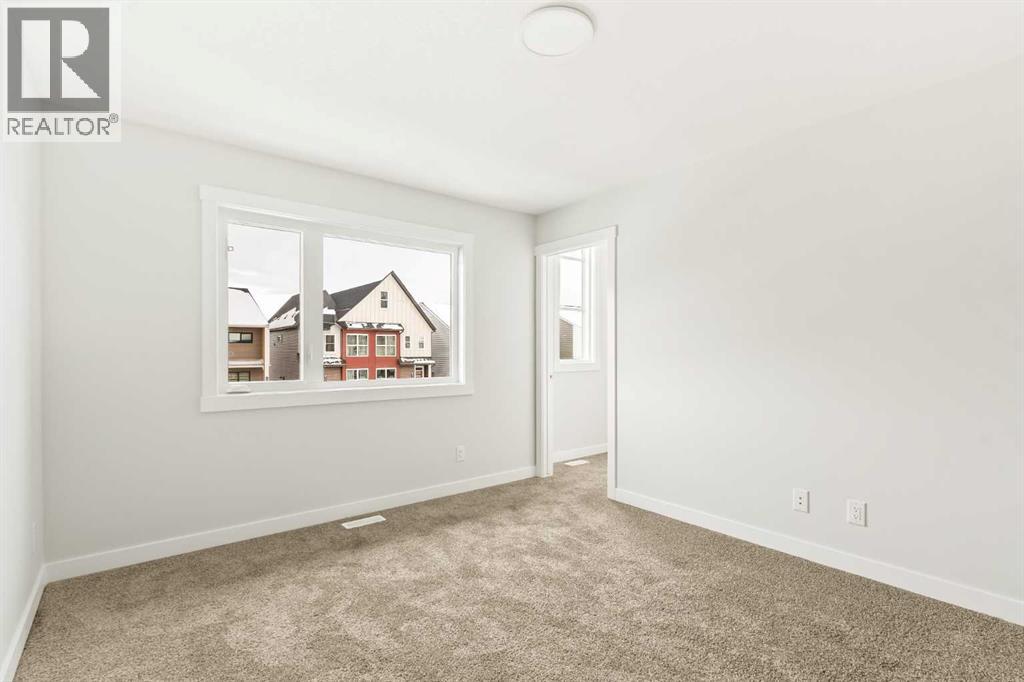 Welcome to the 'Oak' by Brookfield Residential, a beautifully crafted semi-detached home tucked into Calgary’s newest community, Starling. Thoughtfully planned and rich with natural light, this residence blends style, function, and future potential in a way that feels instantly welcoming. Step inside to a layout that truly works for everyday life. Centered around a bright, well-appointed kitchen, the main floor offers seamless flow between the front dining area and the spacious rear living room. The gourmet kitchen package elevates the space with a large central island, ideal for gathering, prepping, or hosting with ease. At the back of the home, the great room frames peaceful views of the backyard and the park beyond, with a full wall of windows and patio doors keeping the space sunlit from morning to sunset. Upstairs, an airy bonus room anchors the second floor, thoughtfully separating the primary retreat from the secondary bedrooms. The primary suite feels like a quiet getaway, featuring a windowed walk-in closet, and a private ensuite complete with dual sinks and a walk-in shower. Two additional bedrooms, a 4-piece bathroom, and a conveniently located laundry room ensure the upper level meets the needs of families, guests, or home office setups. The lower level opens up a world of opportunity. With a private side entrance and basement rough-ins already in place, the space is ready for future development, whether you're envisioning a suite (subject to City of Calgary approval), recreation area, or additional living space. Built with quality in mind and backed by both full builder warranty and Alberta New Home Warranty, this home delivers peace of mind with every detail. In Starling, you’re not just buying a home - you’re choosing a place designed to grow with you. (31449402)
