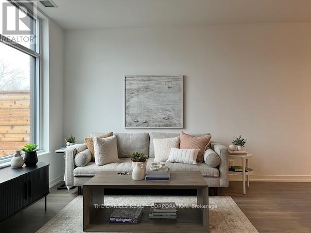 New, Daniels built contemporary Beverley at the Thornhill condominium. Located in a convenient Thornhill neighborhood, connected to transit, shopping, and green spaces. Thoughtfully designed with a range of amenities to enjoy. Features include a 24-hour concierge, rooftop terrace with views and BBQ areas, a party room, and a kids' play zone. Fitness amenities include a 2-story basketball court, workout, and yoga spaces. Free Wi-Fi co-working space, urban gardening plots, and a private dog park and wash station are also available. The Basil Townhome offers 1,242 ft of two-level interior space with an additional 216 ft patio + 31 ft second-level terrace. (41789003)