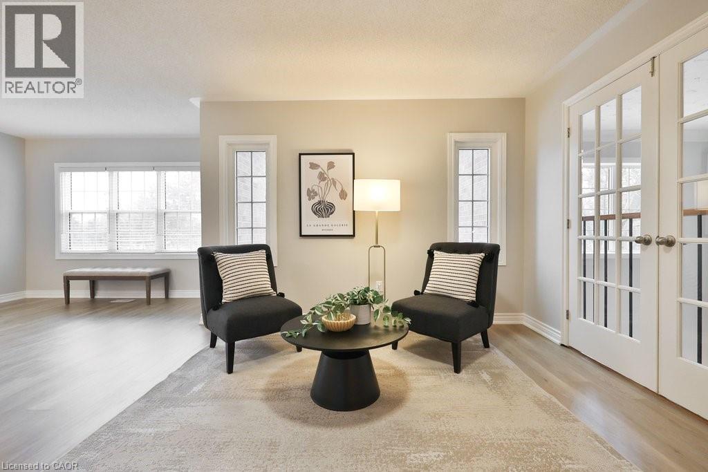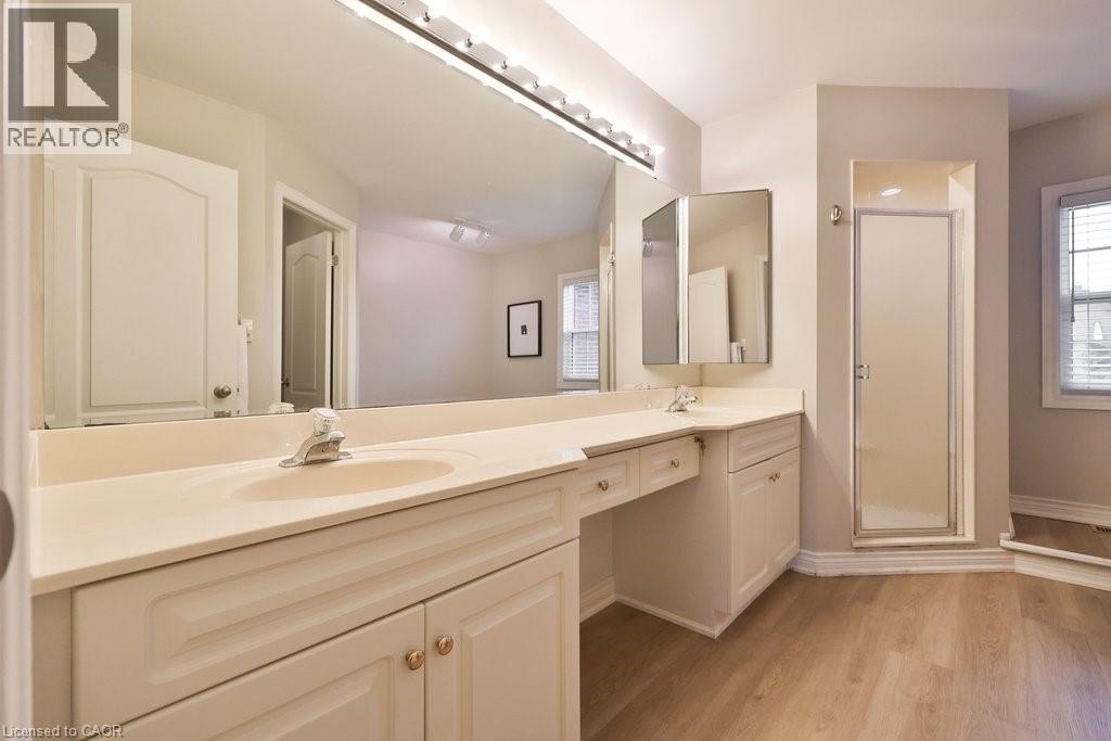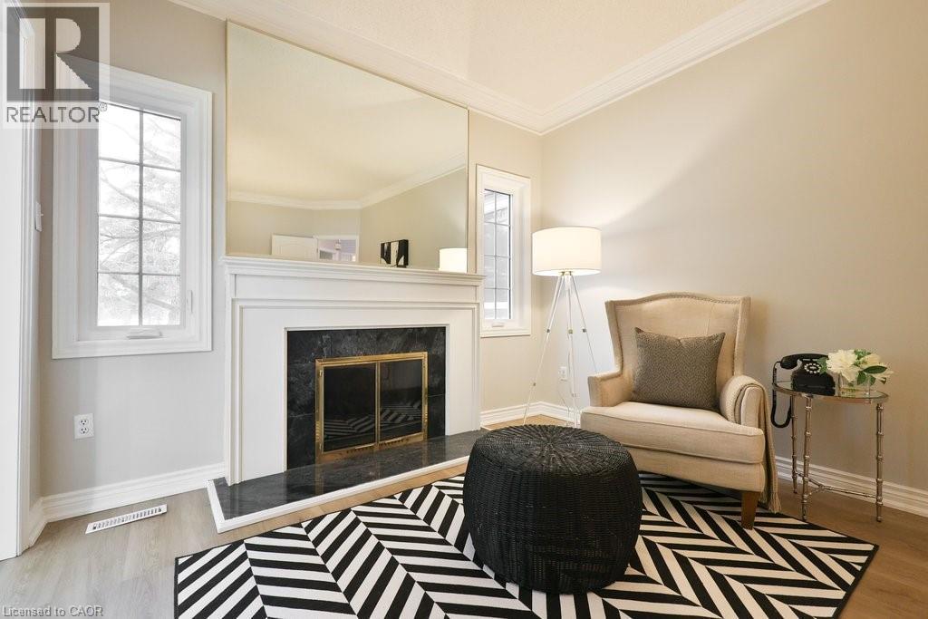 Welcome home. Spectacular executive double-car townhome located in the heart of Millcroft, tucked within a small, sought-after enclave. Inside, enjoy wide-plank flooring across all three levels, a bright neutral décor, and sun-filled living spaces. The main level offers an open dining and living area highlighted by a striking 2-storey great room, seamlessly connected to the all-white eat-in kitchen with walkout to the rear patio. Upstairs features an oversized primary suite with seating area, complete with two walk-in closets and a private ensuite, along with an additional bedroom and full bath. The finished lower level adds even more living space with a rec room and fireplace, a bedroom, and another full bath, perfect for guests or extended family. Close to schools, parks, and shopping.. this home has it all. (69968541)