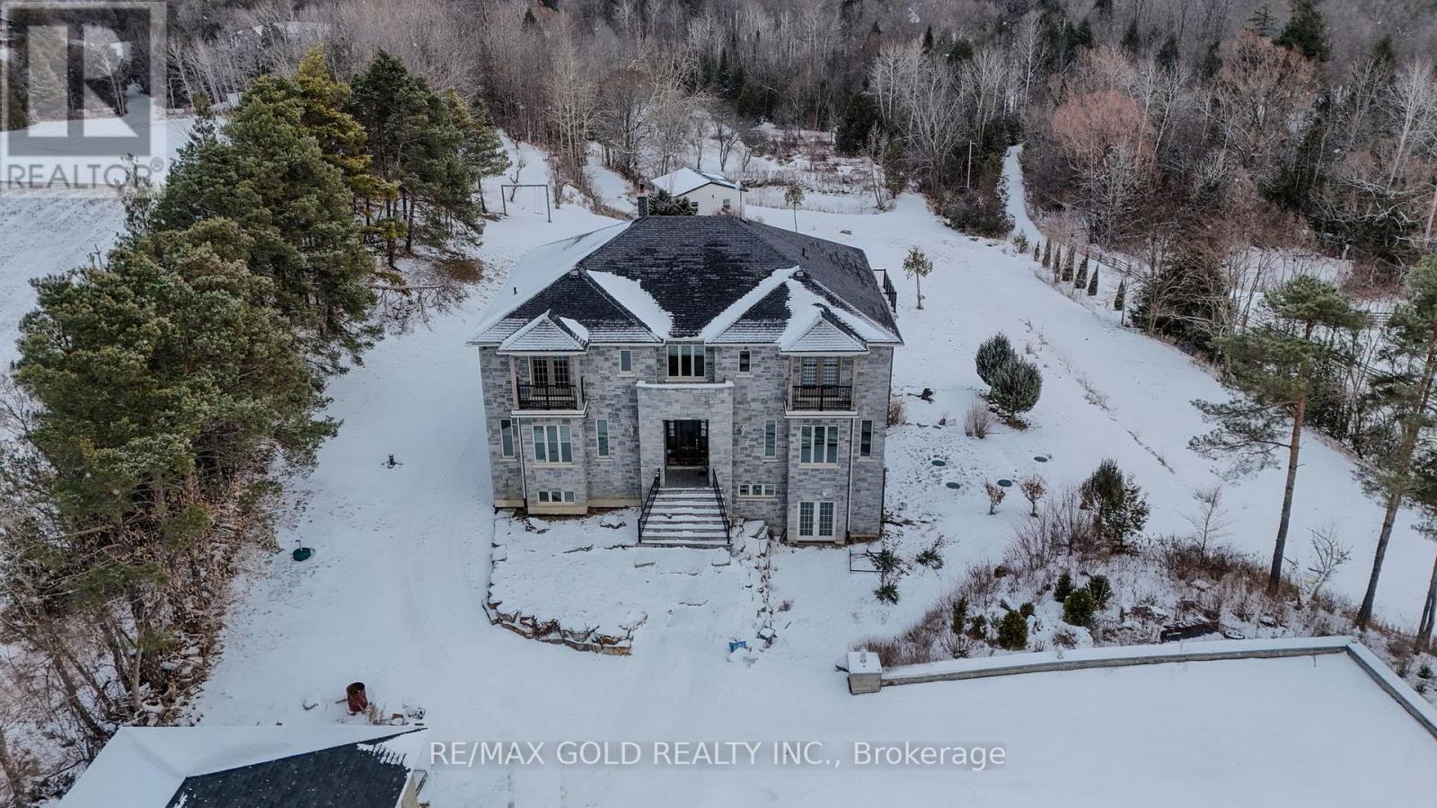Experience Country Living At Its Best With This Stunning 7,327 Sq Ft (Finished Space) Custom Home On 10 Acres, Featuring Heated Marble and Granite Floors, Mahogany Doors and Flooring, Floor-To-Ceiling Windows, and A Gourmet Kitchen With Stainless Steel Appliances and A Breakfast Area Overlooking The Backyard; The Home Offers Formal Living and Dining Rooms, Office, and A Spacious Family Room With A Walk-Out Patio Facing The Pond, While The Primary Bedroom Includes A Spa-Like Ensuite and Walk-Out Balcony, 2nd Bedroom With Ensuite and Own Balcony, Another 2 Good Size Bedrooms with W/I Closet, An Ideal Property For Large or Multi-Generational Families, Spacious W/O Basement With 3 Bedrooms, Rec Room & Wet Bar, 2 Full Washrooms In Basement, Geo Thermal Heating and Cooling System, 400 AMP Electrical Panel, Separate Nanny Suite Built In Back Of House, Property Sold Under Power of Sale, Sold As Is, Where Is. (41789857)