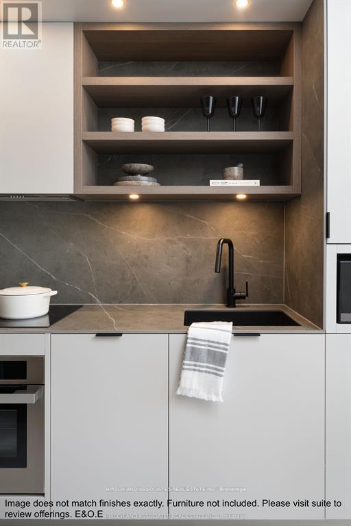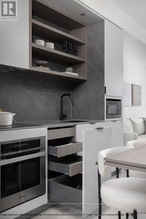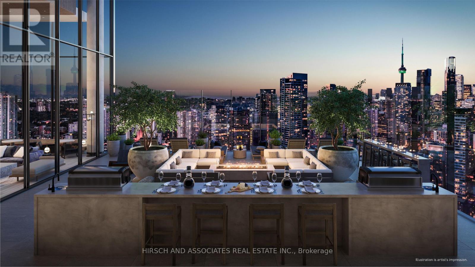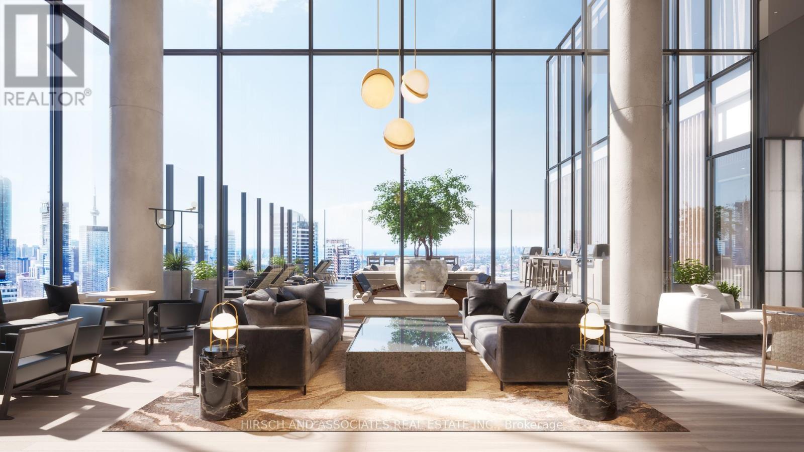 Beautiful 1-bedroom, 1-bathroom suite at 55C Bloor Yorkville Residences with soaring 10' ceilings and west-facing views. The thoughtfully designed interior includes bath storage, shower niche, induction cooktop, moveable dining table, and built-in dining bench. Residents enjoy access to premium amenities such as a state-of-the-art fitness studio, co-working and party rooms, a 9th-floor outdoor lounge with BBQs and fire pits, and the stunning top-floor C-Lounge with panoramic skyline views. Located steps to Bloor/Yonge subway, world-class shopping, dining, and entertainment. Select photos are from a model suite in the building with the same finishes. Select building images are renderings. (41790516)