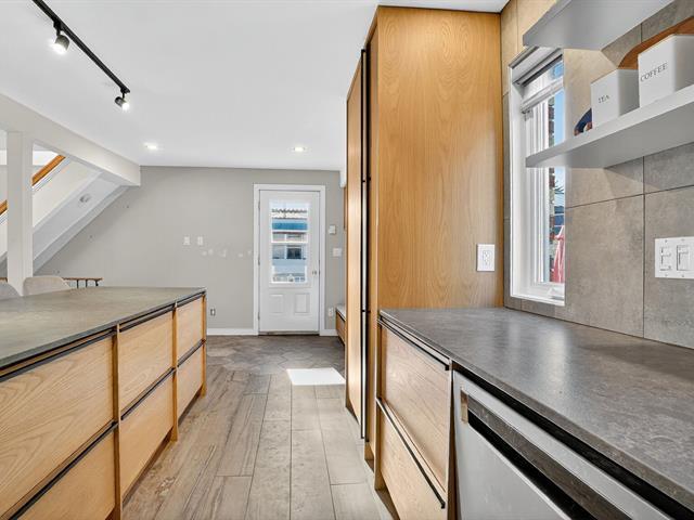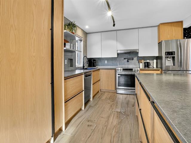 12370 6e Avenue, Montreal East End (RDP), quiet sought-after neighborhood. Built in 1951 on 4,005sq.ft. lot with detached garage. Main floor fully renovated in 2023: LVL beam installed to remove supporting wall, open-concept layout, European-style wood kitchen with quartz counters. 2 bedrooms, 2 bathrooms. Perfect starter home or small family. Close to A25 bridge, Henri-Bourassa, and Highway 40. (56938732)