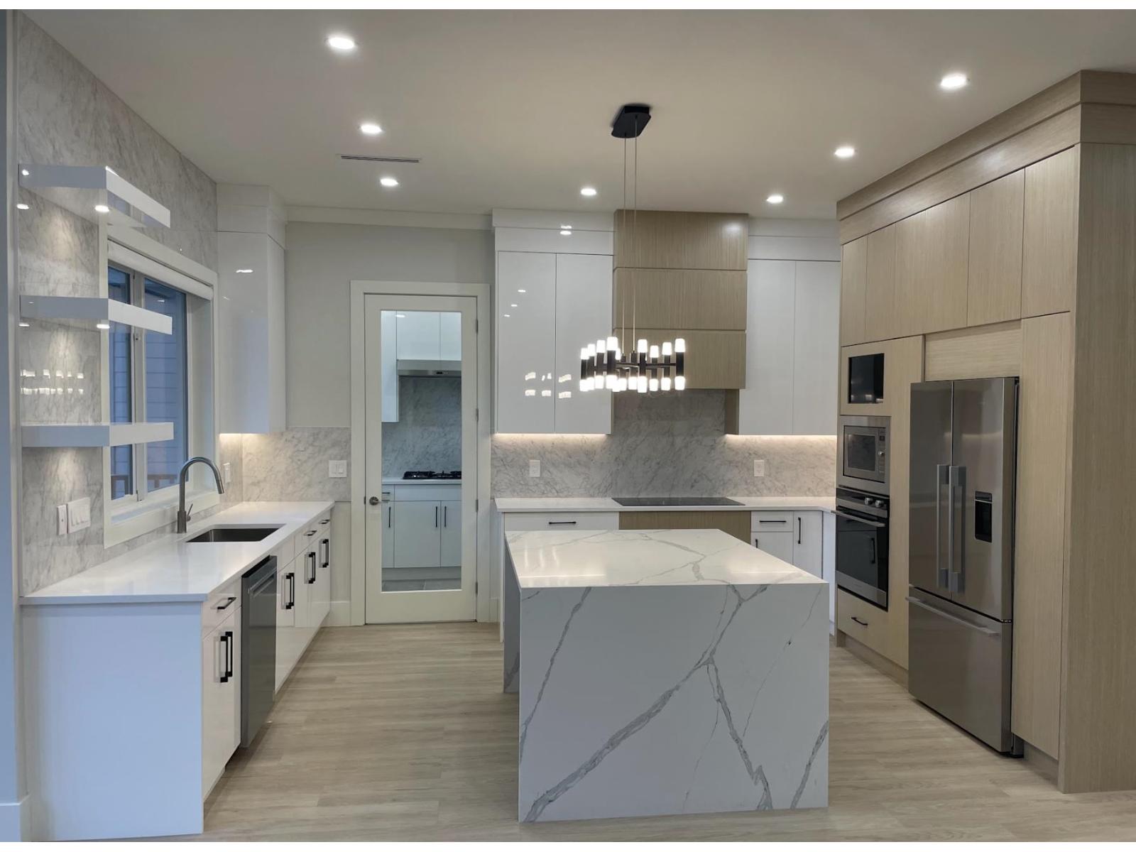 Brand new 2,890 sqft luxury home in Fleetwood for under $4,900/month! This stunning, never-lived-in 5 bedroom, 4.5 bath residence offers an open-concept main level with soaring 10 ft ceilings, a bright modern kitchen with full appliances, a large island, abundant natural light, and built-in security cameras, plus a fully equipped spice kitchen with its own fridge, range top, and sink. Enjoy a spacious flex room with an elegant fireplace and a convenient main-floor bedroom with 1.5 baths. Upstairs provides 4 comfortable bedrooms, 2 baths, and a dedicated laundry room. The lower level showcases a large theatre room with screen, a wet bar, and a full bath. Secure garage parking included, close to schools and a park. Move in as early as Dec 21. Open House Sunday Dec 14th 3:30 to 4:15pm (32249600)