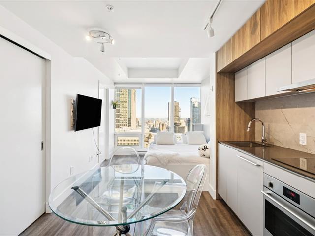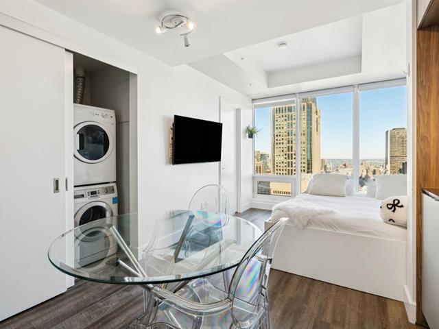 Soyez aux premières loges avec ce superbe condo situé au 26e étage de la Tour des Canadiens 2. Vue dégagée spectaculaire sur la ville! Immeuble de prestige offrant de nombreuses commodités tel que gymnase, bar à vin, skylounge, piscine intérieur, sauna,spa etc. L'immeuble dispose d'une passerelle avec la tour Deloitte donc pas besoin de sortir à l'extérieur pour utiliser le réseau de transport en commun souterrain. Le condo vient tout meublé. Possibilité de location 32 jours et plus. Excellent investissement ! À qui la chance! (46347624)