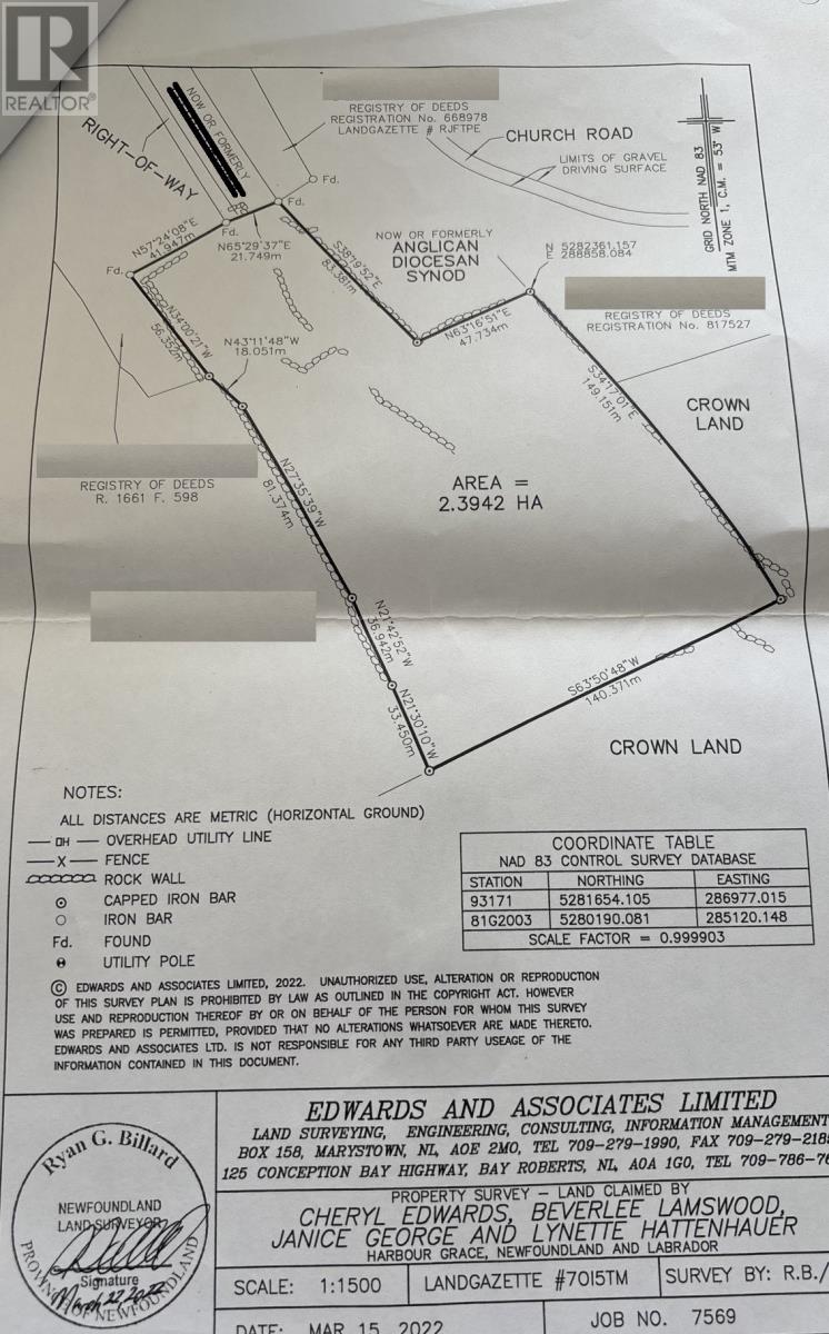 Welcome to the beautiful southside of Harbour Grace. This 5.6-acre parcel of land has potential to be the ideal place for your year-round residence, summer getaway or to subdivide into multiple lots (subject to town approval). Land is accessed from a right of way off Southside Road and offers mature trees and a slope towards the water...ideal for a walk out basement. Land is approximately a ten-minute drive from all amenities in Bay Roberts or Carbonear and a one-hour drive from the capital City of St. John's. (30470125)