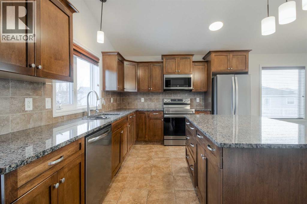 Welcome to 11 Cougar Cove North! This large bi-level home is located on a quiet street in the north Lethbridge community of Uplands. The main floor includes rich wood tones of maple cabinets, real hardwood floors, and spindle wood railings. Vaulted ceilings through the main floor living room, dining room, and kitchen provide a wide open feel accented by large windows that send natural light through this area. Two bedrooms and a 4-piece bathroom can be found on the main floor with the laundry room conveniently located adjacent to all. The secluded primary bedroom is located over the attached double garage and houses a large ensuite and walk-in closet. The basement in this bi-level is fully developed and is home to one of the largest family rooms you'll find at almost 750 square feet! You'll also find another bedroom in the basement as well as a full 4-piece bathroom and storage room. A solid home with plenty of space on a fully fenced large yard with alley access. Nothing to do but move in and enjoy. (31451767)