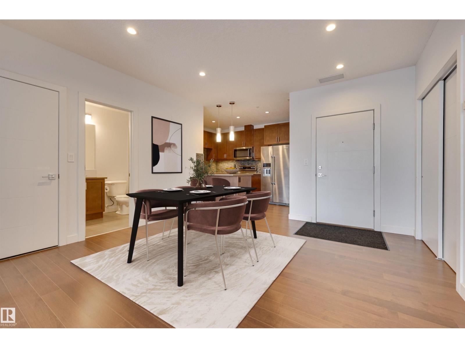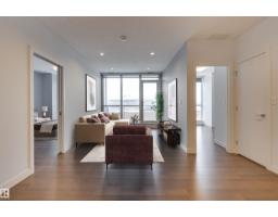 Live above it all in this stunning high-rise condo offering breathtaking city and downtown views from nearly every room. This beautifully designed 2 bedroom, 2 bathroom, 2 titled, side-by-side heated underground parking stall unit features a bright, open-concept layout with floor-to-ceiling windows that flood the space with natural light. The modern kitchen is finished with quartz counters, contemporary cabinetry, & stainless steel appliances, flowing seamlessly into the generous living and dining areas finished with hardwood. The spacious primary suite includes a walk-through closet & a private 3pc ensuite, while the second bedroom is perfect for guests or a home office. Enjoy your morning coffee from the private balcony with panoramic views. Additional comforts include in-suite laundry & A/C. Enjoy luxury building amenities including a concierge, fitness centre, hot tub, rooftop patio, kitchen, social rooms & more. Steps to dining, shops, cafes, & transit. Some photos are virtually staged. (33645240)