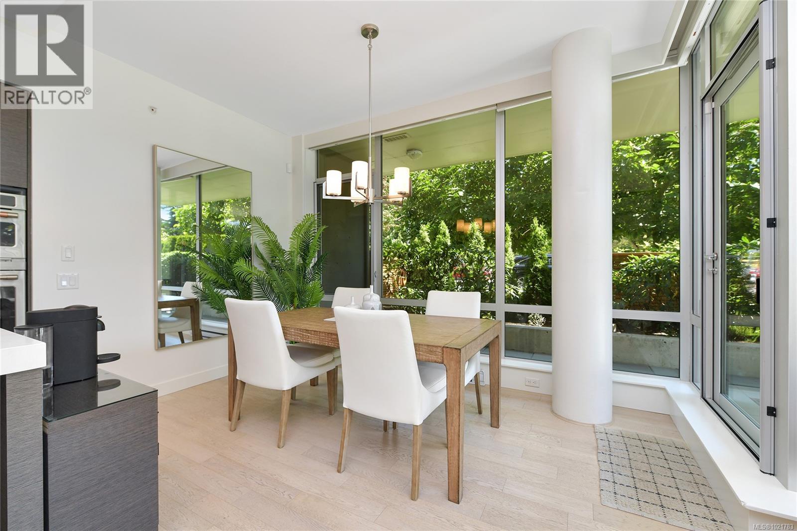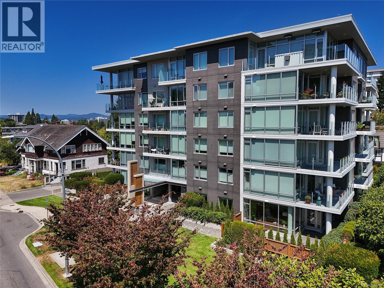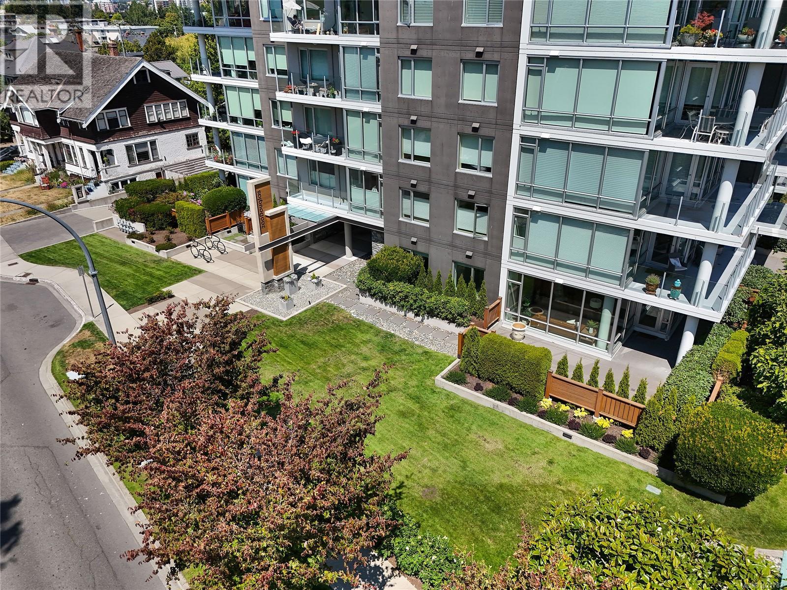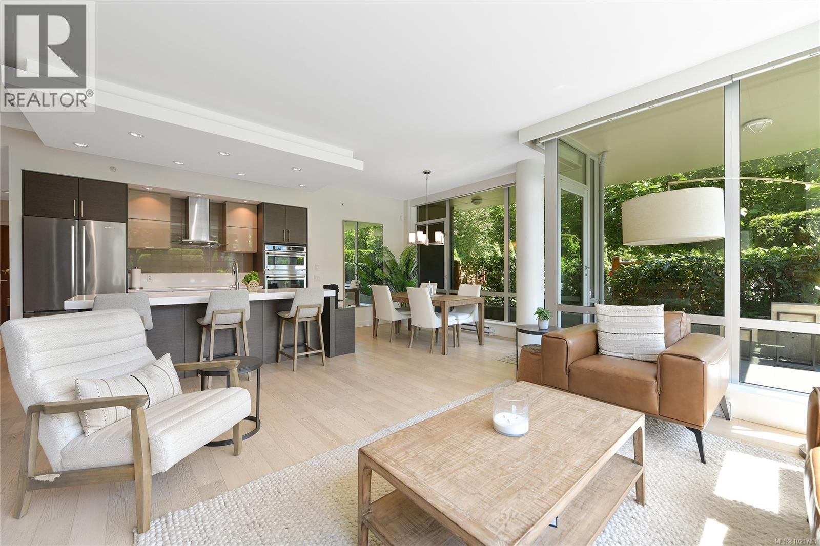 Superb patio home perfectly located across the street from Beacon Hill Park and a short stroll to Victoria's scenic marine drive, Dallas Road. ''200 Douglas on the Park'' is a modern steel and concrete building and this home offers 2 bedrooms plus den/office with open floorplan living room and kitchen and dining plus floor to ceiling windows and 1400 square feet of space for the ultimate in parkside/boardwalk living! Ideal for pet owners or gardeners with its own huge patio area. Sophisticated design and finishing make this a special home within walking distance to the Inner Harbour, downtown Victoria, James Bay and Fairfield villages. (30199340)