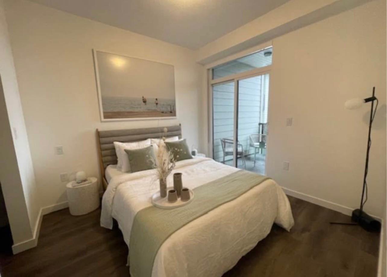 Step into luxury at The Grove. Plan B is a spacious 772 sq. ft. with 2 bedrooms, 2 washroom(s) and Den.The unit faces north side with a patio yard. Enjoy the timeless elegance of the generous ceiling heights and bright & large picture windows. It further boasts quartz counter tops, full-size Samsung appliances, including a 32" 3-Door Refrigerator. The Grove has amazing amenities that include Residents only Fitness Studio, Social Lounge and Kitchen, Guest Suite, Outdoor Amenity Area, and On Site Building Management. Parking and storage are also available, and you can rent what you need! A small pet may be considered with Landlord Approval and Pet Deposit. Entire building is non-smoking/vaping. Tenant insurance is mandatory. $2150 Per Month. (32250883)