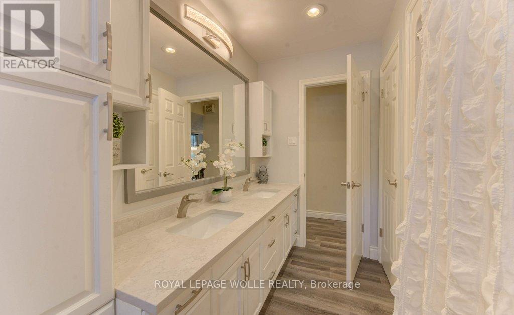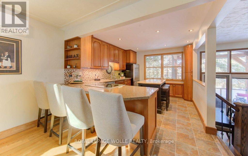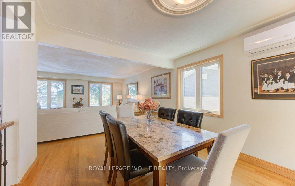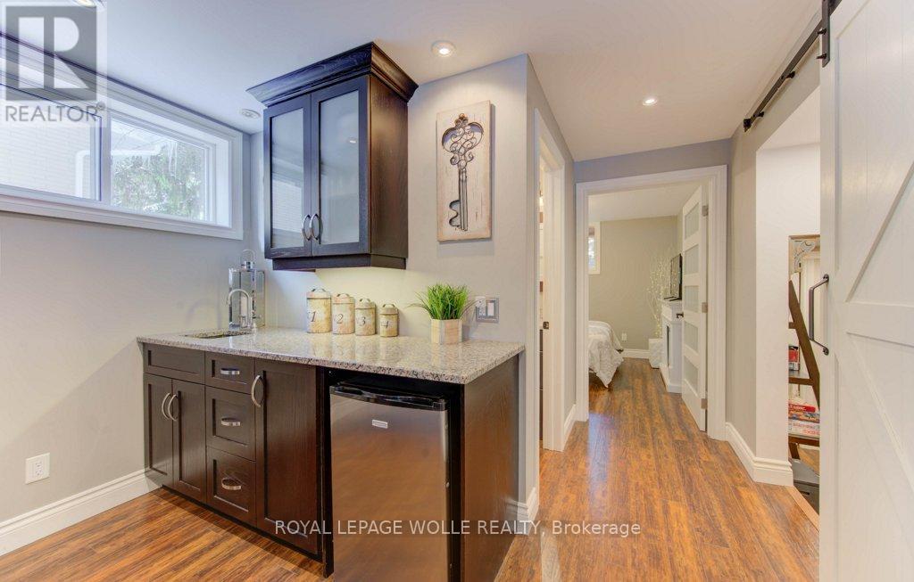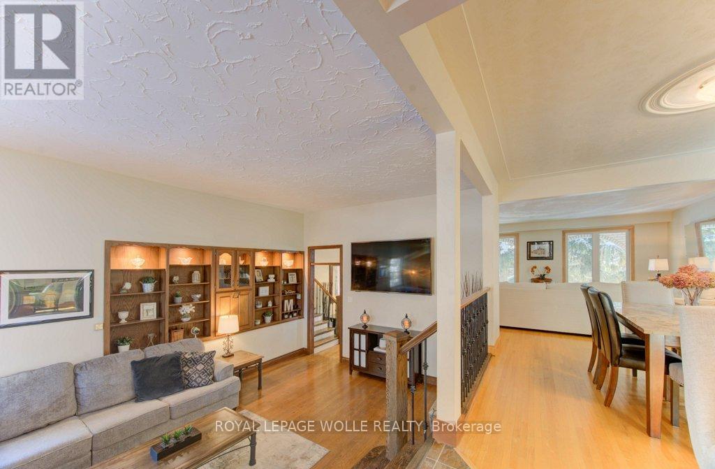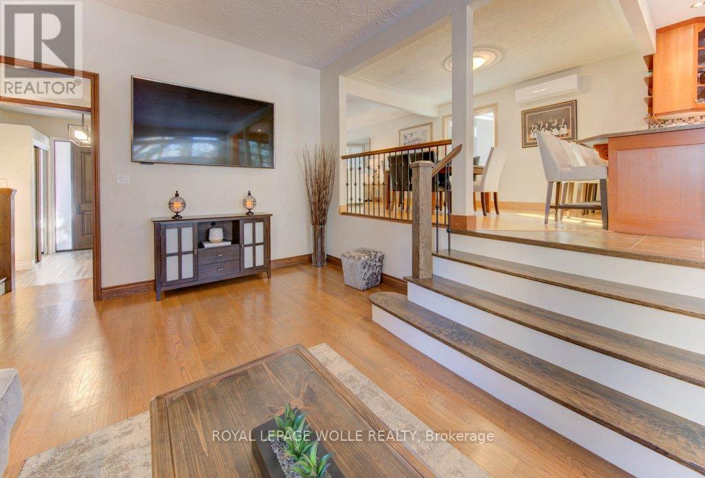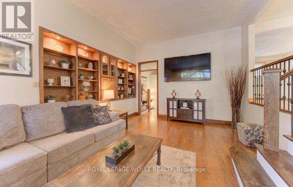 This tastefully updated, open-concept home is nestled in the desirable Westmount neighbourhood-ideally situated between Kitchener and Waterloo for seamless commuting and everyday ease. Only minutes from Uptown Waterloo, Belmont Village, and The Boardwalk, the location provides quick access to shops, dining, and essential amenities, all while being set within a warm, established community surrounded by walking trails and mature, tree-lined streets. Inside, the home makes a striking first impression with its oversized front door, lofty ceilings, and newer energy-efficient windows that bathe the interior in natural light and offer views of the scenic quarter-acre, wooded lot. The generous floor plan includes formal living and dining spaces that flow into a well-equipped kitchen with quartz countertops and an expansive great room-perfect for hosting guests or spending time with family. The fully finished basement extends the living space even further, featuring a custom wet bar, a high-efficiency gas fireplace, and a flexible recreation area ideal for movie nights, game-day gatherings, or simply unwinding. Significant plumbing and electrical upgrades add peace of mind and everyday practicality. Step outside to a backyard built for leisure and relaxation. A multi-tiered deck with wraparound steps, a welcoming patio with fire pit, a delightful treehouse, and a shed wired for electricity create an outdoor haven that feels like your own private escape. Exterior improvements-including updated roofing, soffit, fascia, downspouts, and heat pumps/AC-ensure the home is as functional as it is attractive. Impeccably maintained and centrally located, this home delivers the perfect combination of comfort, style, community, and convenience. (41794526)
