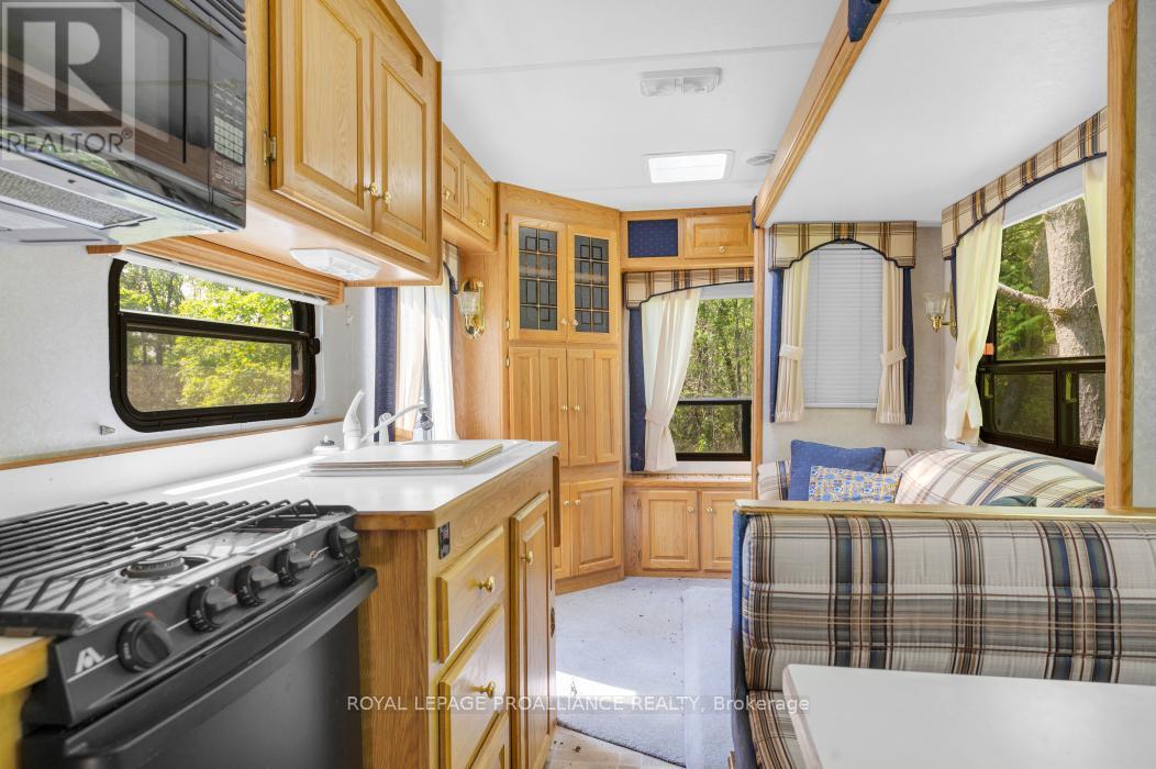 Imagine owning a sprawling 9.40-acre slice of tranquility at 4 Wolf Lake Rd, Madoc Township, Ontario, just 20 minutes north of Madoc off Highway 62. This private and removed escape, though close to everything you might need, offers a pre-cleared driveway on this generous, irregular, treed lot. There are ample possibilities for a serene retreat, a rustic camp, or your future home in the country. For the water enthusiast, the Moira River runs through the back end of the property , and you'll find a private dock down at the river for immediate access. This prime river frontage opens up a world of kayaking, canoeing, and fishing adventures, allowing you to explore the scenic waterways right from your backyard. The current owner began crafting a wellness retreat here, and four charming trailers are included -three boasting rustic wood finishes, inviting decks, and enchanting string lights for magical evenings around a pre-made fire pit space, all set up for immediate enjoyment. Each trailer comes with its own solar panel and AGM batteries in attached sheds, and there's a convenient carport on site. Hydro is available at the road, which is municipally maintained, ensuring easy access. For families, Madoc Township Public School is just 10 minutes away along a bus route. Outdoor enthusiasts will revel in direct access to the Ontario Snowmobile trails, while the vibrant town of Bancroft is only 35 minutes away. This is more than a property; it's an invitation to embrace a lifestyle of peace, nature, and adventure. Don't miss this rare opportunity! (41794893)