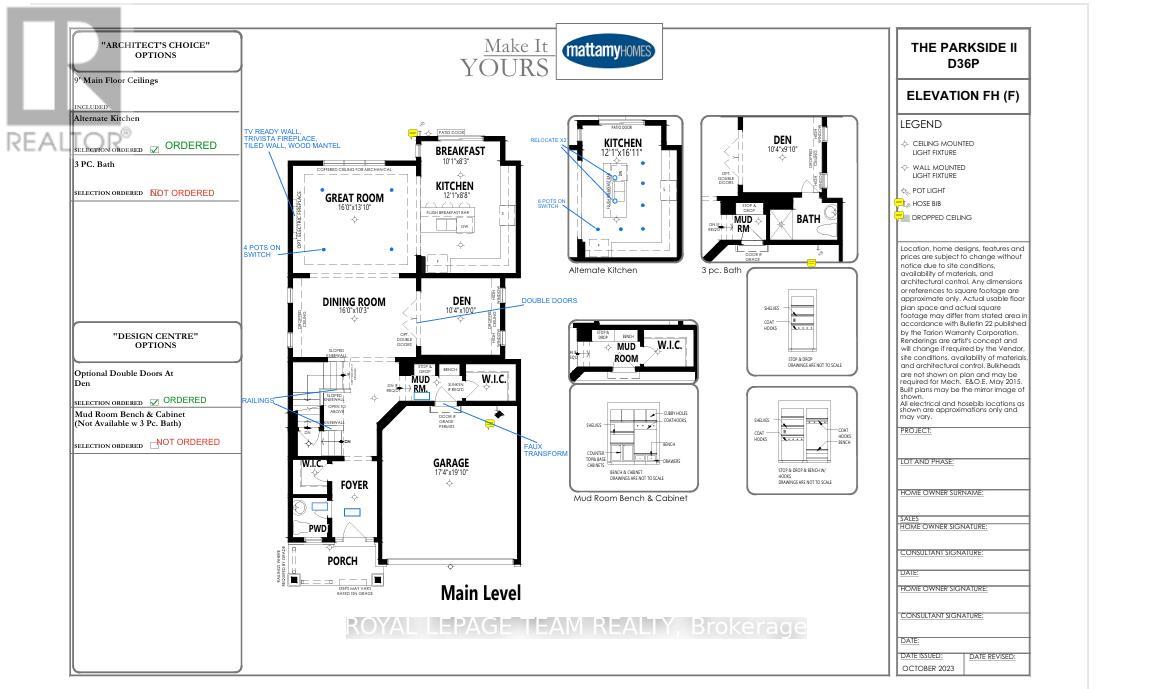 FINISHED BASEMENT WITH FULL BATH! Welcome to one of Mattamy's most popular models, the Parkside 2, offering over $146,000 in upgrades. This stunning double-car garage home in the sought-after Half Moon Bay community is brand new and set for completion next year. The inviting front porch opens into a spacious foyer with a powder room and walk-in closet, leading to a mudroom with inside garage access and additional storage. The main floor features an open-concept layout with a dining room, a great room with an electric fireplace, and a separate den with French doors, ideal as a home office or a separate living space. The chef's kitchen includes a large island, quartz countertops, upgraded cabinetry, and a breakfast nook with patio doors to the backyard. Hardwood stairs take you to the second floor, where the primary bedroom impresses with a massive walk-in closet and a luxurious spa-like 5-piece ensuite. Bedrooms 2 and 3 share a Jack & Jill bathroom, Bedroom 4 enjoys its own ensuite, and all have walk-in closets. A convenient second-floor laundry adds to the functionality. The fully finished basement includes a large rec room and a full bathroom, perfect for additional living space. Located on a quiet street in a family-friendly neighbourhood, this home is just minutes from trails, Barrhaven Marketplace, top-rated schools, the Minto Recreation Centre, and more. The photos are intended solely to showcase the builder's finishes. (41794886)
