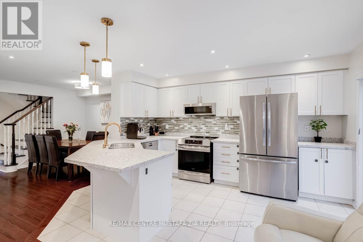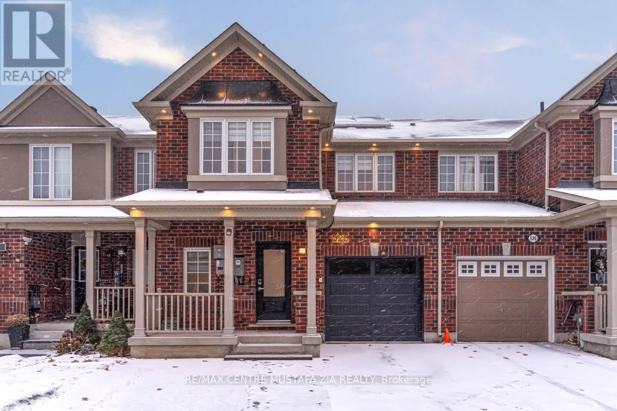 Welcome to 528 Attenborough Terrace, located in the highly sought-after Willmott community of Milton. This exceptionally well-laid-out townhouse offers approximately 2,000 sq. ft. of total finished living space, featuring 3 bedrooms, 3 bathrooms, and an abundance of natural light throughout. This beautifully upgraded open-concept Mattamy home lives more like a semi than a typical townhouse. Freshly painted in timeless Benjamin Moore neutral tones, with commercial-grade luxury wide-plank vinyl flooring on the second level and pot lights throughout all floors, including the basement and garage as well as exterior elevation pot lights that are dimmable. The upgraded kitchen showcases refinished white cabinetry, premium gold hardware and fixtures, upgraded pendant lighting, and high-end appliances with extended warranties remaining. The home is energy-efficient and future-ready, featuring solar panels (2022, net metering), EV-charging capability, and smart-home lighting and controls throughout. Additional mechanical upgrades include a tankless water heater and, whole-home humidifier. A new insulated garage door with side-mounted opener maximizes storage space, while the brand-new fiberglass front door with multi-point lock and smart Schlage system provides enhanced security. Enjoy a professionally landscaped backyard with Techo-Bloc pavers, electrical outlets, French drains, a sprinkler system, rare red maple trees for added privacy, and a childproof design (with custom fencing and custom cover grills on window wells). The fully finished basement provides additional living space and storage, with the potential to add a bathroom. Rare 4-car parking with a full-size driveway and no sidewalk, no direct rear neighbour, allowing for more sunlight and scenic views, as well as direct views of a family-friendly community park across the street, make this a truly turn-key home in one of Milton's most desirable neighbourhoods. (41795649)