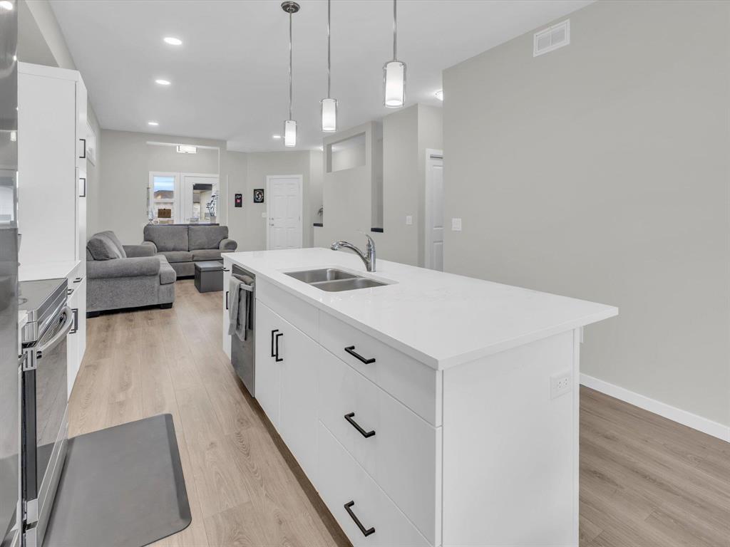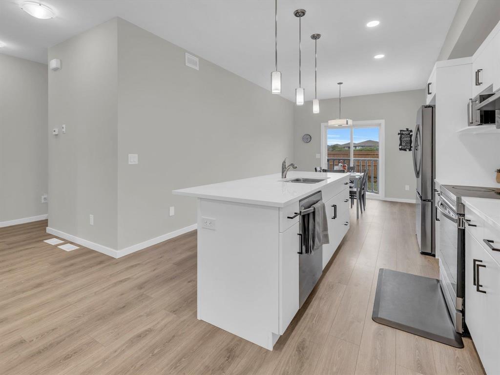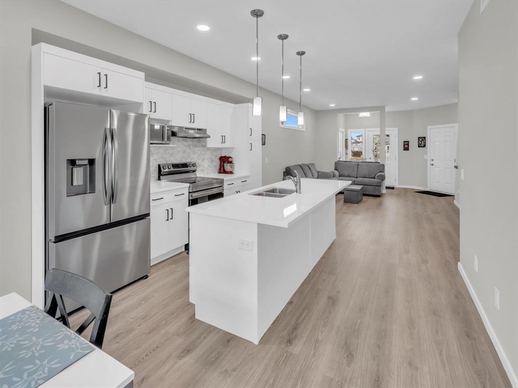 1R//Winnipeg/SS Now, Offers As Received Located in BISON RUN, one of Winnipeg s fastest-growing neighborhoods, this modern 3 Bed, 2 Full Baths, and a bright open-concept layout with 9 ceilings and upgraded vinyl plank flooring throughout. Step inside to the spacious great room, flowing seamlessly to the kitchen featuring quartz countertops throughout, large island with bar seating, pendant lighting, LED disc lights, tall pantry, and brand new appliances. At the back of the home, the dining area is highlighted by a piano window and sliding patio doors, filling the space with natural light. The primary bedroom includes a full ensuite with quartz countertops and a standing shower with glass doors. Both bathrooms feature quartz countertops for a clean, modern finish. Other upgrades include: 200 Amp panel, central A/C, gas rough-in for range & BBQ, Hardie siding, poured sidewalk & driveway. The basement is ready to develop with plumbing for a future full bathroom, 4 egress windows, and ample space for 1 2 bedrooms plus a rec area. Built on piles and still covered under new home warranty, 5 mins to the UofM, close to all levels of schooling, shopping centers, parks and so much more!! (231708315)