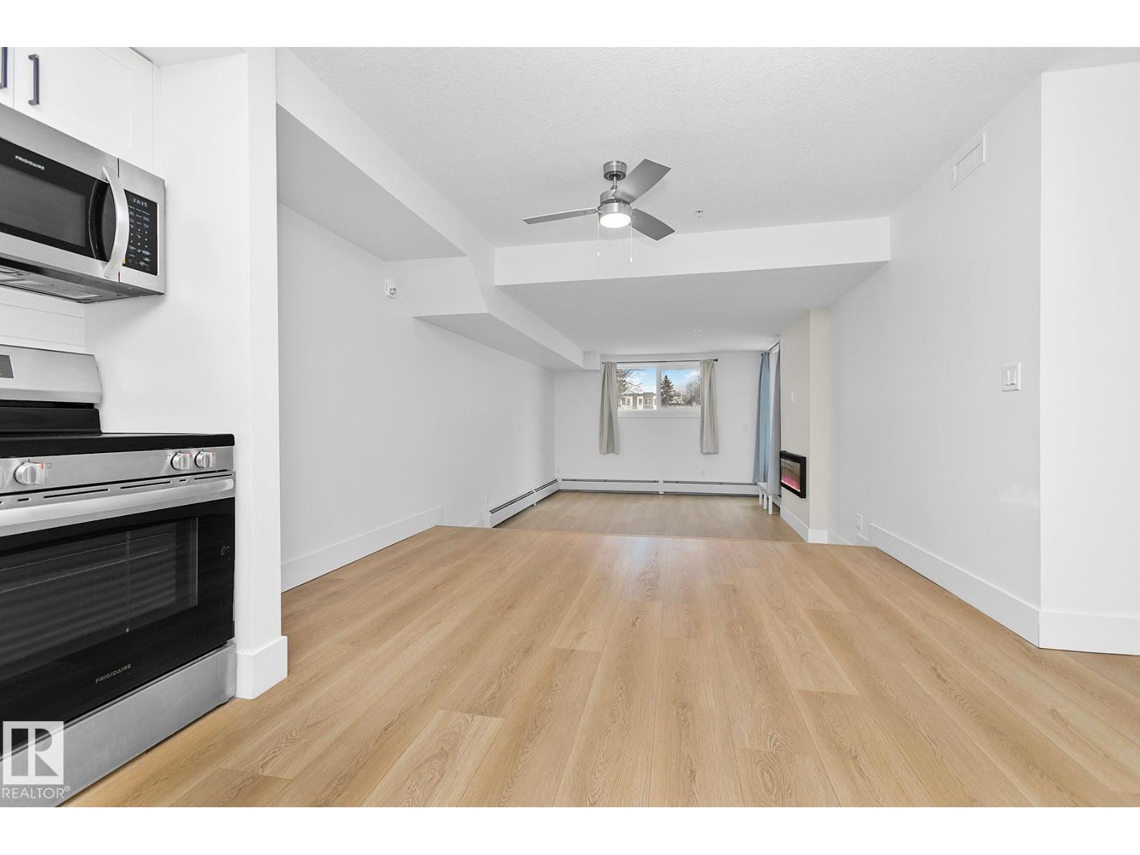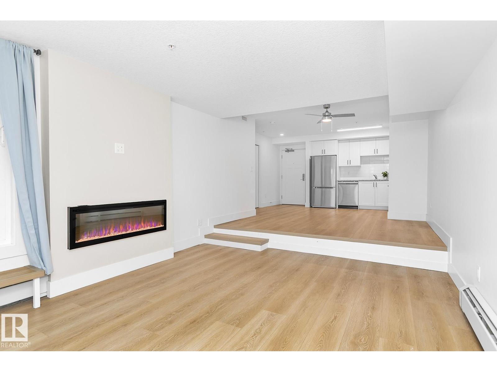 Located in Laperle, this ground floor level condominium is mere minutes from West Edmonton Mall and other shopping, hospital and transit. Newly rebuilt in 2024, the unit features all new appliances, windows and vinyl plank flooring. It also features a wall mounted glass fireplace in a sunken living room, an assigned parking stall and storage unit. The main bedroom has a walk-in closet and ensuite, and there is a second bedroom. There is also an in suite laundry room. The complex features a fitness centre & bike storage room. Close to parks, schools and child care facilities, this unit is perfect for a first time buyer or a small family. (33646717)