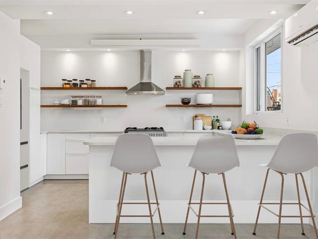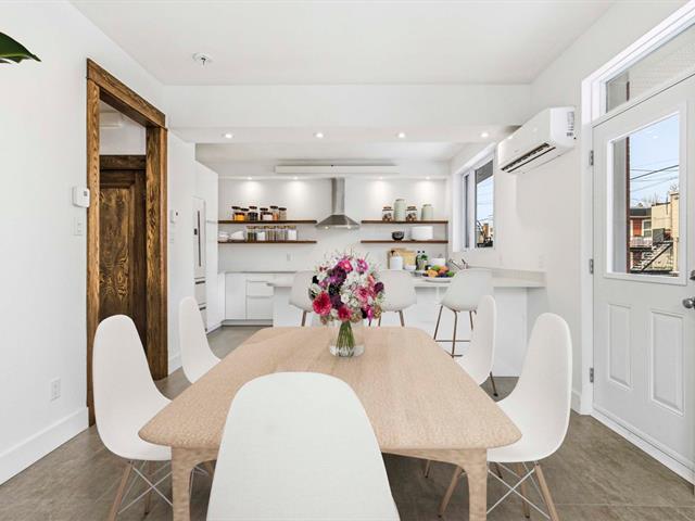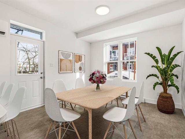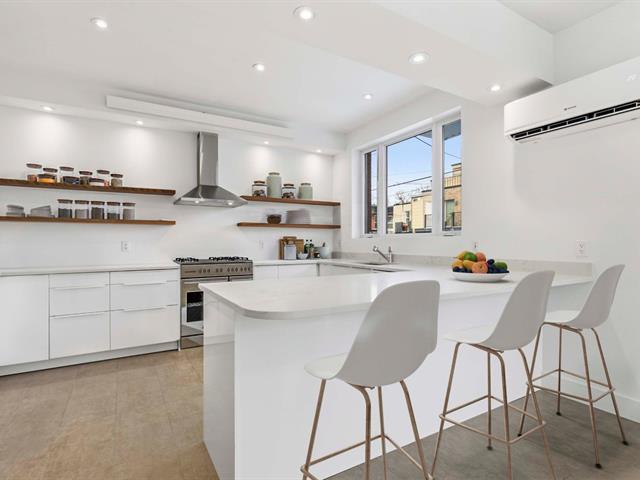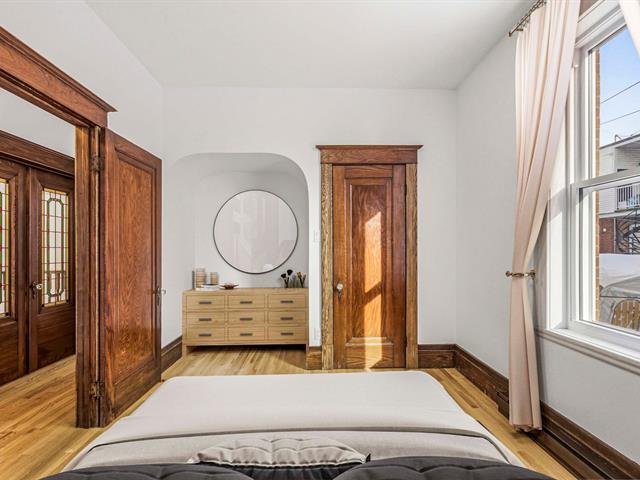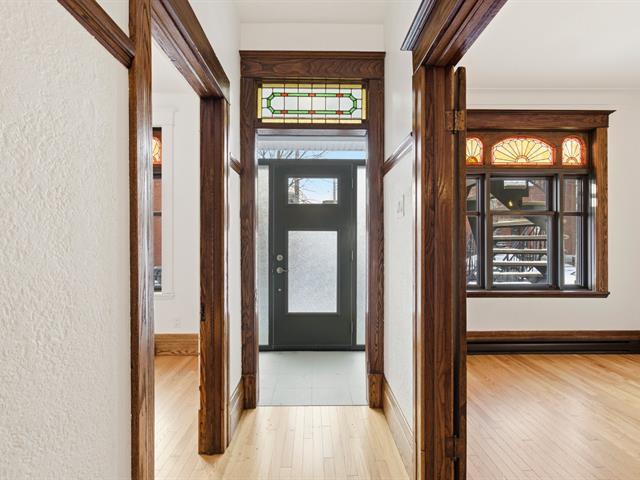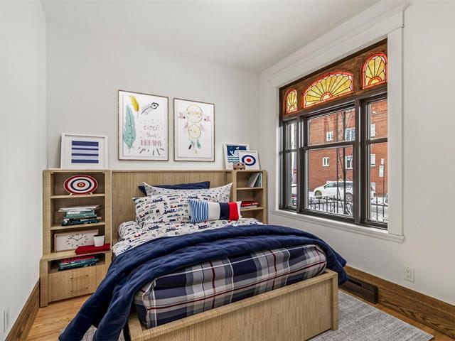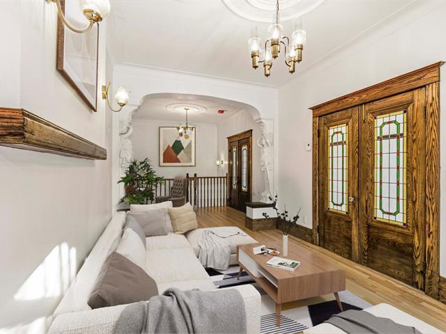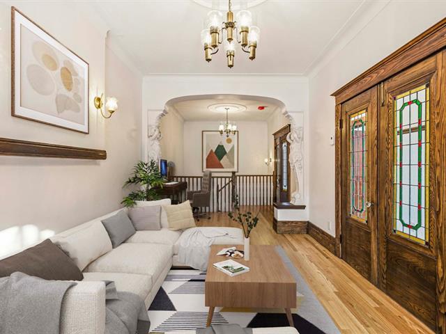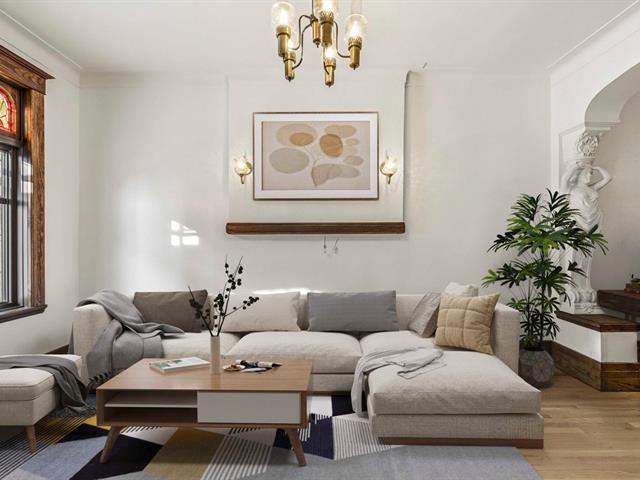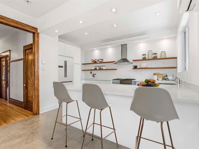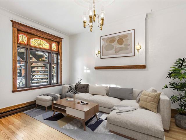 Stunning two-story apartment with parking and exclusive use of the courtyard, just a block from the Botanical Garden and Maisonneuve Park in Rosemont. Major interior and exterior renovations have been completed while preserving its original charm (woodwork, stained glass, moldings, and plaster rosettes). The property offers four bedrooms, a renovated kitchen, and two modern bathrooms with clean lines. A large, versatile family room in the basement can be customized to your needs. Heated floors throughout the basement and bathrooms. The cost of the renovations to the main floor and basement is approximately $1.5 million. (47973481)