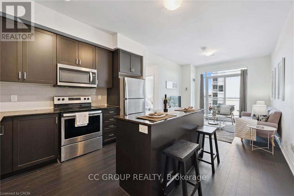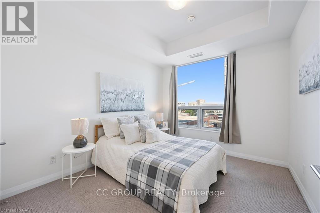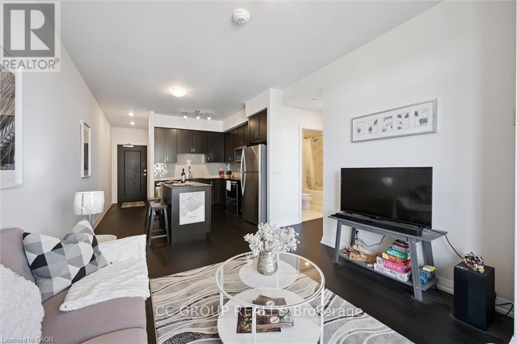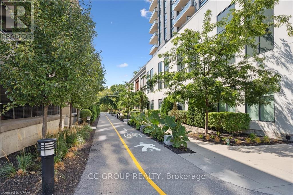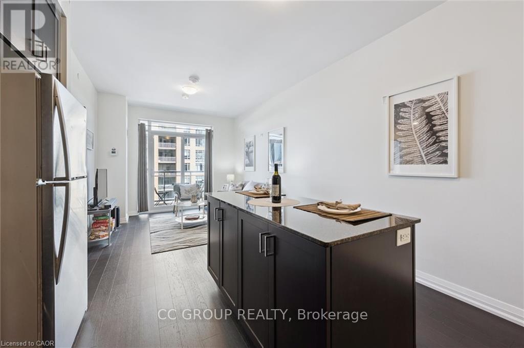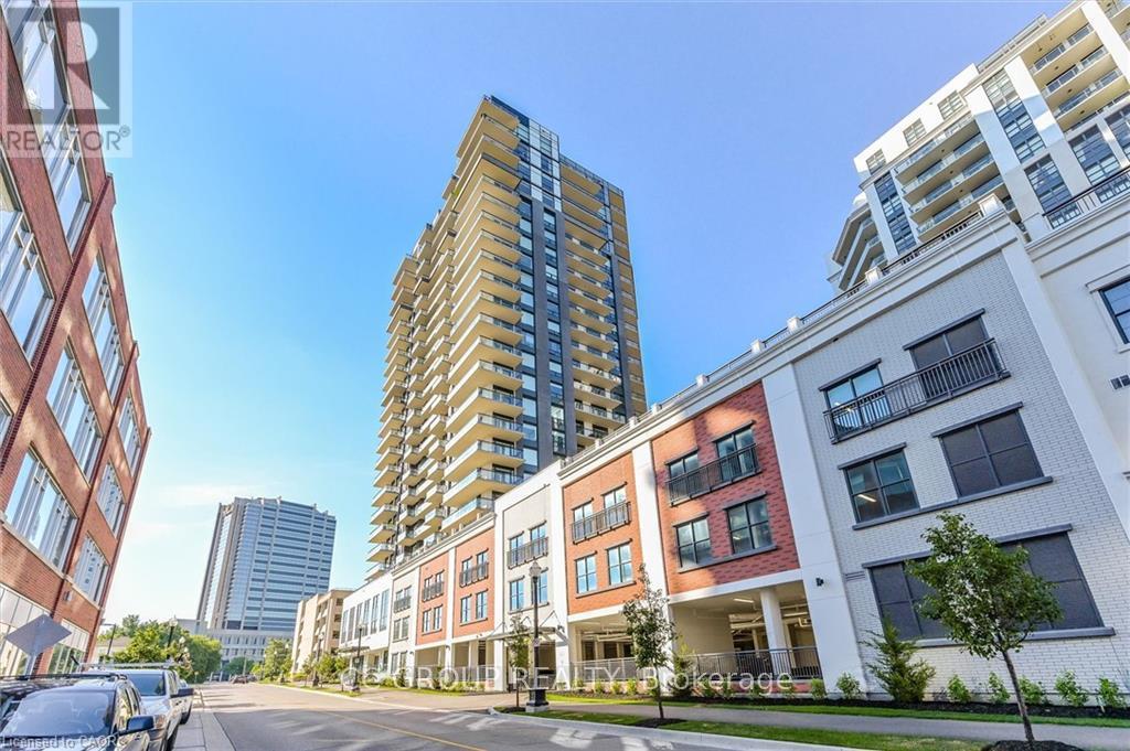 Luxurious 1-Bedroom Condo in the Heart of Uptown Waterloo. Discover suite 603 at the prestigious Caroline Street Private Residences, perfectly situated in Uptown Waterloo. This bright, southeast-facing unit offers stunning views of the Bauer District and places you just steps from everything your condo lifestyle demands. From the moment you enter, the attention to detail is evident. This owner-occupied condo is in pristine condition and boasts an upgraded kitchen with granite countertops, a large island ample base cabinets, a white subway tile backsplash, and stainless steel appliances. Engineered hardwood flooring flows seamlessly through the open-concept kitchen and living area, creating a warm and inviting space perfect for relaxing or entertaining. Step out onto your private balcony to enjoy city views. The bathroom features ceramic tile flooring and a surround-tiled tub, while convenience is enhanced with in-suite laundry, one underground parking space (#64 on P1), and a locker (#99 on P1). Residents enjoy a full suite of amenities including a concierge, fitness centre, guest suite, massive outdoor terrace with BBQs and a putting green, and a media room. Everything you need is within easy reach: grocery stores like Vincenzos, upscale restaurants, bakeries, public transit including the LRT, Waterloo Park, and Waterloo Square. (41796676)