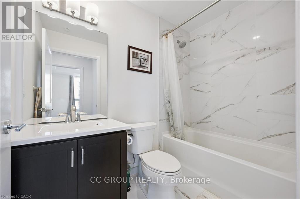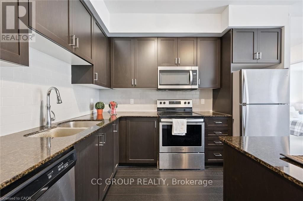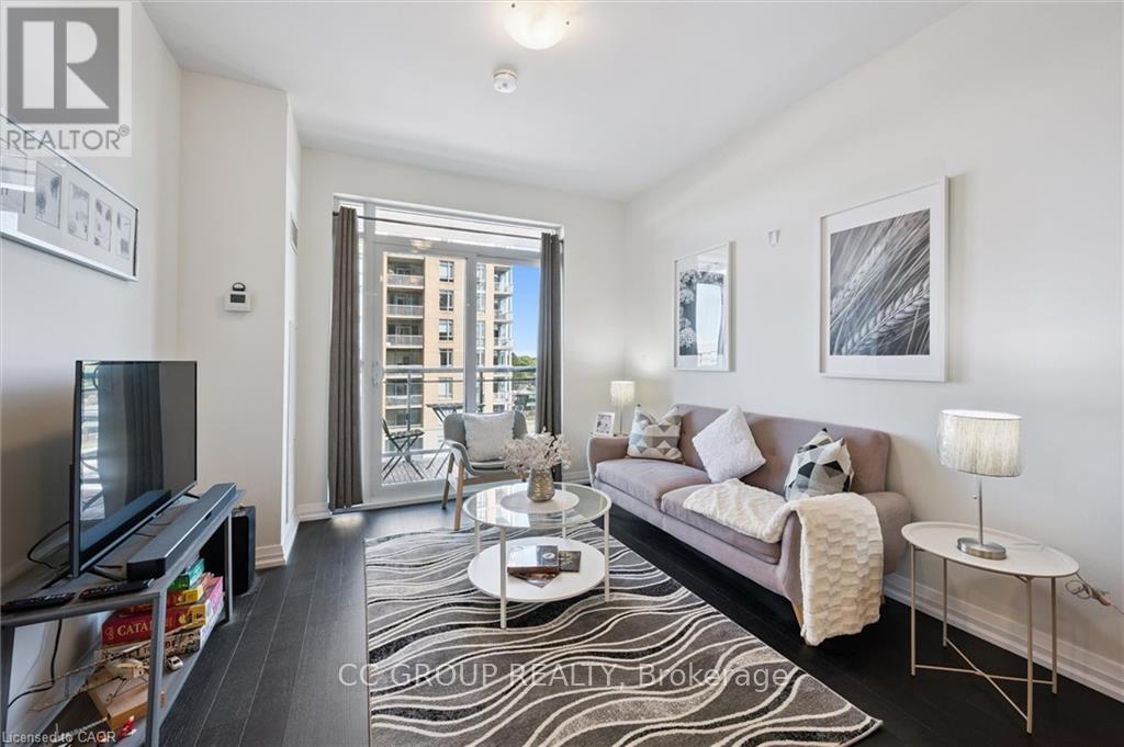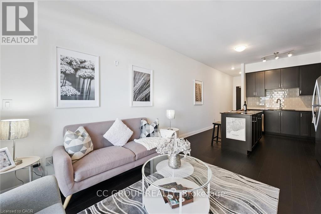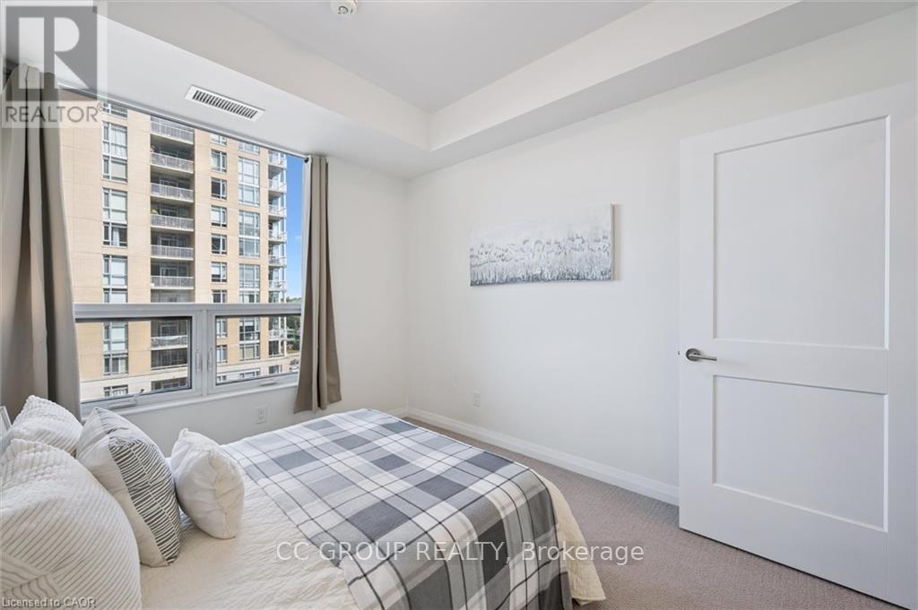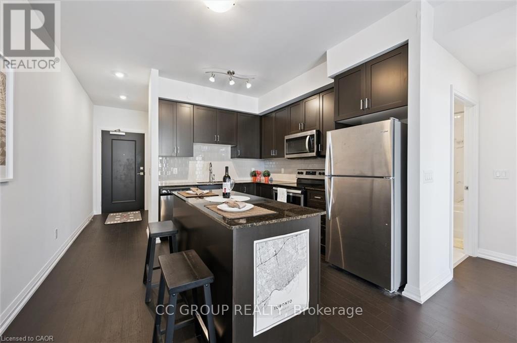 Luxurious 1-Bedroom Condo in the Heart of Uptown Waterloo. Discover suite 603 at the prestigious Caroline Street Private Residences, perfectly situated in Uptown Waterloo. This bright, southeast-facing unit offers stunning views of the Bauer District and places you just steps from everything your condo lifestyle demands. From the moment you enter, the attention to detail is evident. This owner-occupied condo is in pristine condition and boasts an upgraded kitchen with granite countertops, a large island ample base cabinets, a white subway tile backsplash, and stainless steel appliances. Engineered hardwood flooring flows seamlessly through the open-concept kitchen and living area, creating a warm and inviting space perfect for relaxing or entertaining. Step out onto your private balcony to enjoy city views. The bathroom features ceramic tile flooring and a surround-tiled tub, while convenience is enhanced with in-suite laundry, one underground parking space (#64 on P1), and a locker (#99 on P1). Residents enjoy a full suite of amenities including a concierge, fitness centre, guest suite, massive outdoor terrace with BBQs and a putting green, and a media room. Everything you need is within easy reach: grocery stores like Vincenzos, upscale restaurants, bakeries, public transit including the LRT, Waterloo Park, and Waterloo Square. (41796676)