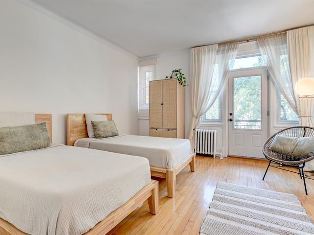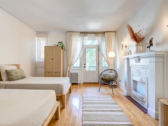 This condo, located on the second floor at the front of the building, offers welcome tranquility thanks to the mature trees lining the facade. Accessible via a shared entrance, the unit opens onto a small foyer leading to a bright living area combining a living room and dining room. The functional kitchen features quartz countertops, a ceramic backsplash, and a washer/dryer area. Both bedrooms are spacious, one with a private balcony, and a full bathroom completes the layout. The condo is rented until August 2026 for $2,500/month. Condo fees include, among other things, heating for the unit. (56277412)