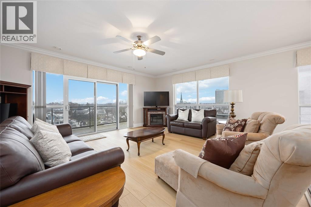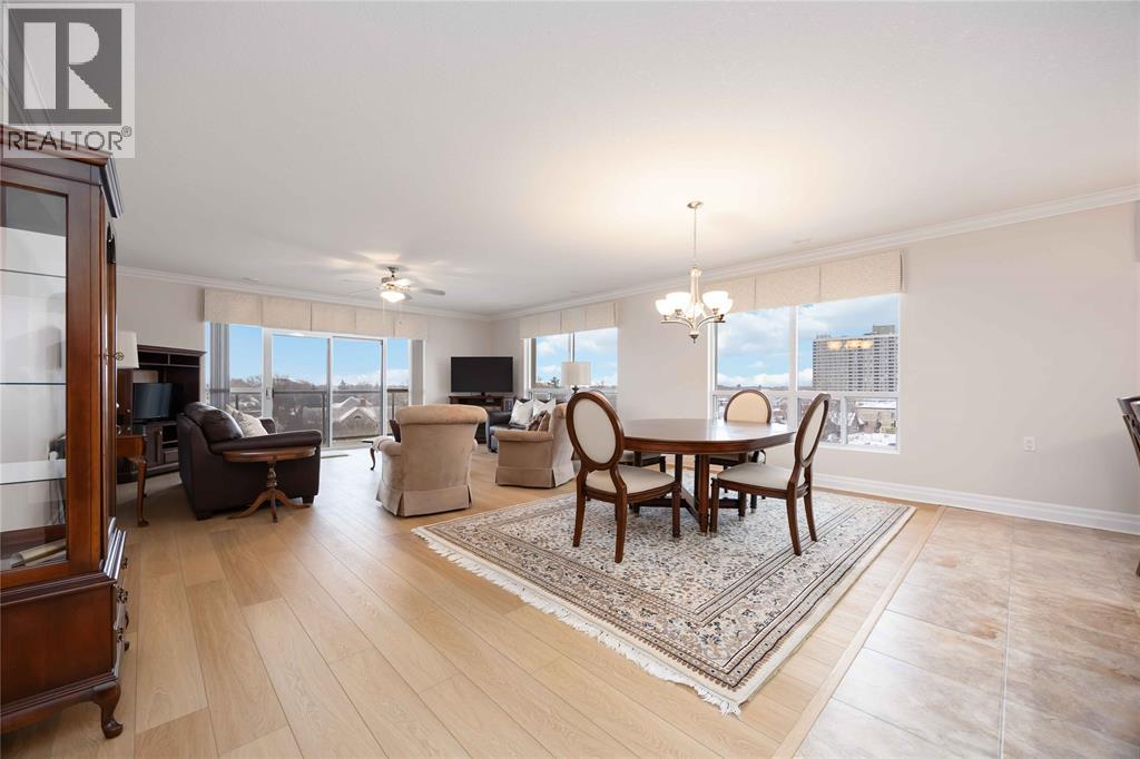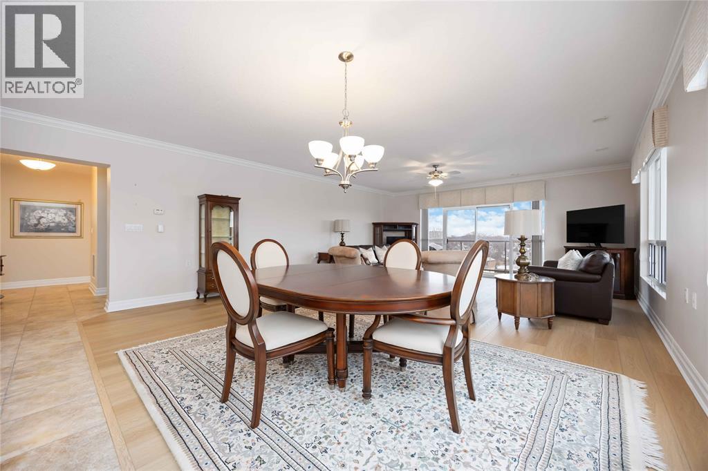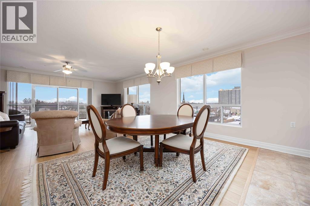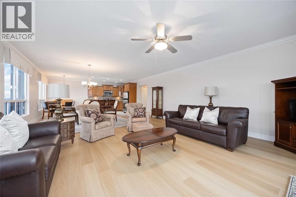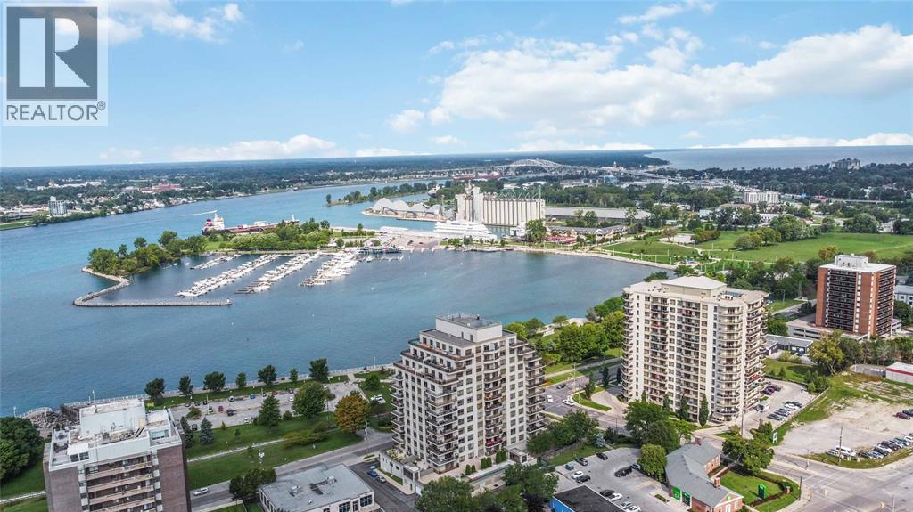 Experience Sarnia’s waterfront lifestyle from a home that puts it all within reach. This captivating, sunlit and well cared for corner suite delivers sweeping views of the St. Clair River and the downtown skyline, offering a rare mix of waterfront calm and city energy. The layout is a perfectly blended space for entertaining or just relaxing. With gorgeous new flooring, plenty of natural light, and a kitchen finished with solid wood cabinetry you’ll love every detail in this unit. The primary bedroom has city views with a walk-in closet and the ensuite has a tub with heated timed floors. The in-suite laundry adds everyday convenience and the other full bathroom and bedroom are ideal for guests. A wrap-around balcony extends your living space and gives you year-round sunrises, evening sunsets and a picture perfect view you’ll never get tired of. The condo fee of $1,106.62 covers exterior and grounds maintenance, heat, hydro, water, property management, and recreational facilities. (54210979)