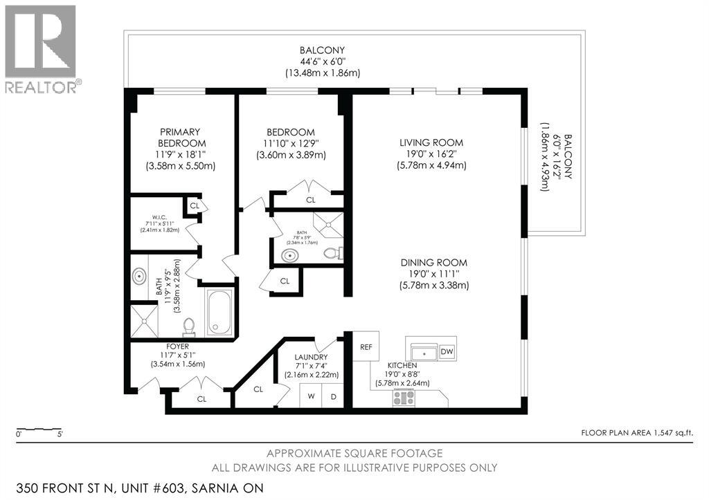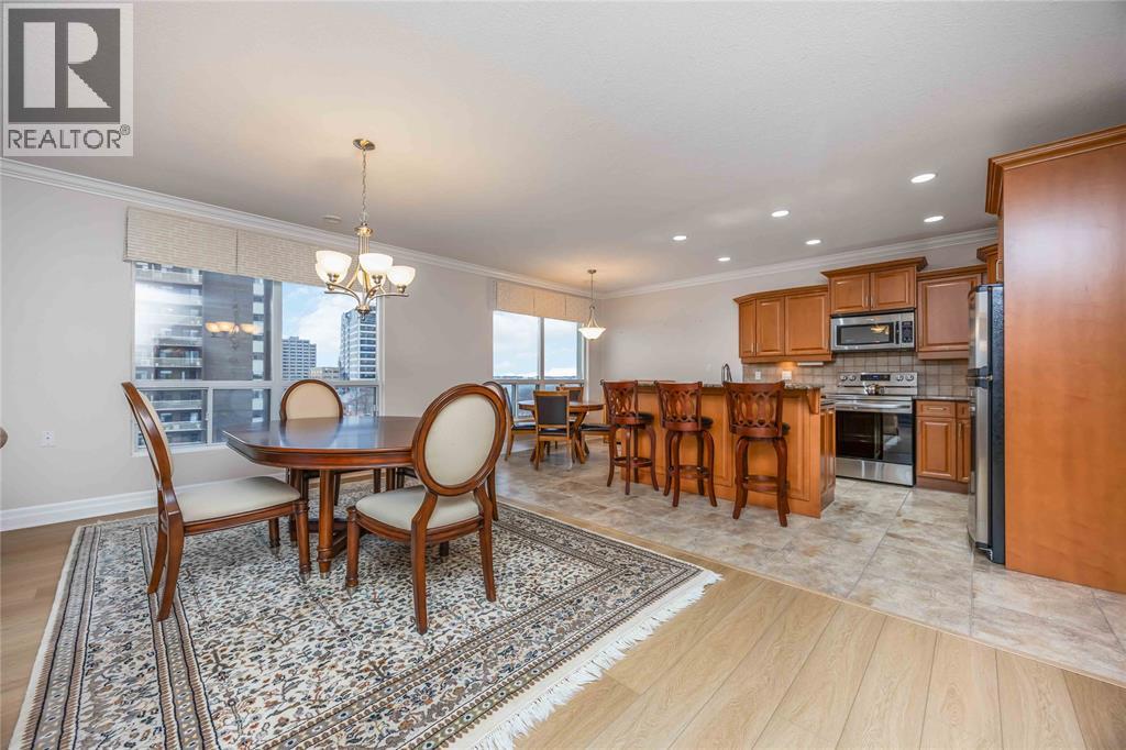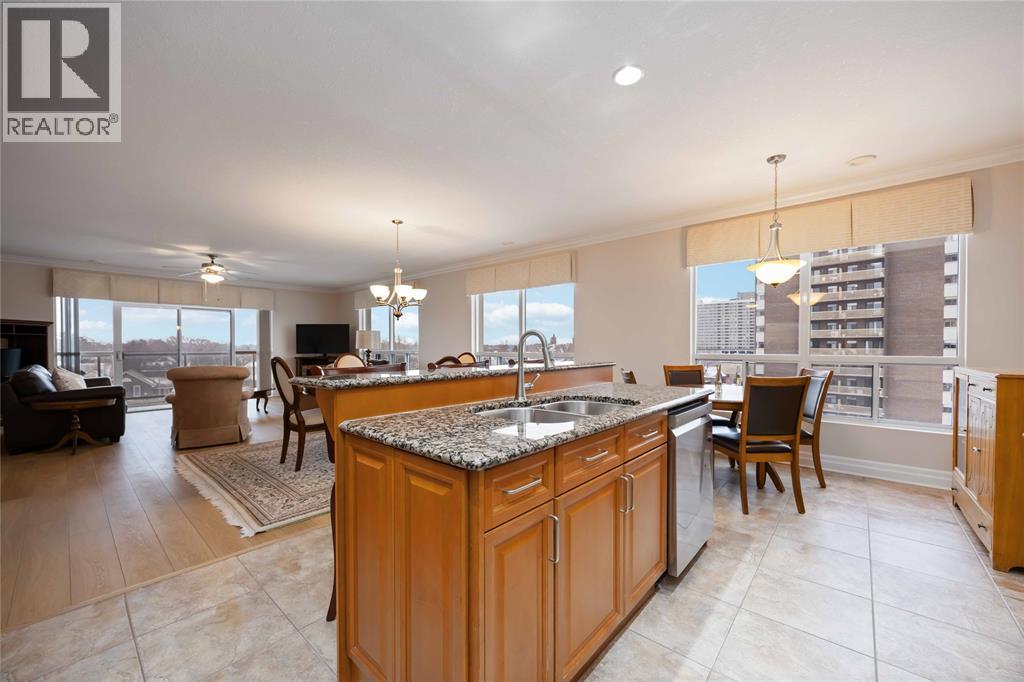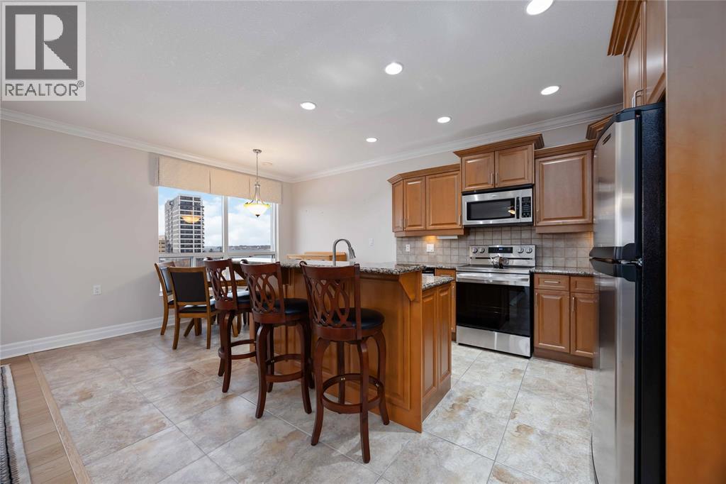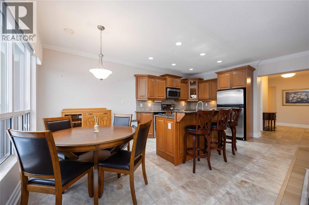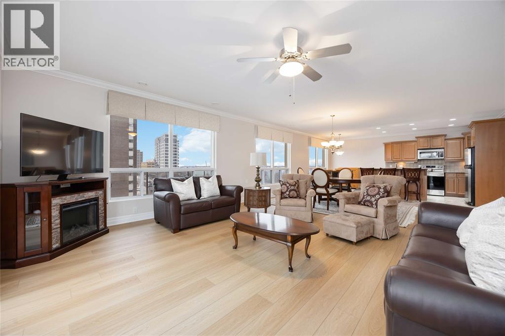 Experience Sarnia’s waterfront lifestyle from a home that puts it all within reach. This captivating, sunlit and well cared for corner suite delivers sweeping views of the St. Clair River and the downtown skyline, offering a rare mix of waterfront calm and city energy. The layout is a perfectly blended space for entertaining or just relaxing. With gorgeous new flooring, plenty of natural light, and a kitchen finished with solid wood cabinetry you’ll love every detail in this unit. The primary bedroom has city views with a walk-in closet and the ensuite has a tub with heated timed floors. The in-suite laundry adds everyday convenience and the other full bathroom and bedroom are ideal for guests. A wrap-around balcony extends your living space and gives you year-round sunrises, evening sunsets and a picture perfect view you’ll never get tired of. The condo fee of $1,106.62 covers exterior and grounds maintenance, heat, hydro, water, property management, and recreational facilities. (54210979)