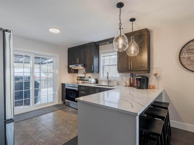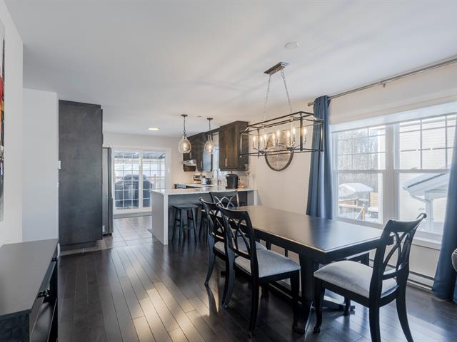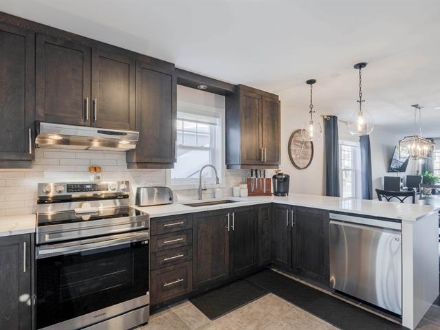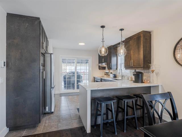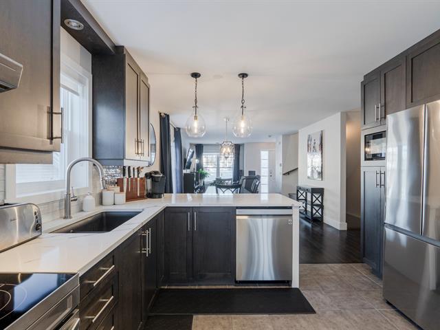 This townhouse unit located in Rock Forest offers a bright, open-concept living space in a rapidly growing area, close to amenities and elementary schools. It features three bedrooms, two full bathrooms, and a powder room, including a large, modern bathroom upstairs, ideally located near the master suite. The kitchen with quartz island and walk-in pantry, finished basement, and outdoor spaces with deck and shed complete this turnkey property. (47318047)