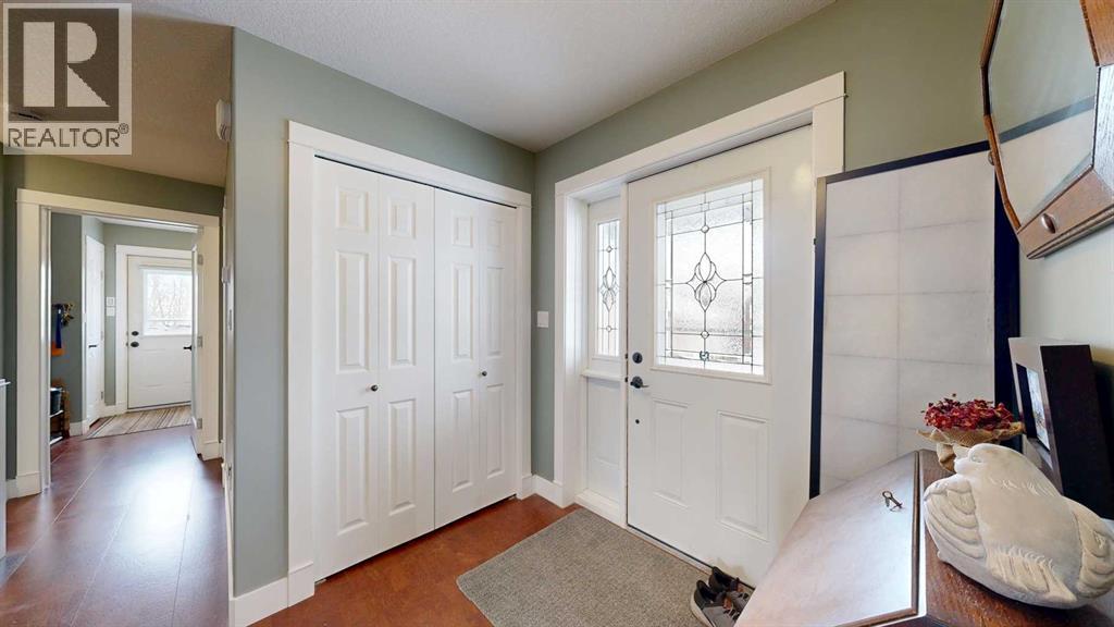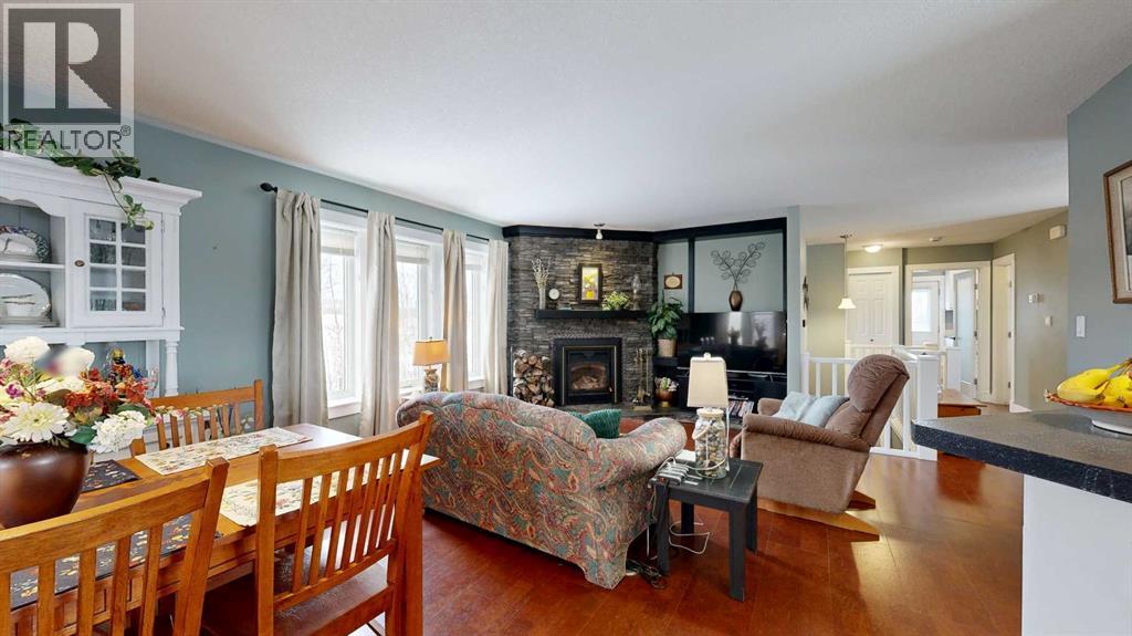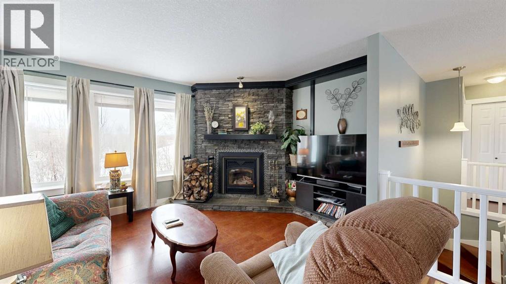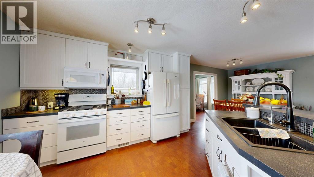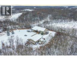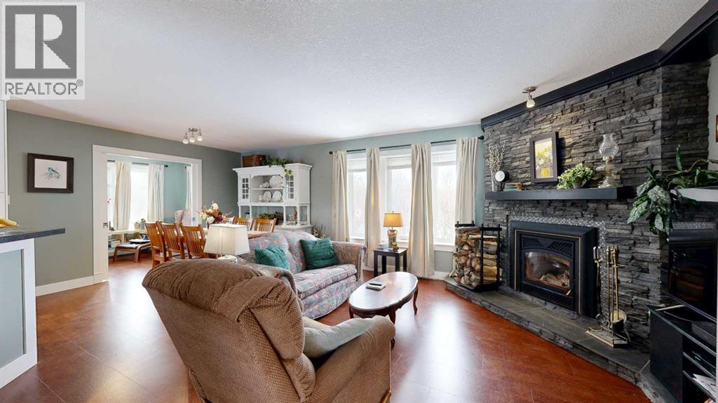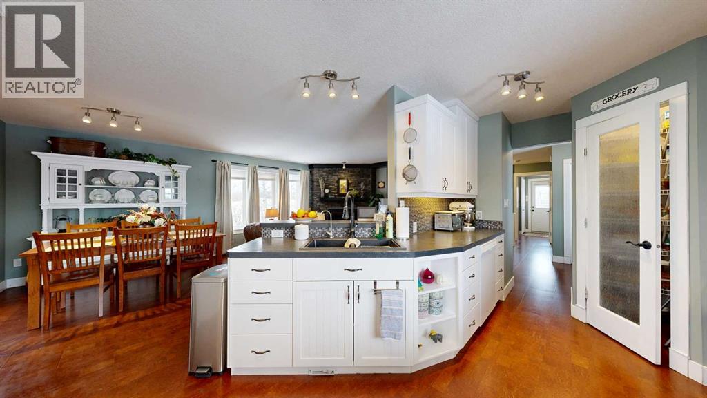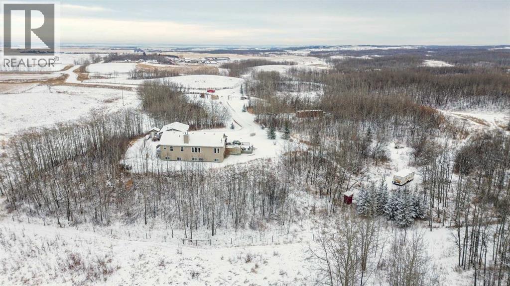 Perched on a gentle hill and framed by native trees and rolling terrain, this 2011 ranch-style home offers privacy and stunning scenery. This hard-to-find 43.7 acre parcel is perfect for families, hobby farmers, or anyone craving a peaceful rural lifestyle. Inside, soothing paint tones and warm cork flooring create an inviting atmosphere. The main entrance features a convenient coat closet and leads into a bright living room highlighted by large windows and a wood-burning fireplace with custom stone and tile surround. The adjoining dining area offers easy flow for family meals, while the sunroom—filled with natural light—includes a garden door leading to the deck. The thoughtfully designed kitchen features an angled peninsula facing the living room so you can stay connected while preparing meals. A corner pantry and built-in desk area add functionality and storage. The spacious primary bedroom includes a 4-piece ensuite with generous counterspace. A half bath sits just off the hallway on the way to the mudroom, which also houses the laundry area complete with a sink and extra cabinets. Downstairs, the wide-open family room provides endless flexibility—whether you envision a home gym, entertainment zone, kids play space, or craft area. A cozy wood-burning stove sits in the corner. The basement also includes three large bedrooms, a bright 4-piece bathroom, a storage room with built-in shelving for pantry items, a cold room, and a tidy mechanical room. The home features a central vac, ICF block construction to the rafters, and the in-floor heat in the basement has been roughed in. Outdoors, the veranda spans the front of the home, offering a sheltered place to relax and enjoy the surrounding nature. This flows into a large lower deck with ample space for outdoor furniture and a barbeque, perfect for hosting gatherings. The two-car garage includes shelving and a workbench, ideal for projects and hobbies. The yard is nicely landscaped with shrub beds and trees, along wit h two fenced garden areas and compost bins—ready for anyone with a green thumb. This acreage offers an exceptional blend of privacy, practicality, and rural charm, providing the perfect setting for a country lifestyle. (31454765)