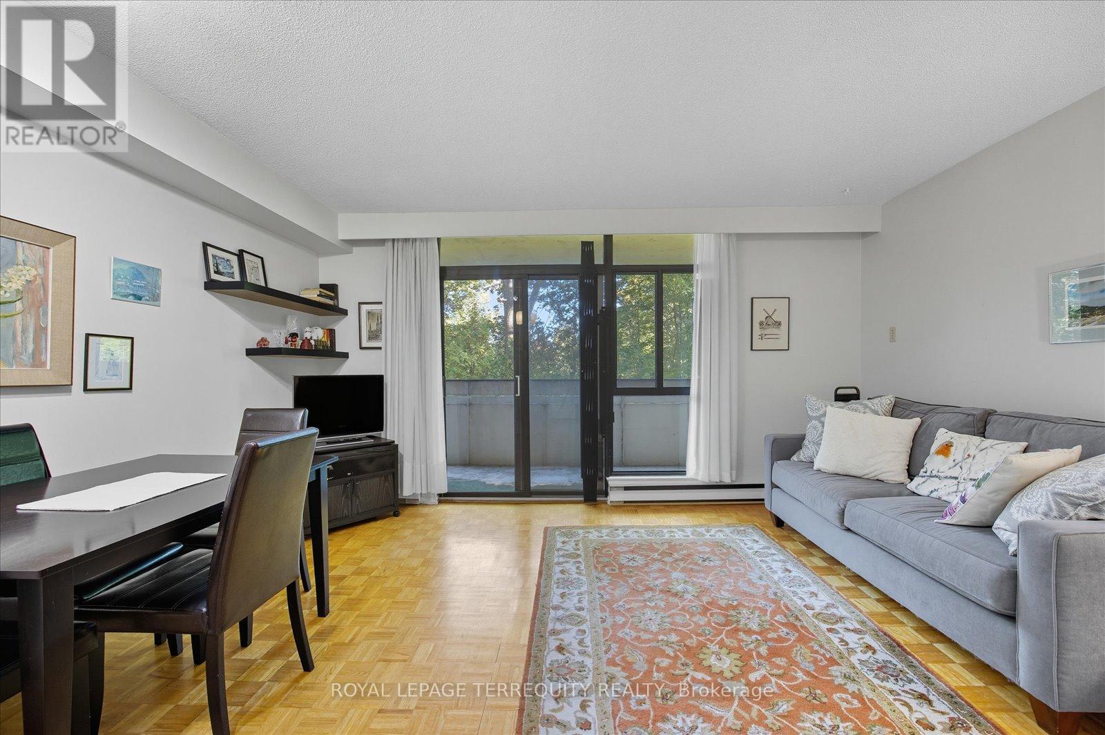 Lovely one bedroom apartment overlooking spectacular ravine. Well established and maintained Co-op Apartment building for residents 55 and over. MAINTENANCE FEE INCLUDES ALL UTILITIES: BELL CABLE AND HIGH-SPEED INTERNET, HEAT, HYDRO, WATER, BUILDING INSURANCE, COMMON AREAS, AND PROPERTY TAXES. Bright well maintained spacious unit. Unit has a great layout, living room has walkout to large balcony (24' x 5') overlooking spectacular ravine, Eat-in kitchen. Convenient walk-in storage closet. Clean well maintained self managed building. Enjoy the abundance of features and facilities: Salt water indoor pool, saunas, exercise room, party room, Library, Ample visitor parking, Complex surrounded by spacious landscaped gardens to relax by on property grounds, and much more. Easy access to Hwy. 401, public transit, shopping and other amenities located close by. A great place to call home! STORAGE locker included and convenient walk-in storage closet. (41807756)