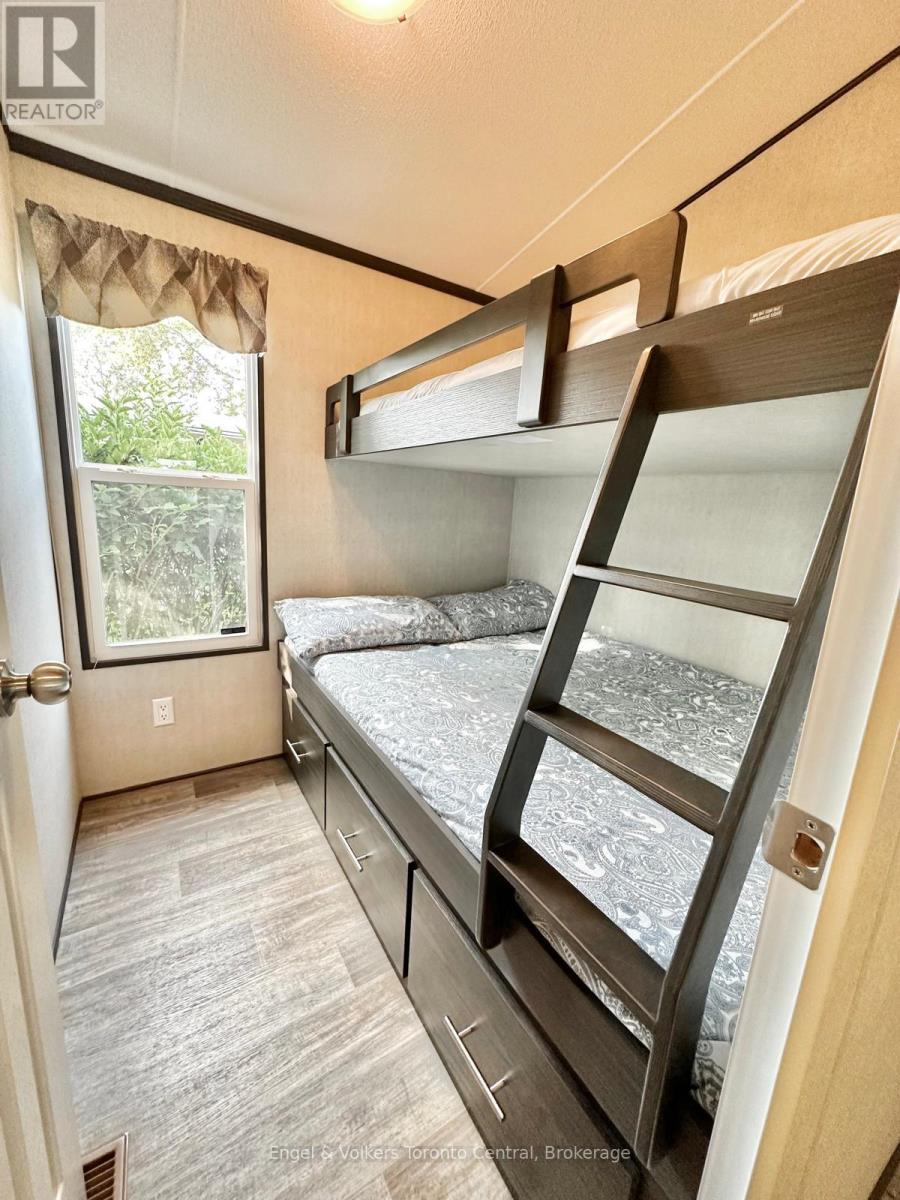 Looking for a perfect cottage alternative? Make this 2018 Northlander Park Model with a hard awning yours for this summer's fun. Located in Parkbridge's Spring Valley Resort in Mount Forest on a very picturesque lot fronting onto Greenwood Lake. This non-motorized lake is great for fishing off your private dock, taking a paddle boat ride, or taking a kayak stroll around the lake! The lot is conveniently located next to the community's 2 pools (one family and one adult) and the park's rec hall, where all the fun happens. Spring Valley offers many activities for both children and adults, making this park a great place for all ages. The trailer offers a beautiful lake view from your living room and large covered deck area. This unit has 2 bedrooms and a full bathroom with a flushing toilet. Sit under the hard awning overlooking the lake, or enjoy a campfire in the evenings lakeside. The 2025-2026 season fees are $5400 and include everything but the propane, hydro, and internet/cable (if you choose to install it). There is no additional charge for water, visitors to the resort, property taxes, etc. The season runs from the first Friday in May to the third Sunday in October. Please note there are no rentals allowed in the resort at all. Call for your viewing today and get into your Cottage Alternative Recreational Home away from home! (41808854)
