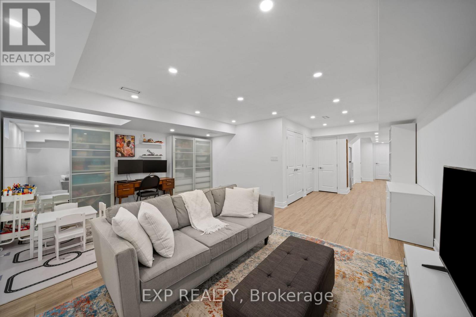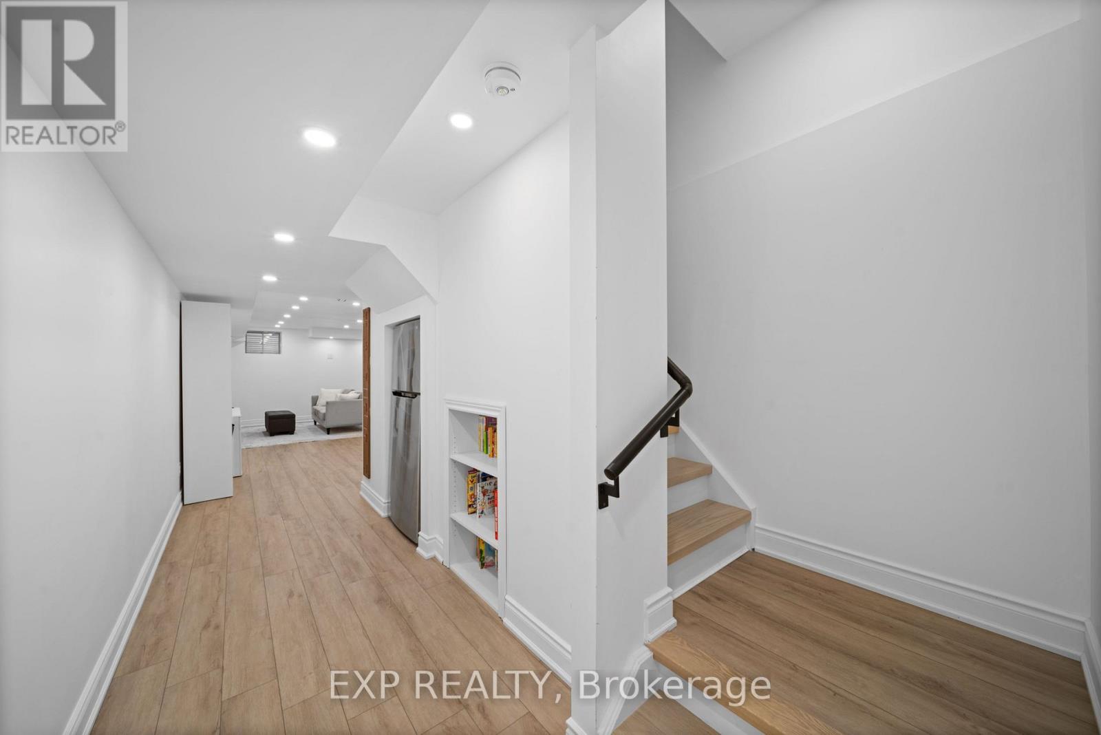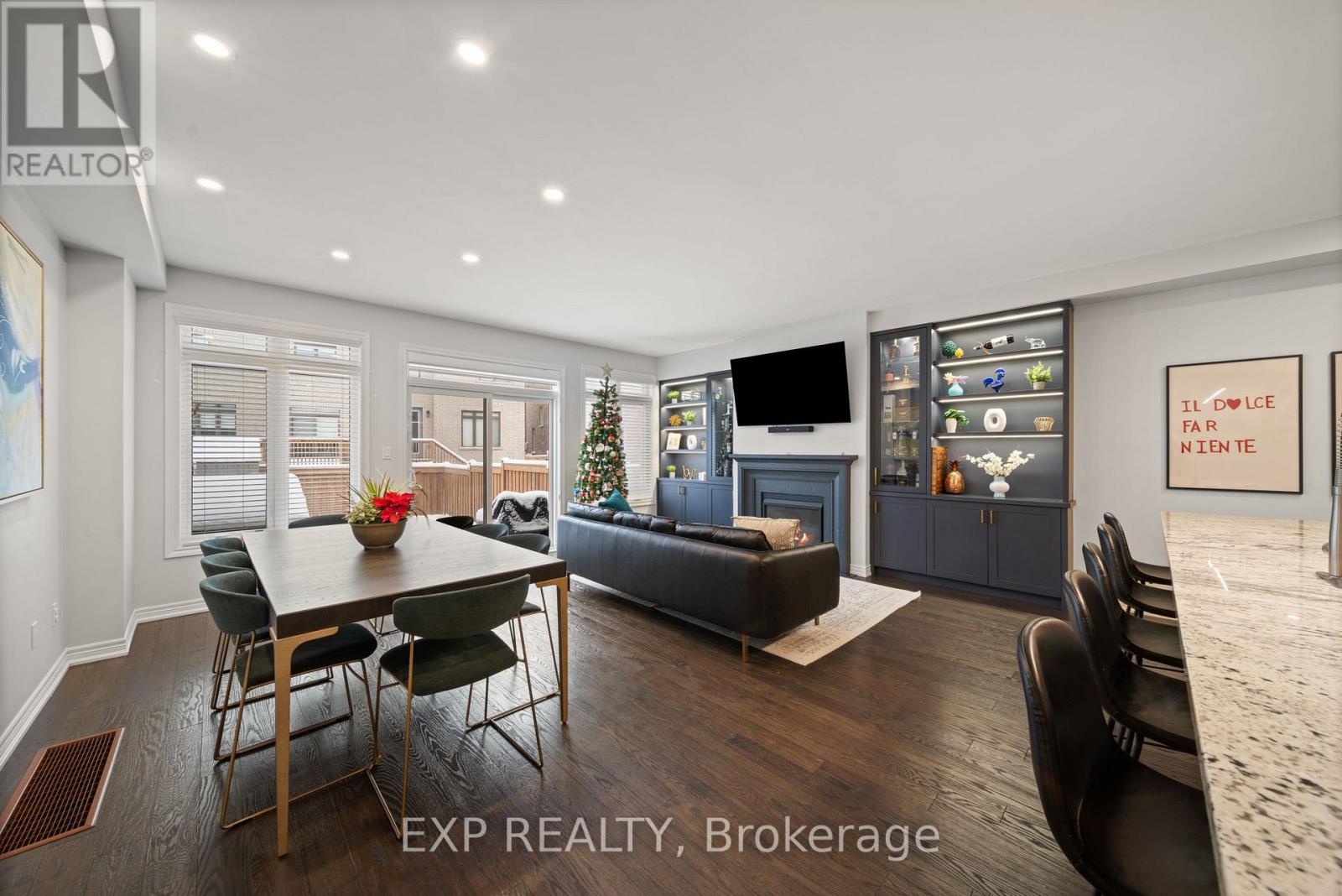 Welcome to this stunning townhouse located in the highly sought-after Aurora Trails community. This beautifully upgraded home features an open-concept design with smooth ceilings, pot lights, and hand-crafted hardwood throughout. The living area is anchored by a gorgeous fireplace surrounded by a built-in bookshelf. Spacious modern kitchen complete with granite countertops and large family sized island. Enjoy 9 ft. ceilings on both the main and second floors. The home also includes a convenient second-floor laundry updated in 2021 and a fully finished basement renovated in 2023, perfect for additional living or entertainment space. The fenced backyard offers a patio, gas hookup for bbq and a shed set on a concrete base. The luxurious primary ensuite features a free-standing tub and a glass-enclosed shower. With countless upgrades throughout, this home is truly a must-see! (41808813)