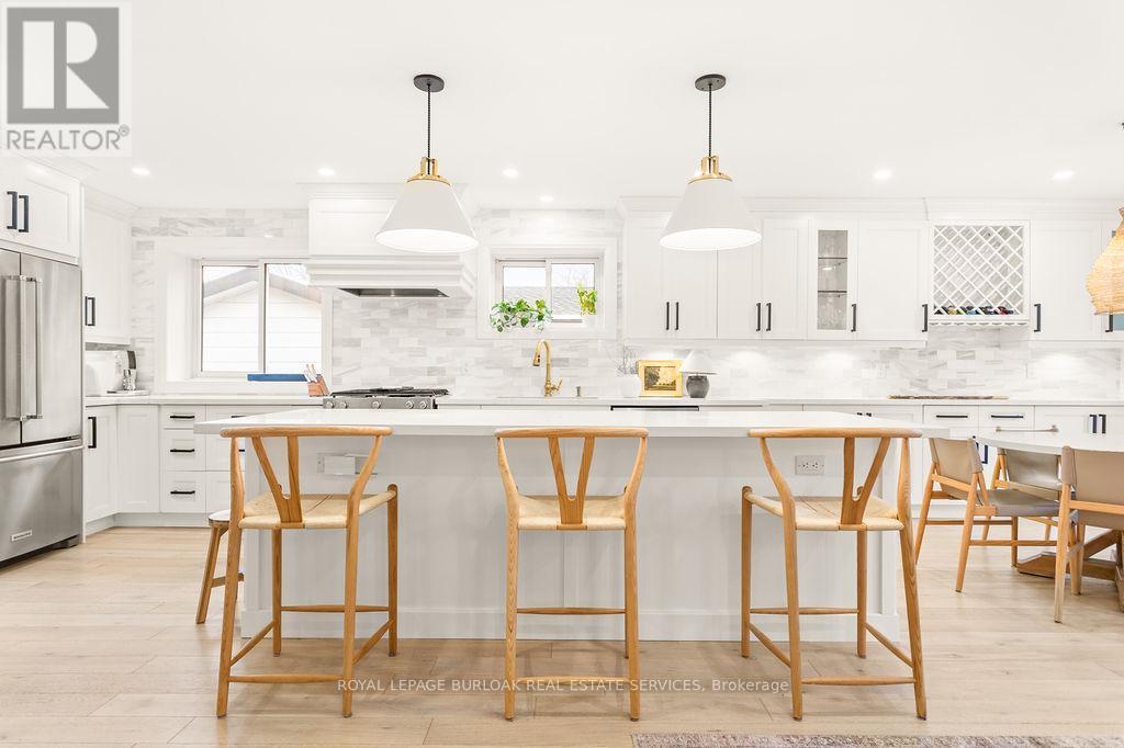 Prepare to be captivated by this stunning, fully renovated, top-to-bottom raised-ranch bungalow, perfectly situated in a prime, family-friendly Burlington location. This exceptional home offers the rare combination of a mature, sought-after neighbourhood with the luxury and convenience of a brand-new build. Key Features You Will Love: Open-Concept Main Level: The heart of the home features a seamless, bright, and airy open-concept layout, perfect for modern family living and entertaining. Custom Gourmet Kitchen: A chef's dream! The custom kitchen boasts high-end finishes, premium stainless steel appliances, and ample storage, flowing effortlessly into the dining and living areas. 3 + 1 Bedrooms & 2 Bathrooms: Generous accommodations with three spacious bedrooms on the main level and a large, versatile bedroom/office on the lower level. Amazing Lower Level: The expansive, fully finished basement is a true showstopper, offering an amazing recreational room ideal for movie nights, a home gym, or a play area. Backyard Retreat: Step outside to your private sanctuary. The professionally landscaped backyard is an entertainer's delight, centered around a beautifully updated inground salt-water swimming pool. Enjoy endless summer days and stylish outdoor entertaining! Unbeatable Location: Enjoy the ultimate convenience with schools, parks, and major shopping hubs all within easy walking distance. Ideal for commuters with quick access to major routes. This is more than just a house-it's a lifestyle upgrade. All the hard work has been done; simply move in and enjoy the superior craftsmanship and exceptional amenities. Don't miss the opportunity to own this turn-key, executive residence in one of Burlington's most desirable areas. (41809690)