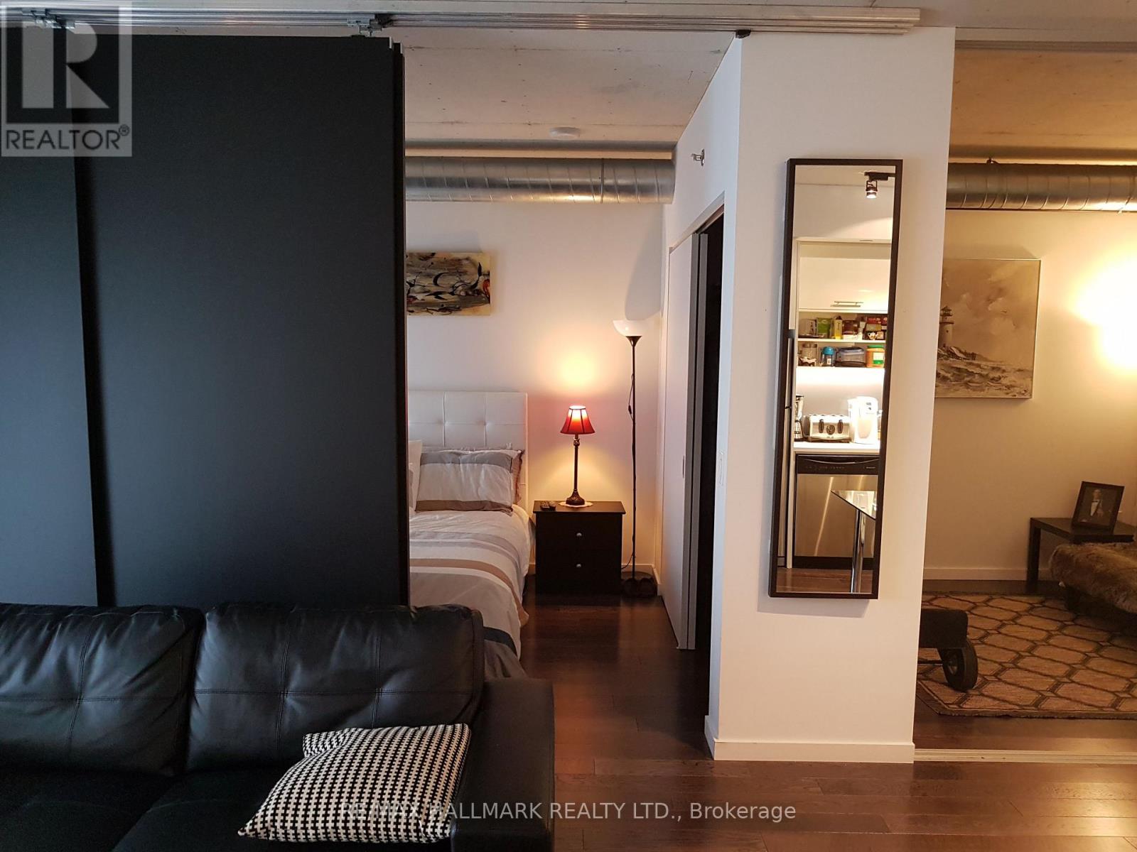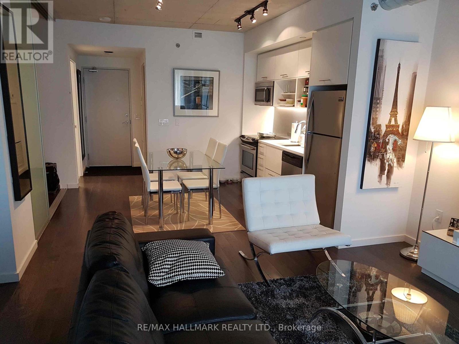 This furnished, Loft Style 1 Bed + Den is available immediately! At 694 square feet, plus an 85 square foot west-facing balcony (overlooks the pool!), this open concept unit feels large and airy. Featuring 9ft ceilings, hardwood floors and stainless steel appliances, this spot is move-in ready. Enjoy exceptional amenities such as a modern fitness centre, yoga and wellness spaces, media and billiards rooms, a party lounge, business centre with Wi-Fi, guest suites, 24-hour concierge, and outdoor perks like a heated lap pool, sauna, rooftop terrace with BBQs, and more. You'll be walking distance to Riverside, Canary + Distillery Districts, St Lawrence Market, 3 streetcar routes, and just a short hop to the Lakeshore/Gardener Expressway. Nature lovers will appreciate the Don River and Corktown Common trails right at your doorstep, offering scenic paths for walking/running/cycling and photography! (41810028)