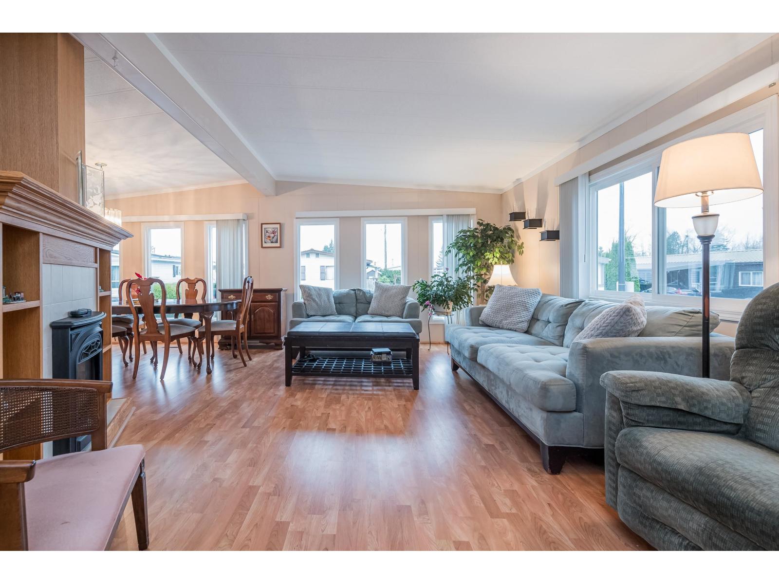 Welcome to Lower Pioneer Park, a sought-after 55+ community offering a relaxed, friendly atmosphere and an easy-care lifestyle. This prime 3rd Ave location features a rare, sunny southern-exposure lot designed to be enjoyed year-round. Unwind on the spacious sundeck, host friends beneath the charming gazebo, or spend time in the impressive 18'11 x 11 wired workshop-ideal for hobbies, projects, or extra storage. Parking is exceptional, with space for up to five vehicles including rare side RV parking. Inside, the well-maintained 1,124 sq.ft. double-wide home offers vaulted ceilings, a bright and welcoming living room with cozy gas fireplace, two generous bedrooms, and two full bathrooms. A versatile den off the primary bedroom works perfectly as a home office, sitting room, or walk-in closet. Significant updates include a brand-new furnace with heat pump, upgraded windows, and an updated electrical panel, providing peace of mind and energy efficiency. Pet friendly - 2 pets allowed any size. Pad fee $510 (32255178)